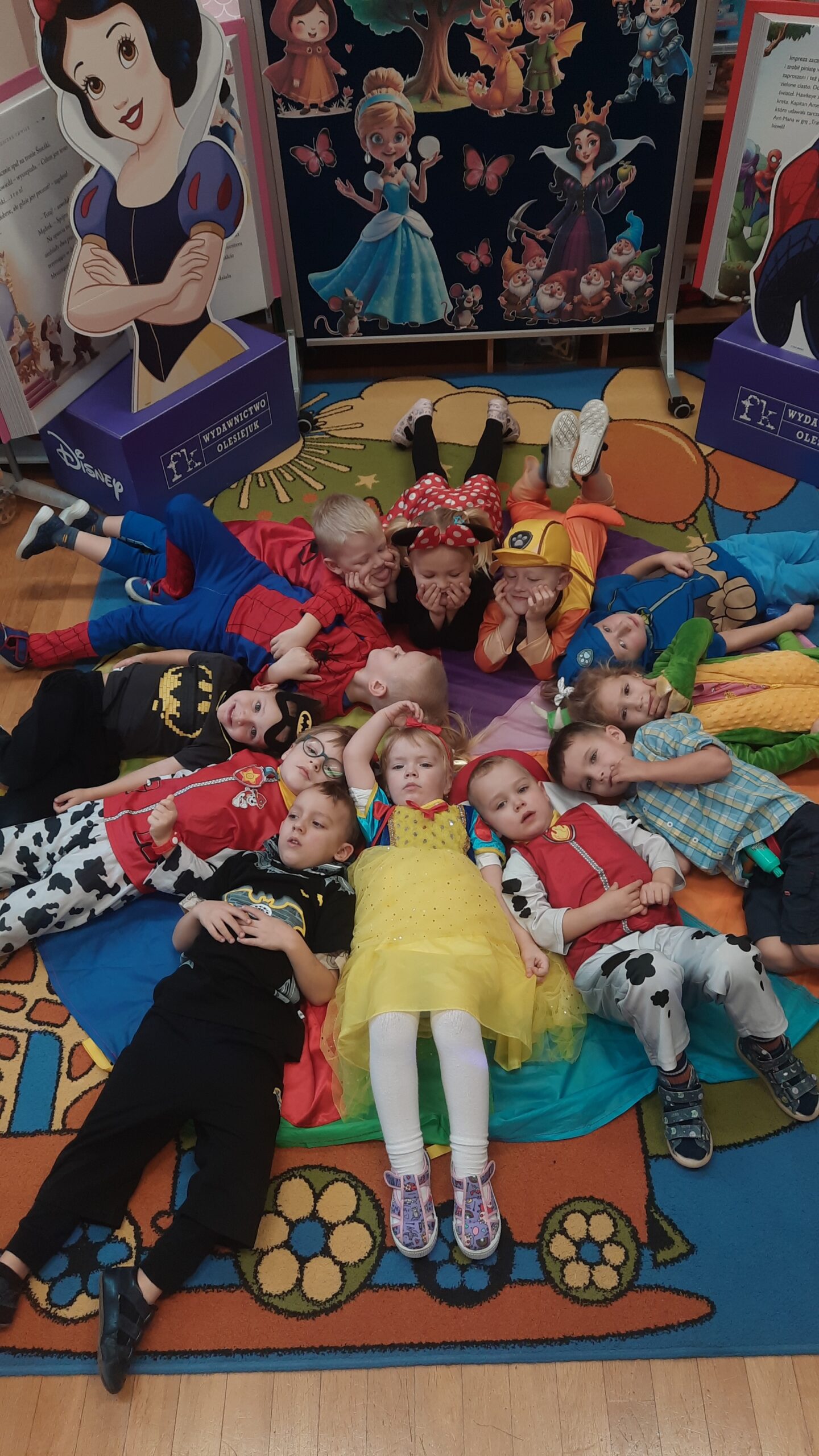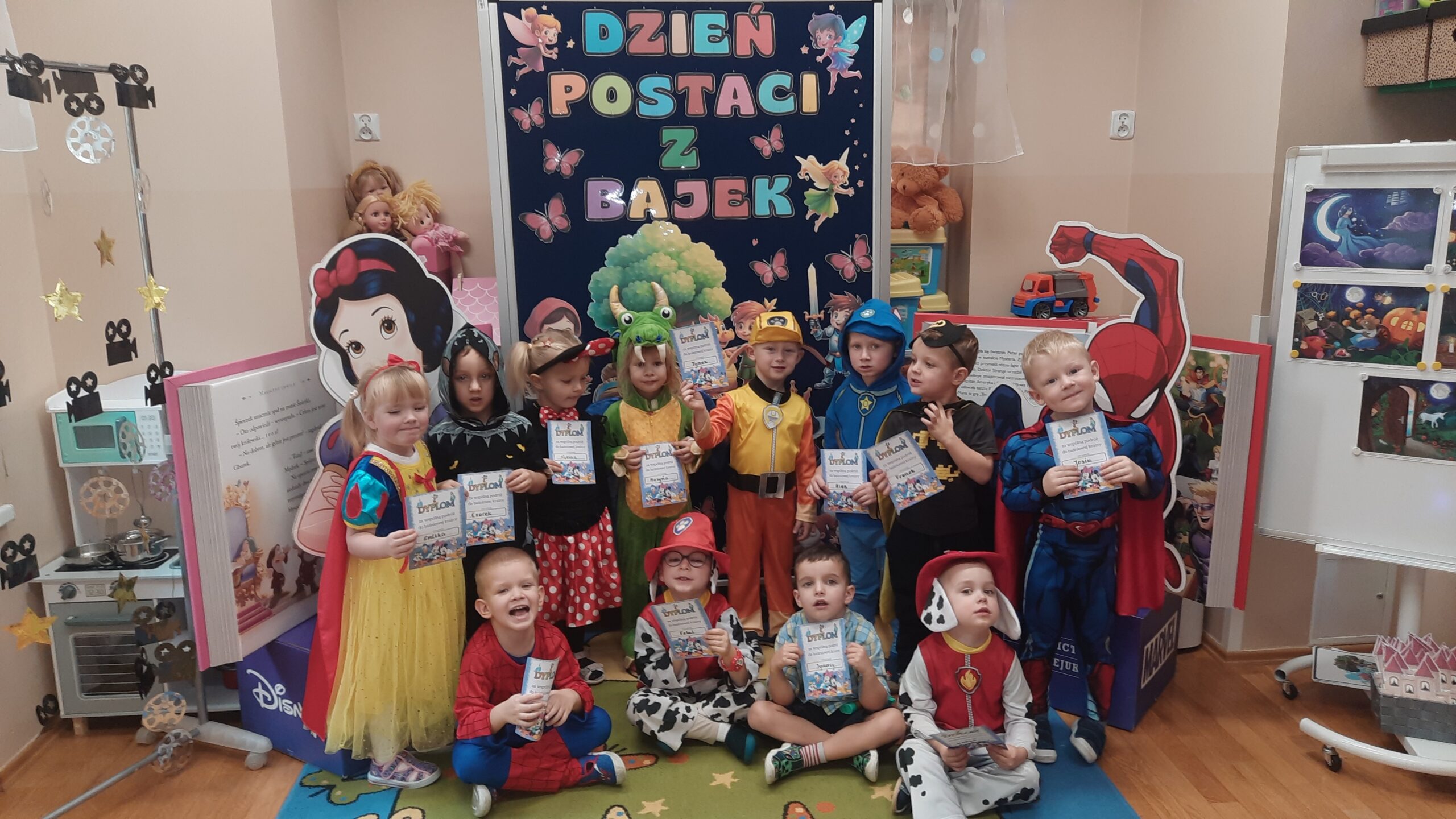 Międzynarodowy Dzień Postaci z Bajek obchodziliśmy w oddziale „Mrówki” dnia 4 listopada i to właśnie tego dnia nasza sala przedszkolna zamieniła się w niezwykłą krainę bajkowych postaci. Bajki towarzyszą nam od najmłodszych lat, rozweselają i bawią, ale też przekazują ważne prawdy życiowe. Pamiętajmy, że czytając dzieciom bajki rozwijamy ich wyobraźnię, fantazję, pamięć i wzbogacamy słownictwo. Bajkowe postacie sprawiają, że świat dziecka staje się radosny i kolorowy. Dzieci wykazały się znajomością treści bajek, tych znanych i mniej znanych, m.in. dzieci rozwiązywały zagadki, rozpoznawały bajkę po rekwizycie oraz po przeczytaniu fragmentu książki. Były muzyczne zgadywanki bajkowe, zabawy ruchowe, taneczne oraz prezentacja dziecięcych bajkowych przebrań. Ten dzień był doskonałą okazją do świetnej zabawy i rozwijania zainteresowań czytelniczych, sprawił dzieciom wiele radości.