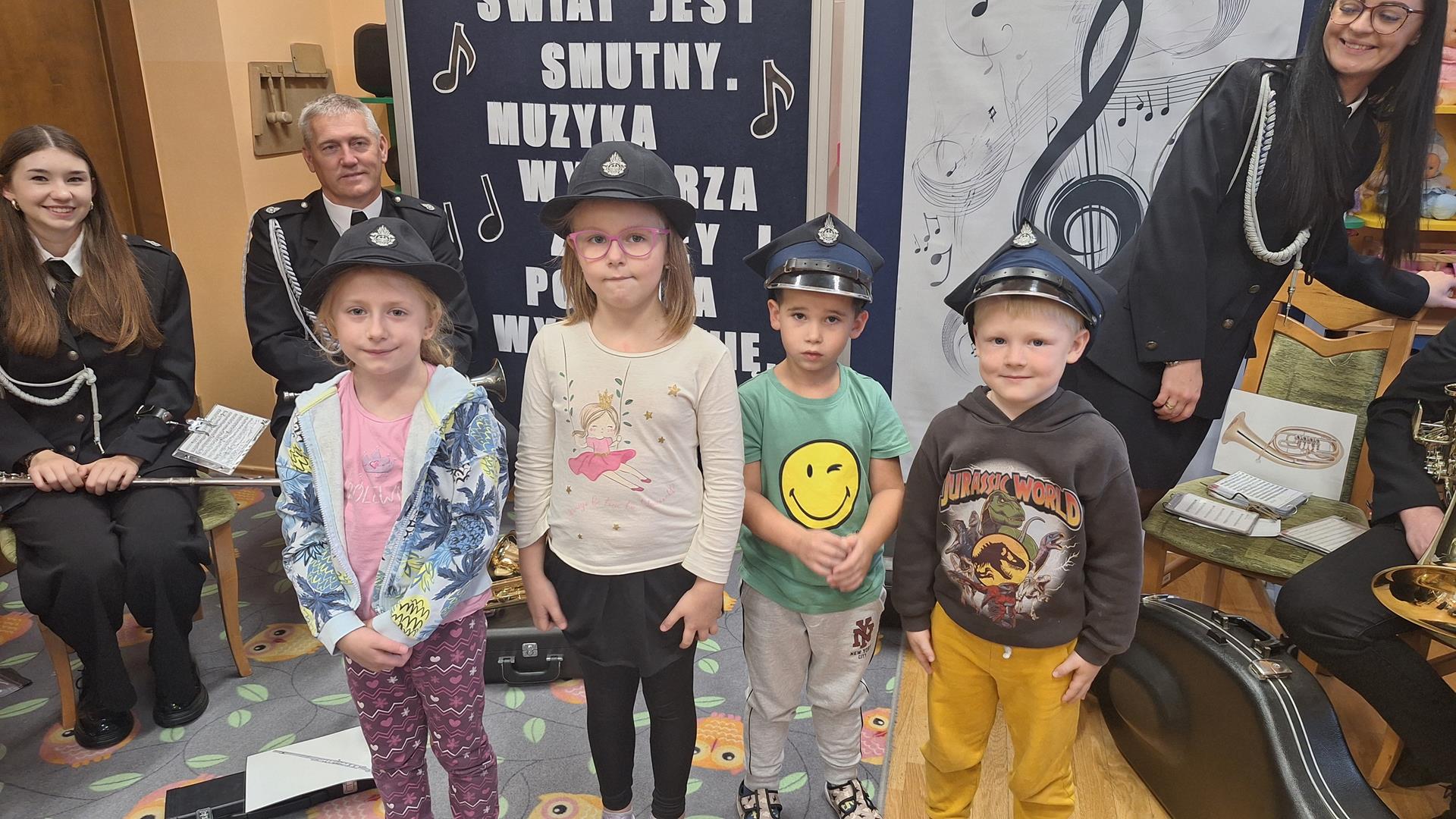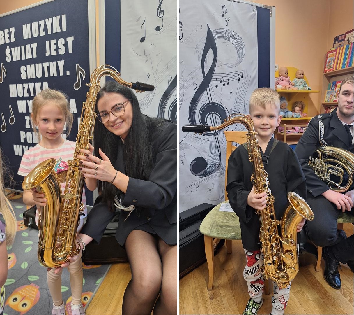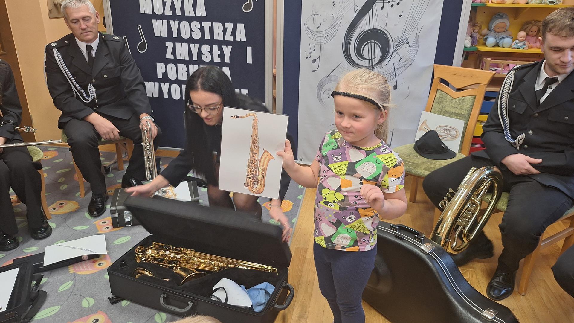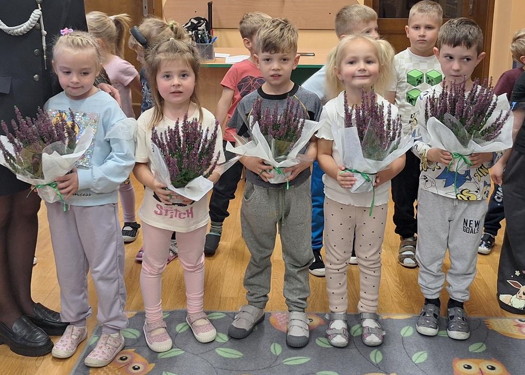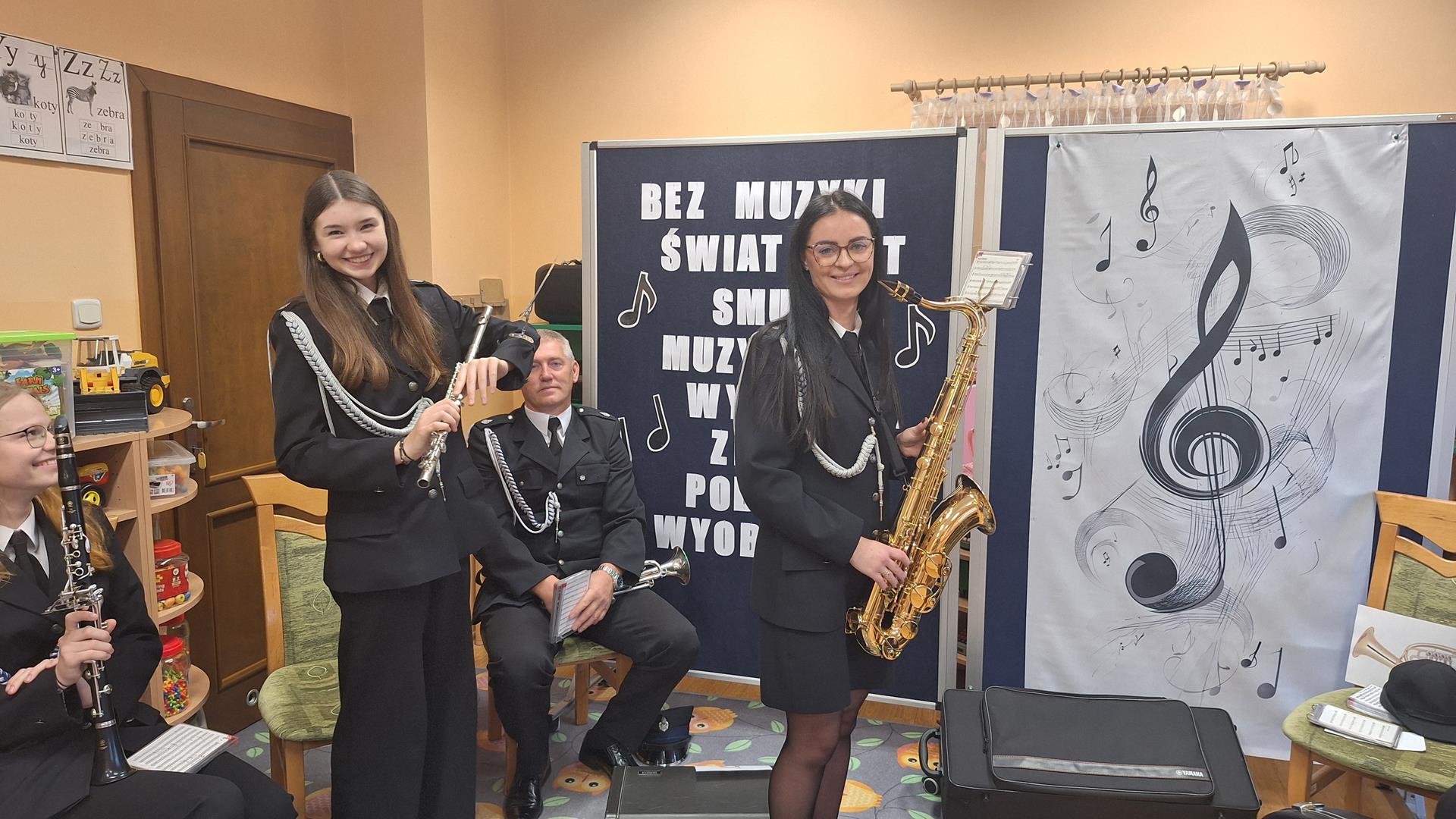 1 października to wyjątkowy dzień – Dzień Muzyki. Grupę Motylków i Biedronek odwiedzili niezwykli goście – sześciu muzyków z orkiestry dętej OSP w Kwielicach, każdy w galowym mundurze i z innym instrumentem: saksofonem, tubą, tenorem, trąbką, klarnetem i fletem. Już od pierwszych dźwięków w sali zapanowała magia. Dzieci siedziały zasłuchane i oczarowane, jakby przeniosły się do innego świata. Wysłuchaliśmy kilku marszowych utworów, a potem nadeszła chwila prawdziwych emocji – każde dziecko mogło dotknąć instrumentu, wziąć go do rąk, a nawet spróbować wydobyć własny dźwięk! Było to pierwsze takie wydarzenie w naszym przedszkolu – nigdy wcześniej orkiestra nie grała dla naszych przedszkolaków na żywo. Nic więc dziwnego, że maluchy były zaciekawione, zafascynowane i jakby zaczarowane. Muzyka była i zawsze będzie najpiękniejszą przygodą dla dziecięcych serc.