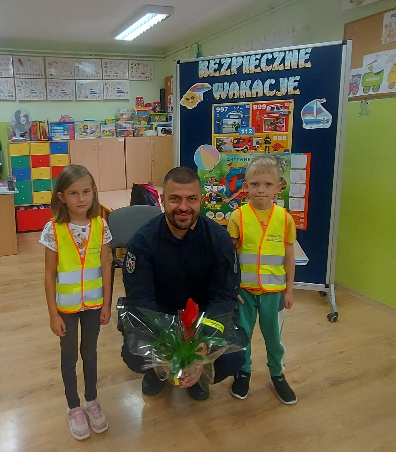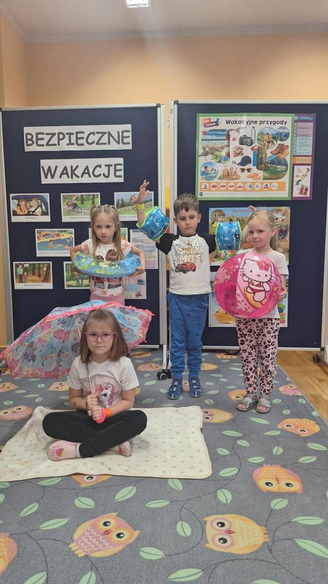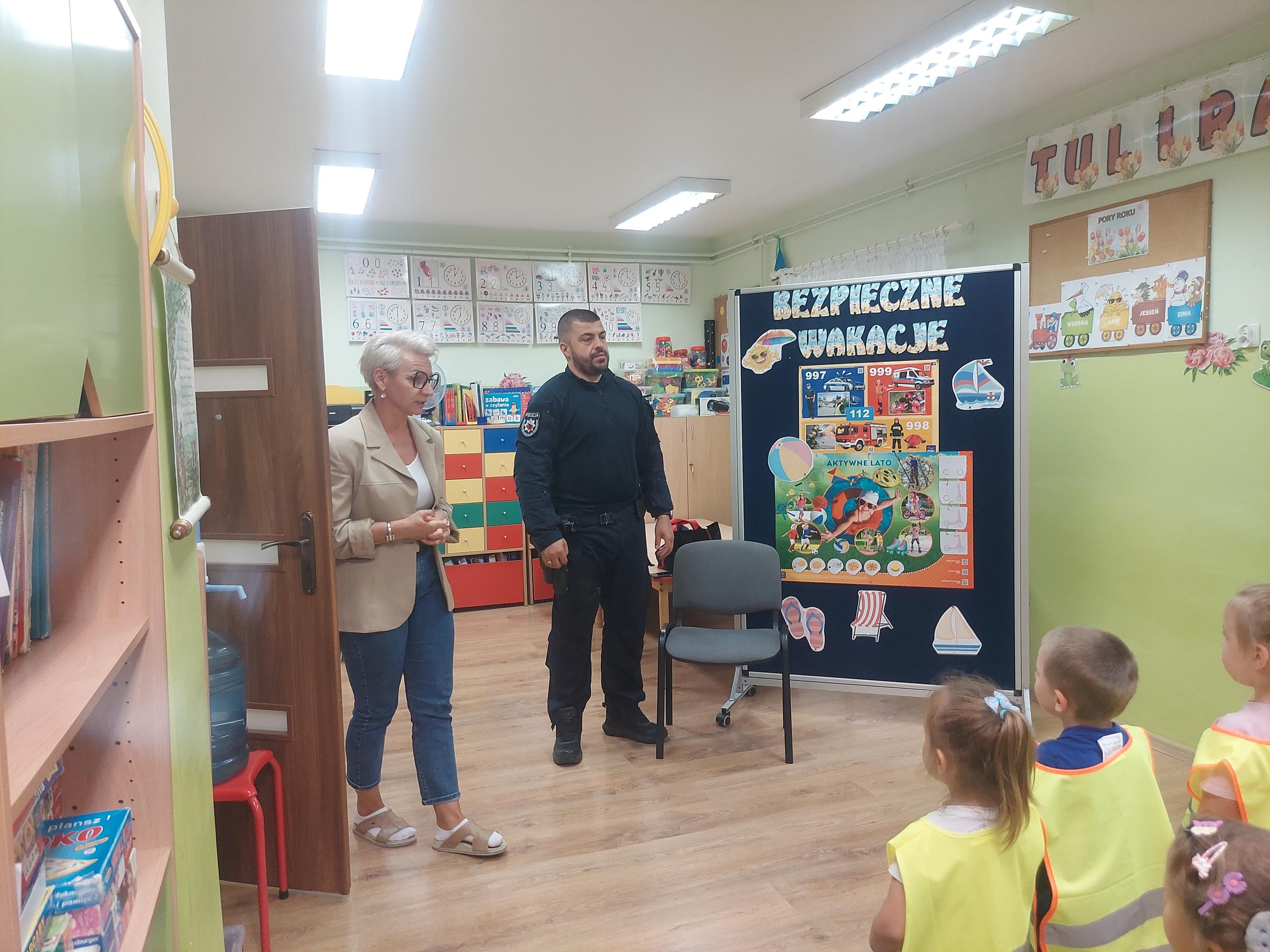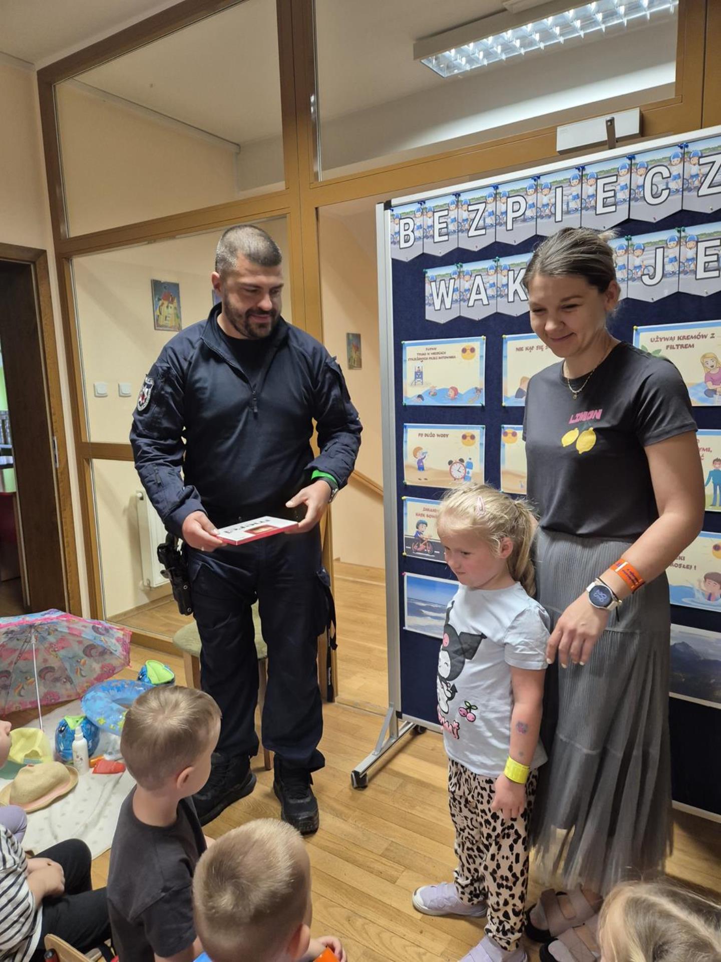 W ramach akcji „Bezpieczne Wakacje ” we wszystkich oddziałach przedszkolnych zostały przeprowadzone zajęcia z policjantem z zakresu bezpieczeństwa. Celem zajęć było przypomnienie i utrwalenie podstawowych zasad bezpiecznego zachowania na drodze, uświadomienie dzieciom zagrożeń, które mogą napotkać w okresie wakacyjnym. Dodatkowo, zajęcia te mają na celu utrwalenie zasad bezpiecznego zachowania w różnych miejscach, takich jak drogi, place zabaw, czy podczas kąpieli.