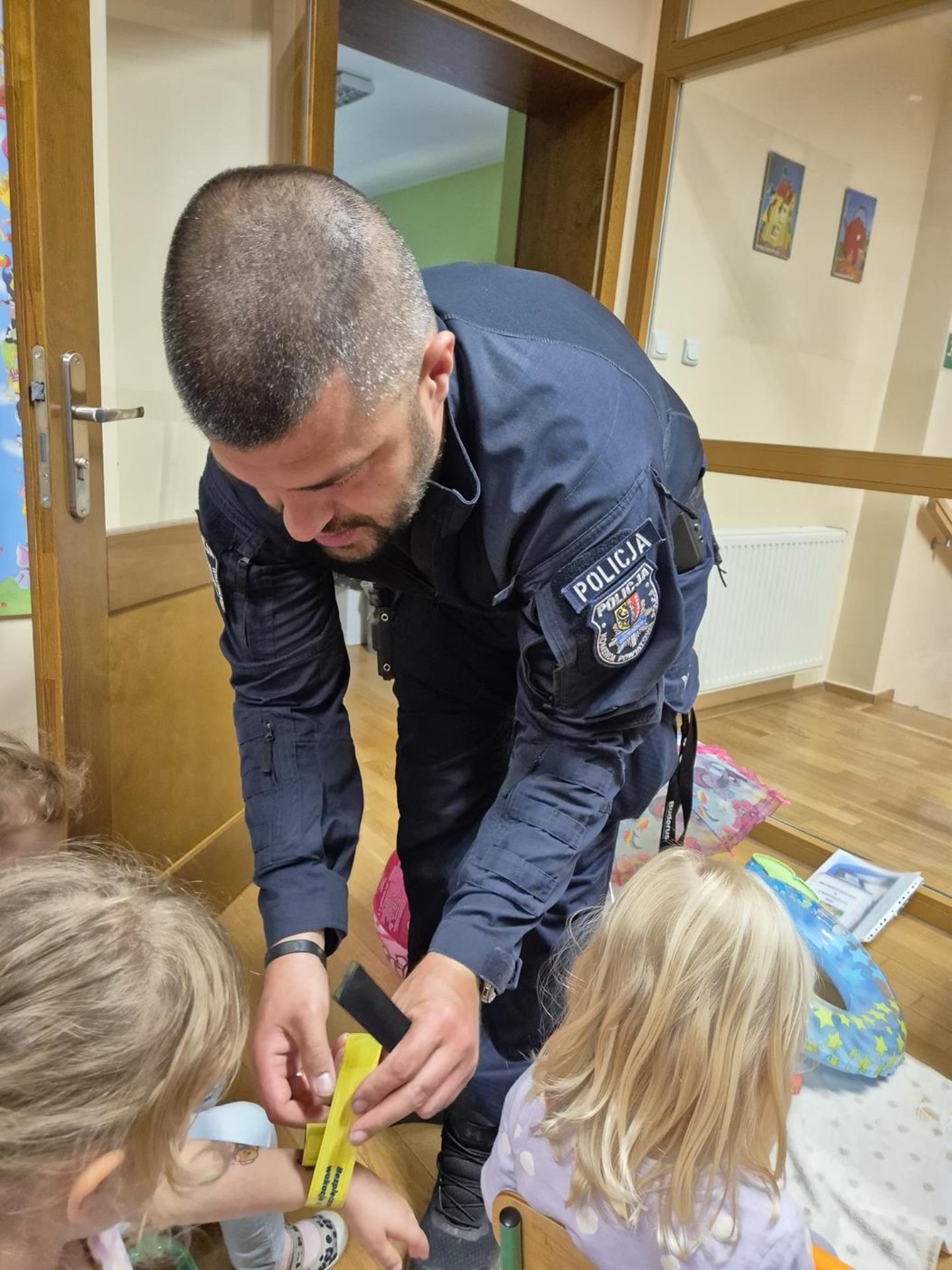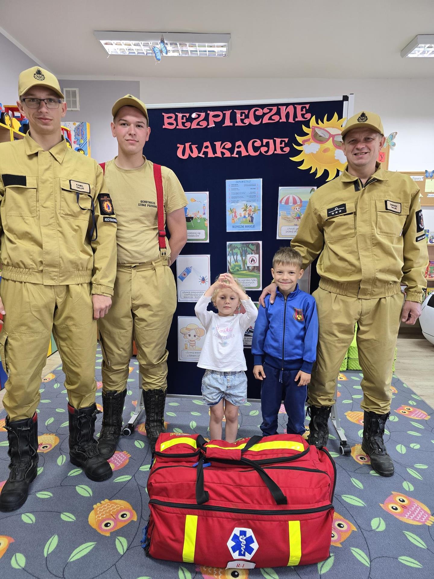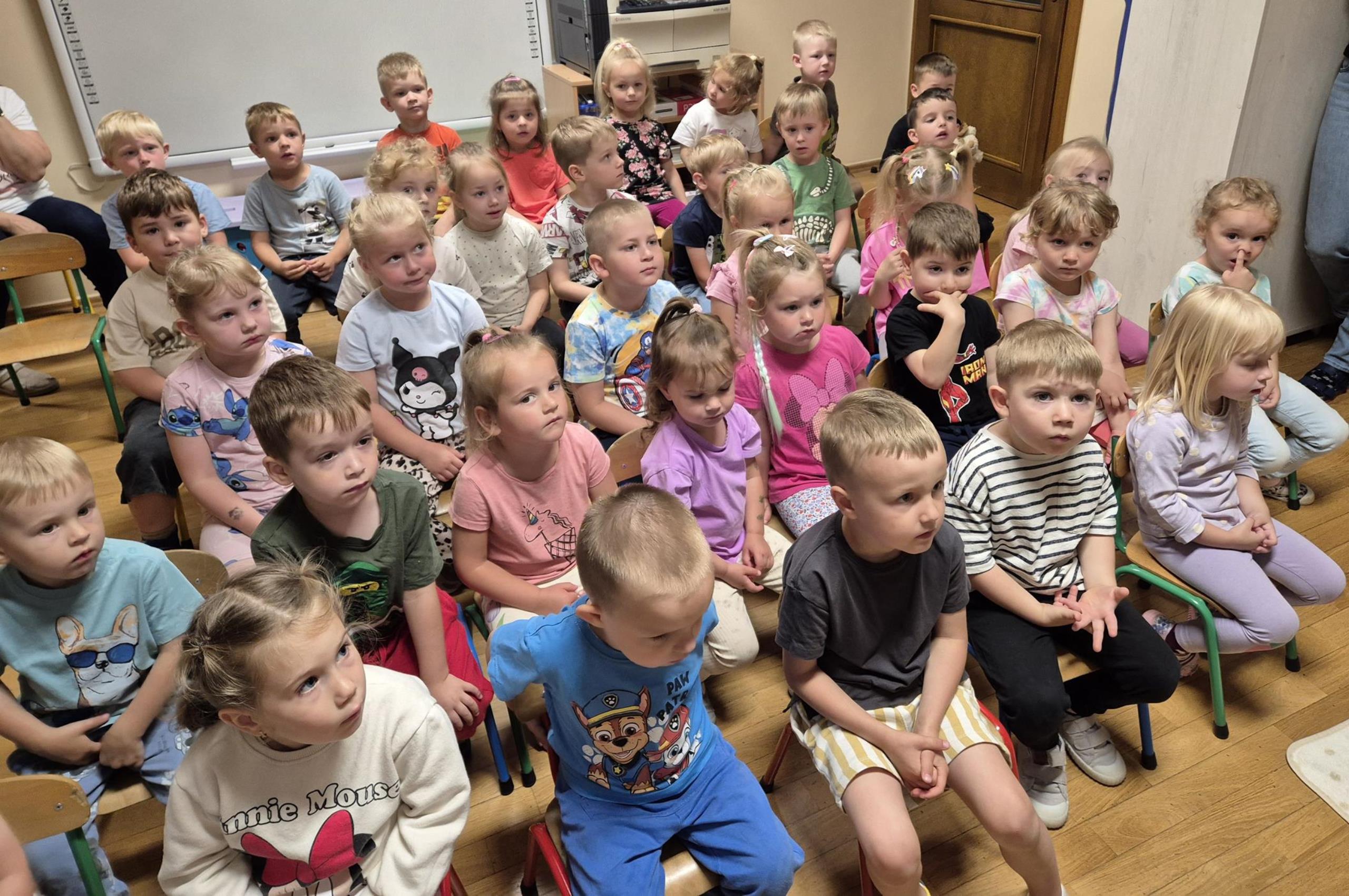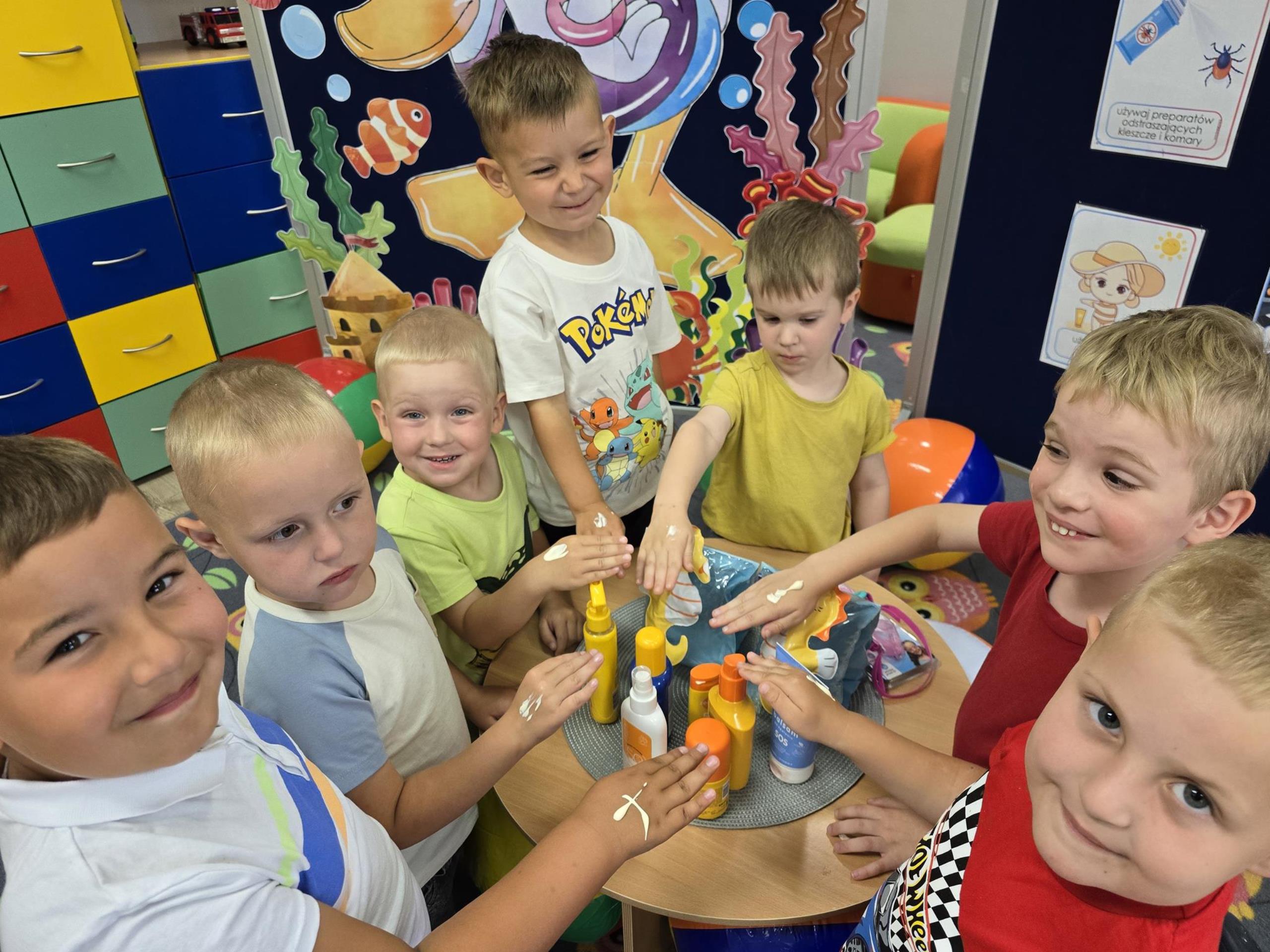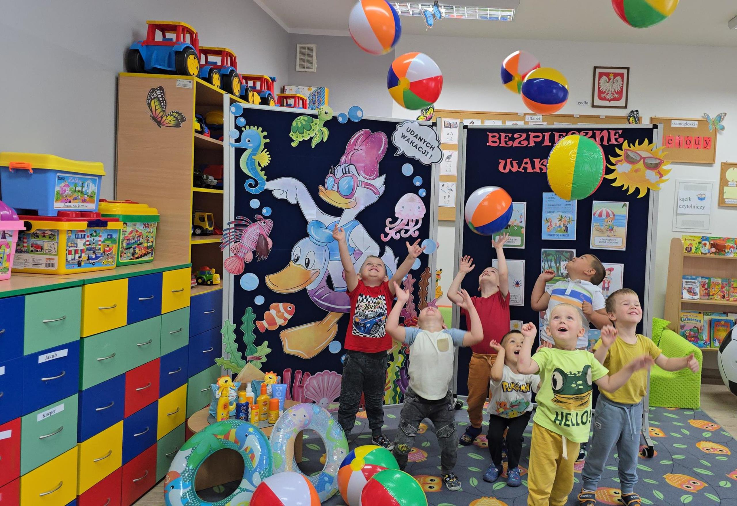 W ramach akcji „Bezpieczne Wakacje ” we wszystkich oddziałach przedszkolnych zostały przeprowadzone zajęcia z policjantem z zakresu bezpieczeństwa. Celem zajęć było przypomnienie i utrwalenie podstawowych zasad bezpiecznego zachowania na drodze, uświadomienie dzieciom zagrożeń, które mogą napotkać w okresie wakacyjnym. Dodatkowo, zajęcia te mają na celu utrwalenie zasad bezpiecznego zachowania w różnych miejscach, takich jak drogi, place zabaw, czy podczas kąpieli.