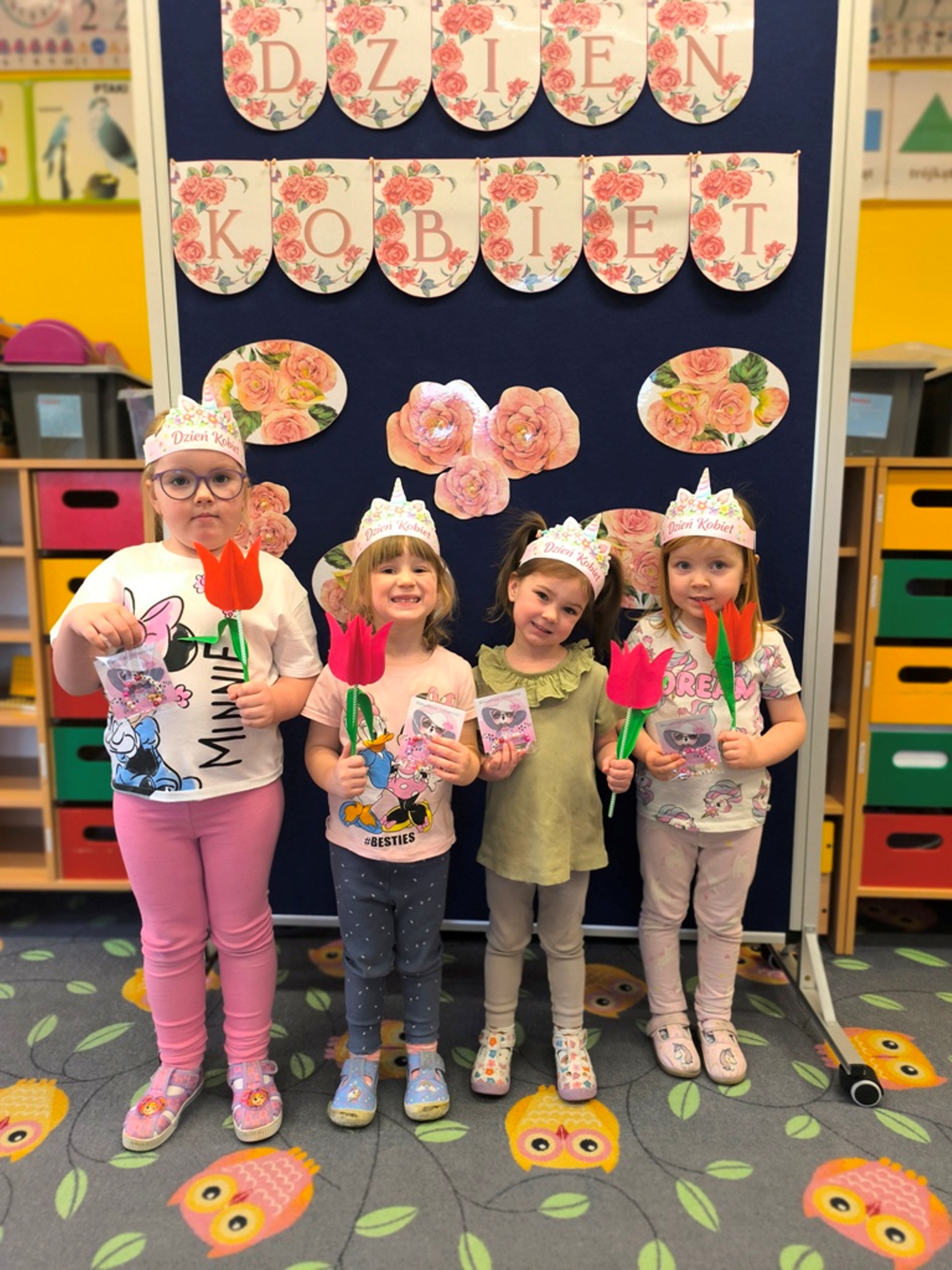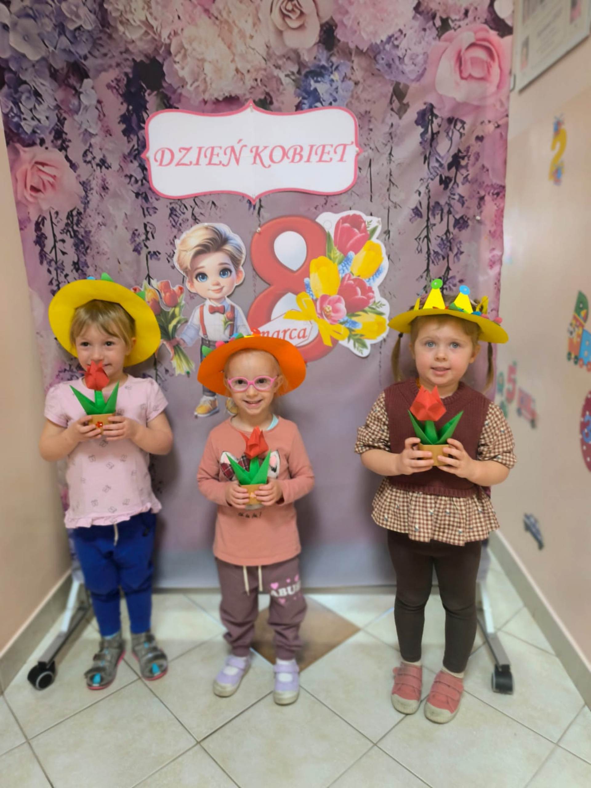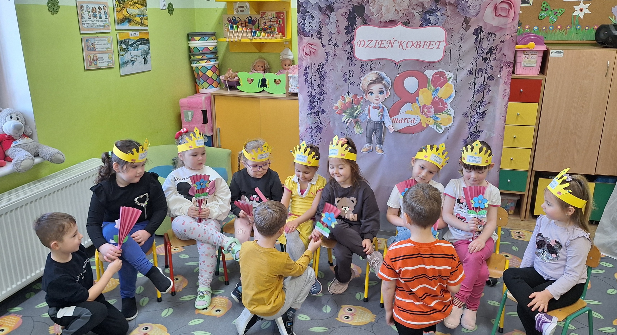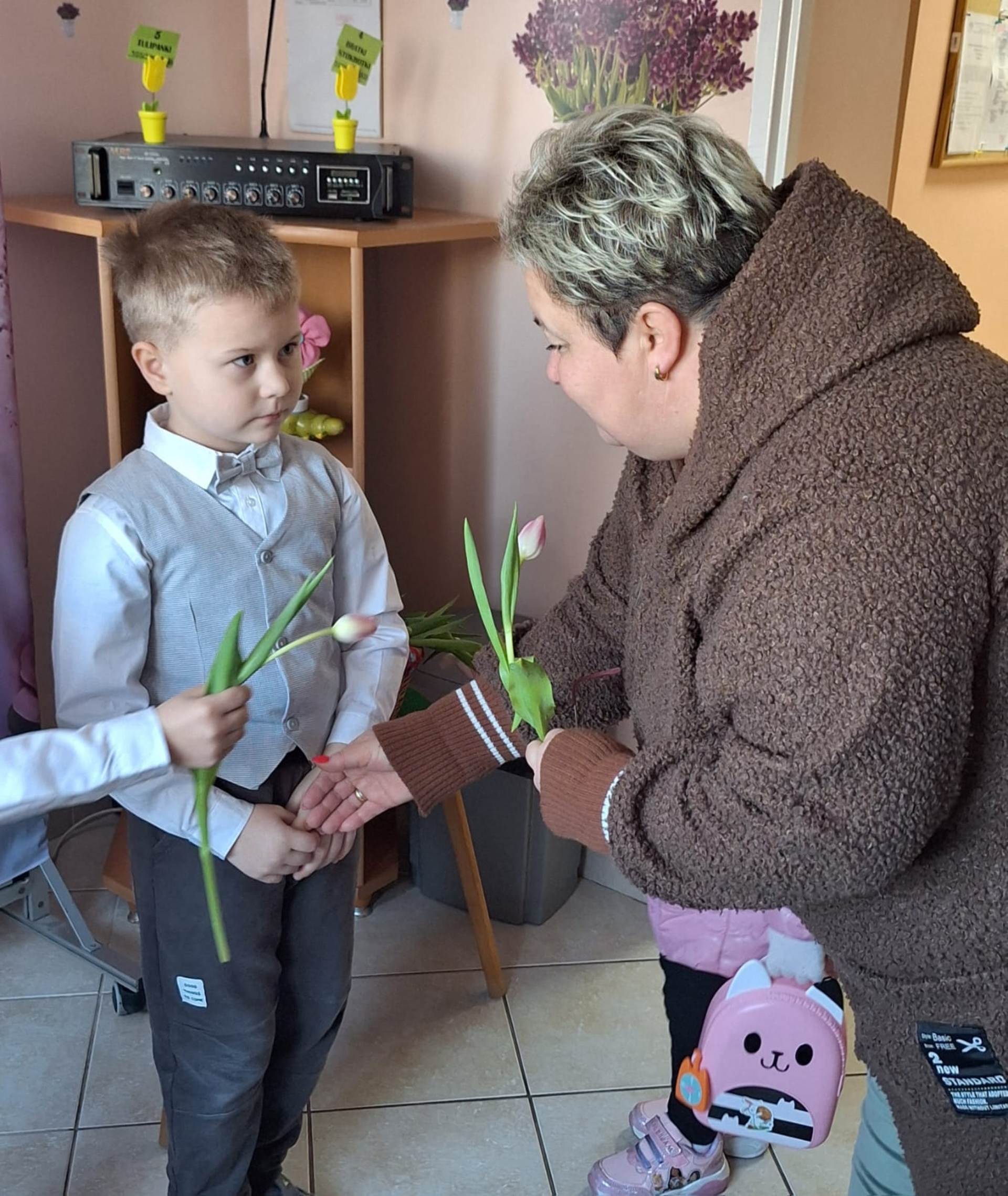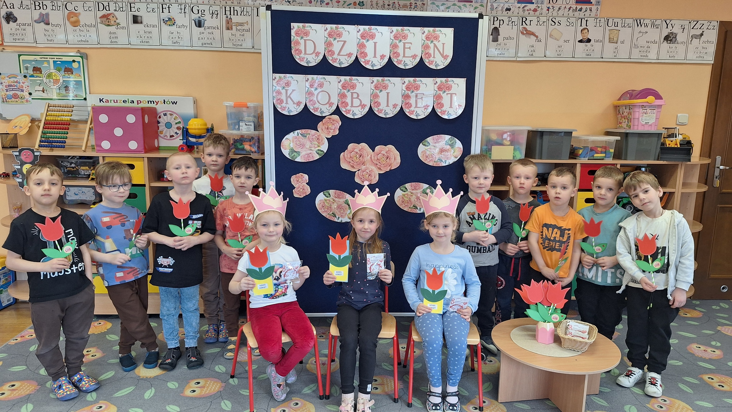 W naszym przedszkolu obchodziliśmy Dzień Kobiet. Był to bardzo miły i radosny dzień. Chłopcy z dużym zaangażowaniem przygotowali dla dziewczynek niespodziankę. Złożyli im serdeczne życzenia oraz wręczyli piękne kwiaty, wywołując na twarzach koleżanek wiele uśmiechów. Tego dnia dzieci pamiętały również o swoich mamach. Rano, podczas przyjścia do przedszkola, chłopcy wręczyli mamom kwiaty jako wyraz wdzięczności, miłości i szacunku. Obchody Dnia Kobiet w naszym przedszkolu przebiegły w serdecznej atmosferze, pełnej życzliwości i radości. Dzieci miały okazję uczyć się okazywania uprzejmości, szacunku oraz pamięci o ważnych osobach w swoim życiu.
