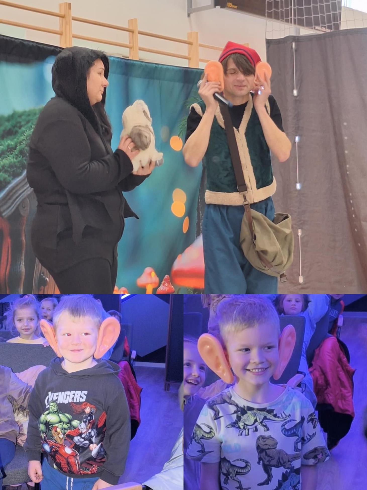 W dniu 3 grudnia przedszkolaki miały okazję obejrzeć niezwykle zabawny i pouczający spektakl „Co w uszach gra” przygotowany przez grupę T. Razem z Krasnoludkiem Niezabudkiem i jego przyjaciółmi dzieci uczyły się, jak rozpoznawać emocje, okazywać empatię i dbać o zdrowe odżywianie. Radości, śmiechu i wspólnej zabawy nie było końca. Dziękujemy aktorom za wspaniały występ i cudowną atmosferę.