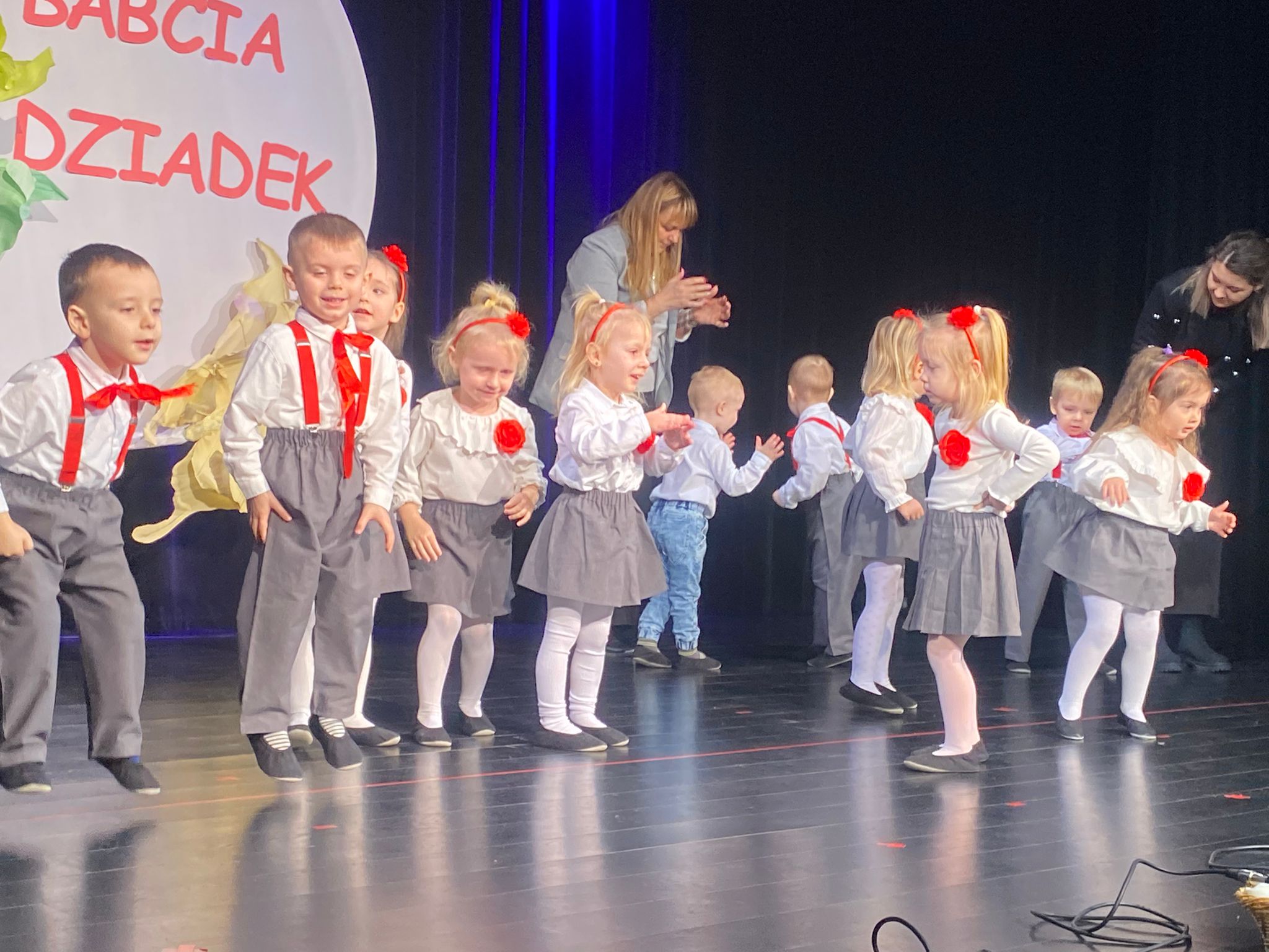 Z okazji Dnia Babci i Dziadka, dnia 29.01.2026 r. przedszkolaki z oddziałów przedszkolnych z Grębocic przygotowały uroczysty program artystyczny. Wydarzenie miało na celu wzmacnianie więzi rodzinnych oraz relacji międzypokoleniowych, a także kształtowanie u dzieci postaw szacunku, wdzięczności i miłości wobec osób starszych. Przedszkolaki z wielkim zaangażowaniem zaprezentowały swoje umiejętności artystyczne -śpiewały, tańczyły oraz recytowały wiersze, rozwijając jednocześnie swoją wrażliwość, kreatywność oraz pewność siebie podczas występów publicznych. Występ dostarczył niezapomnianych emocji zarówno dzieciom, jak i zaproszonym gościom, tworząc wyjątkową, ciepłą i rodzinną atmosferę, sprzyjającą integracji społeczności przedszkolnej.