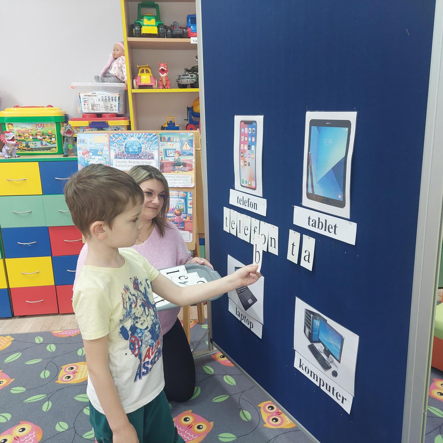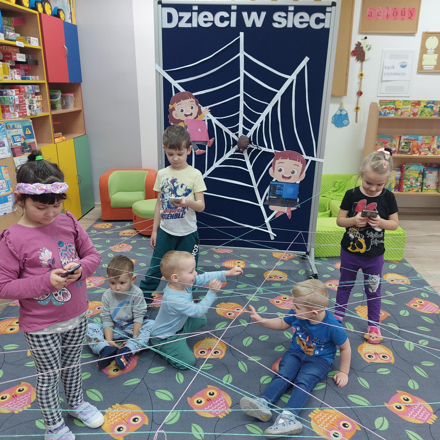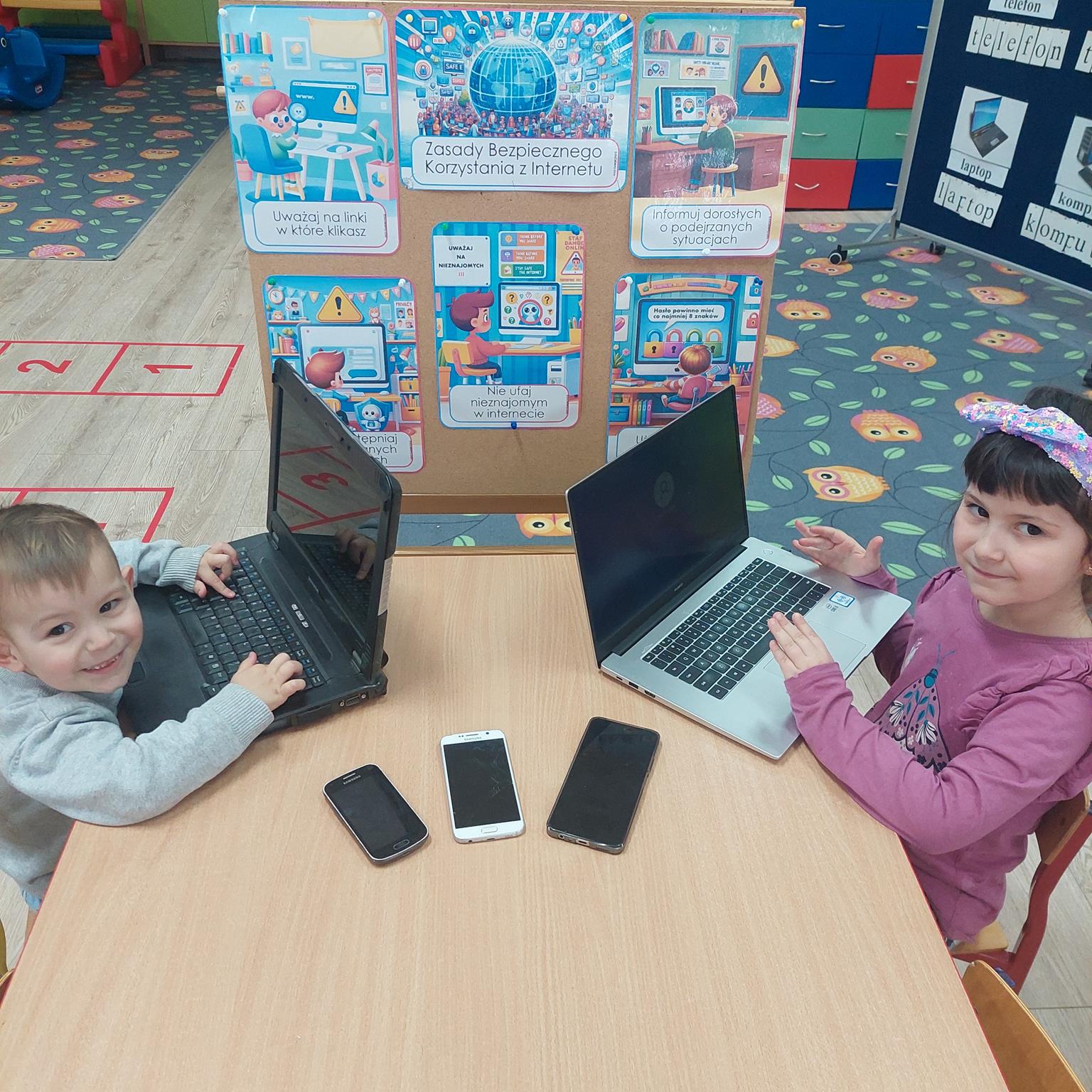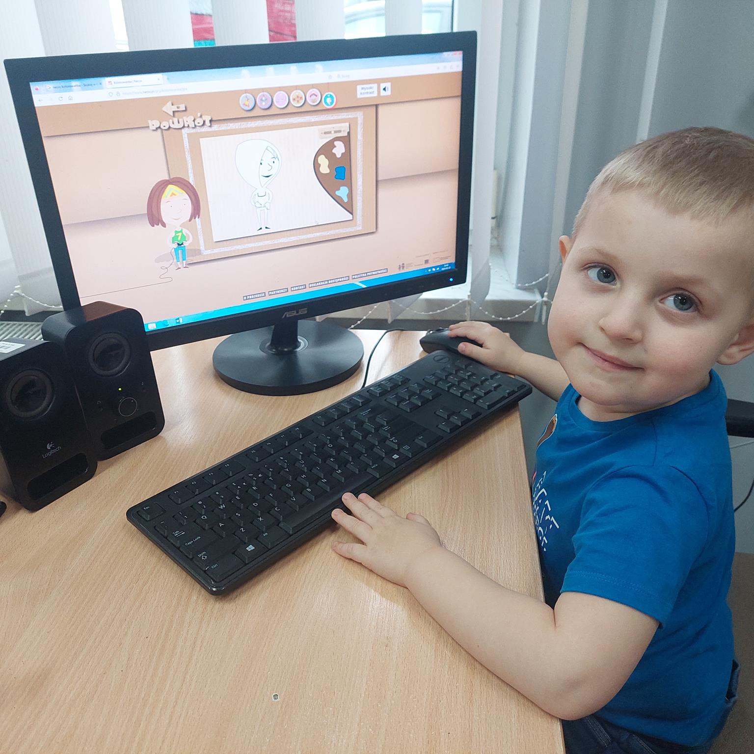 Na przestrzeni ostatnich lat obserwujemy, że coraz młodsze dzieci korzystają z takich dobrodziejstw cywilizacji, jak Internet. Korzystanie z komputera, Internetu może przynieść dziecku wiele korzyści. Ułatwia i wspomaga naukę, uczy-bawiąc. Dziś już nikogo nie zdziwi widok 3,4 czy 5 – latka z tabletem w ręku. Nie możemy zabronić dziecku korzystania z Internetu, musimy być jednak bardzo ostrożni, bo zagrożeń w sieci jest wiele. Nieodpowiedzialne korzystanie z nowoczesnych mediów, Internetu często ma wpływ negatywny na rozwój intelektualny małego człowieka. Może prowadzić do zubożenia języka, słabej koncentracji uwagi, ograniczać wyobraźnię. Podstawowym celem zajęć było zapoznanie dzieci z Internetem oraz uwrażliwienie ich na zagrożenia związane z korzystaniem z sieci. Podczas zajęć dzieci poznały bohatera serwisu www.necio.pl – robota imieniem Necio. Dowiedziały się, czym jest Internet i do czego służy; poznały zagrożenia, jakie niesie ze sobą korzystanie z urządzeń ekranowych i Internetu, oraz dowiedziały się, co robić w sytuacji ich napotkania.