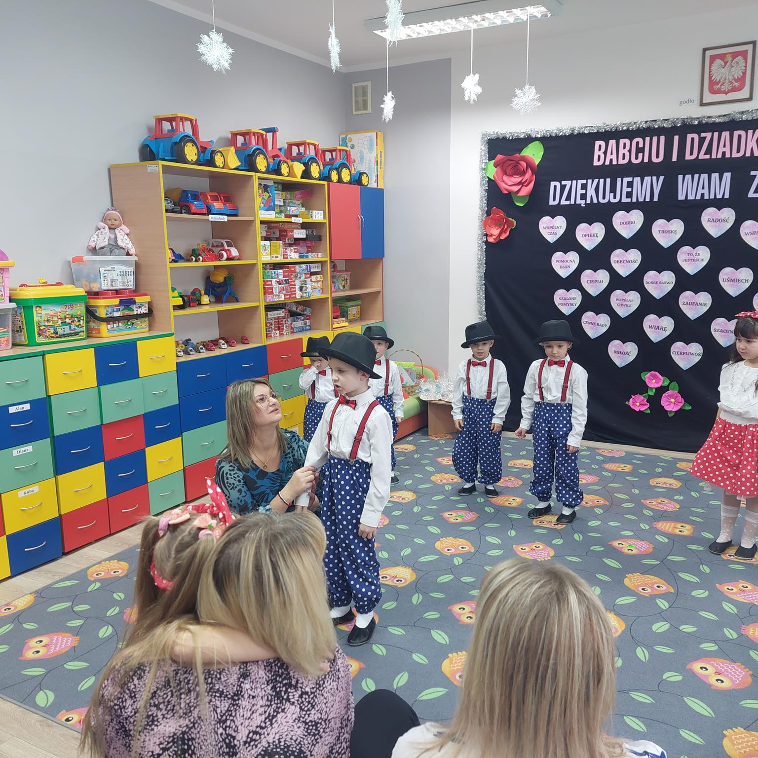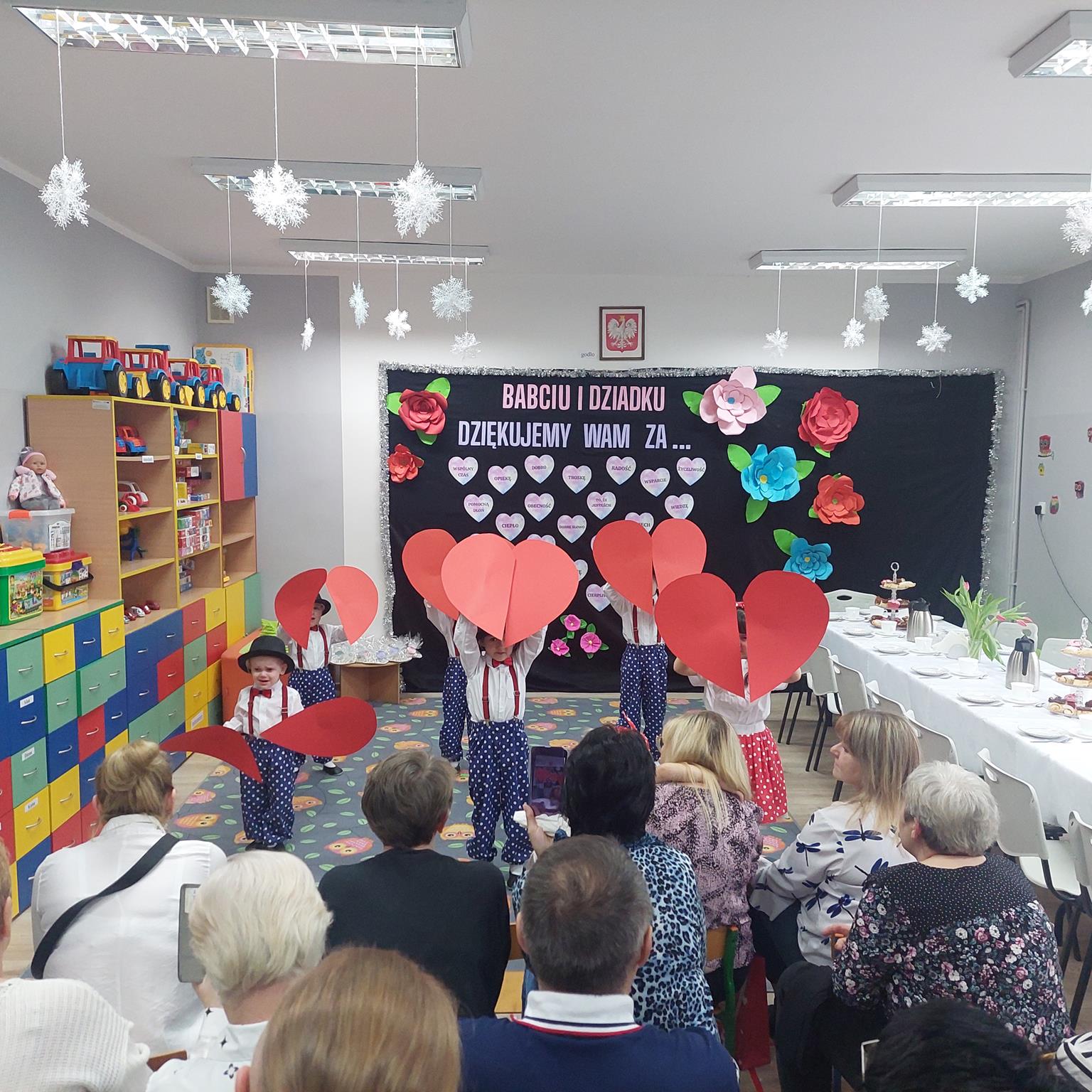 Babcia i Dziadek to słowa, które każdemu dziecku kojarzą się z ciepłem, miłością i wszystkim, co dobre. Dlatego dzieci z Oddziału Przedszkolnego w Krzydłowicach gościły swoje Babcie oraz Dziadków na uroczystości z tej okazji. W przepięknej scenografii oraz wyjątkowej atmosferze, wnuczęta wspaniale wystąpiły przed bliskimi, następnie przedszkolaki obdarowały swoich bliskich własnoręcznie przygotowanymi laurkami oraz drobnymi upominkami. Goście ze wzruszeniem patrzyli na swoje pociechy i brawami dziękowali za występy. Dopełnieniem uroczystych spotkań był słodki poczęstunek przygotowany przez rodziców, aby w szczególny sposób okazać swoim bliskim szacunek i po raz kolejny podziękować za miłość, cierpliwość i zrozumienie.