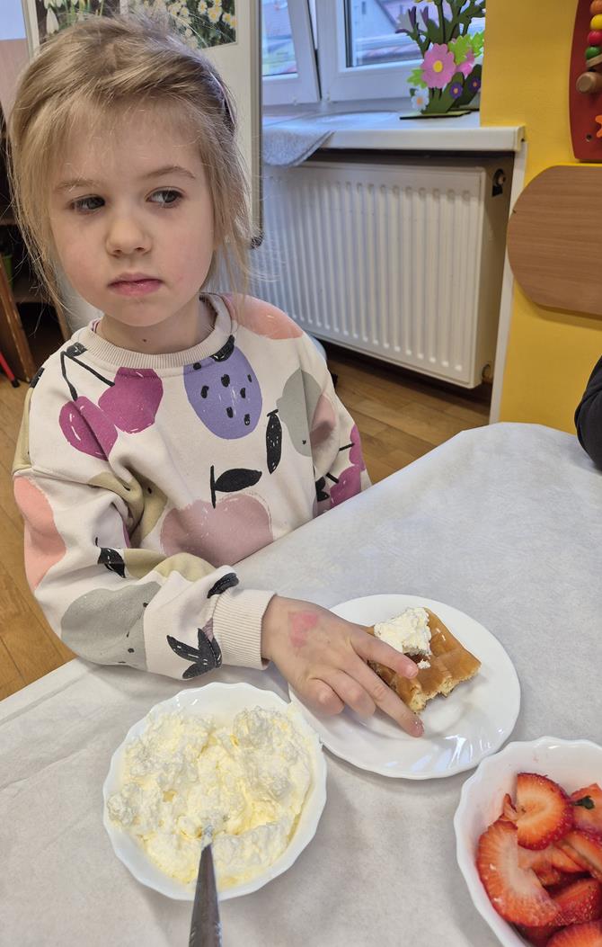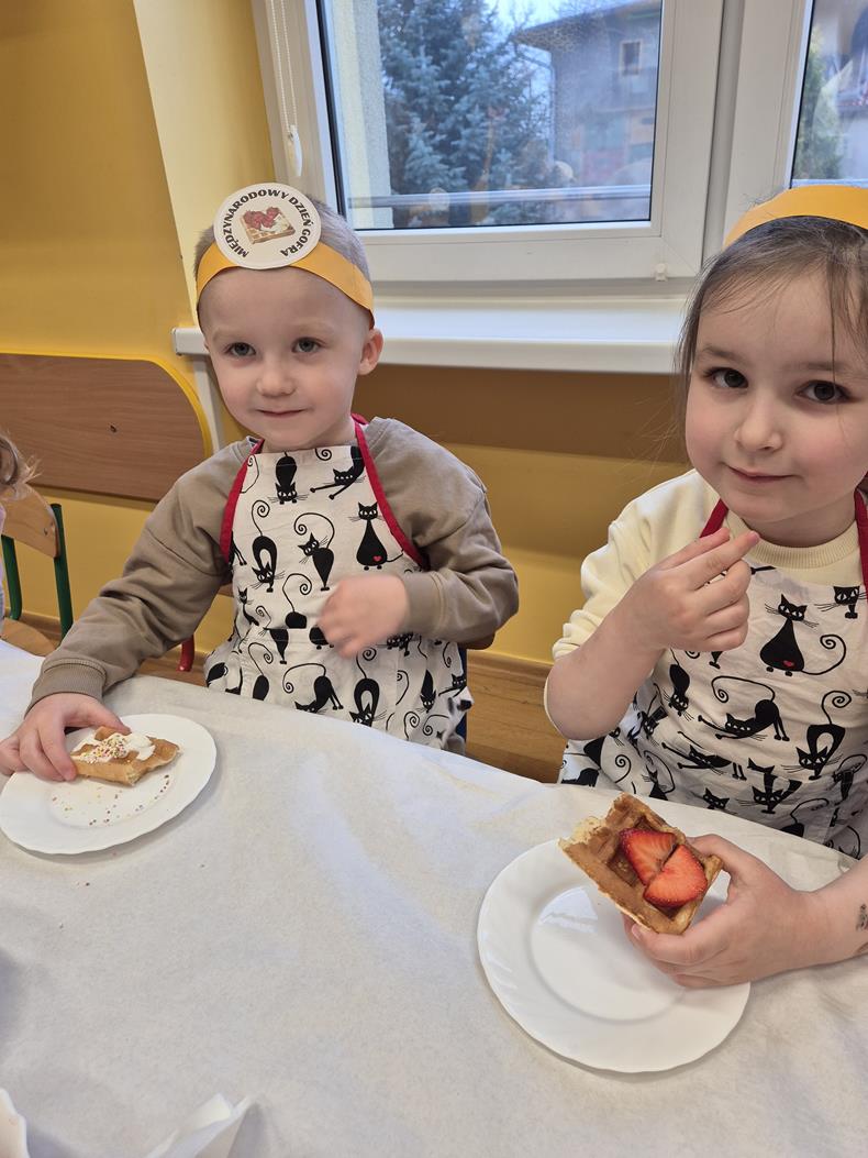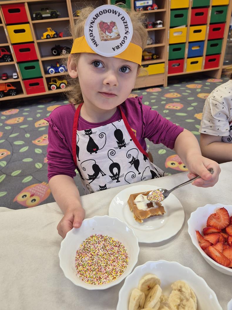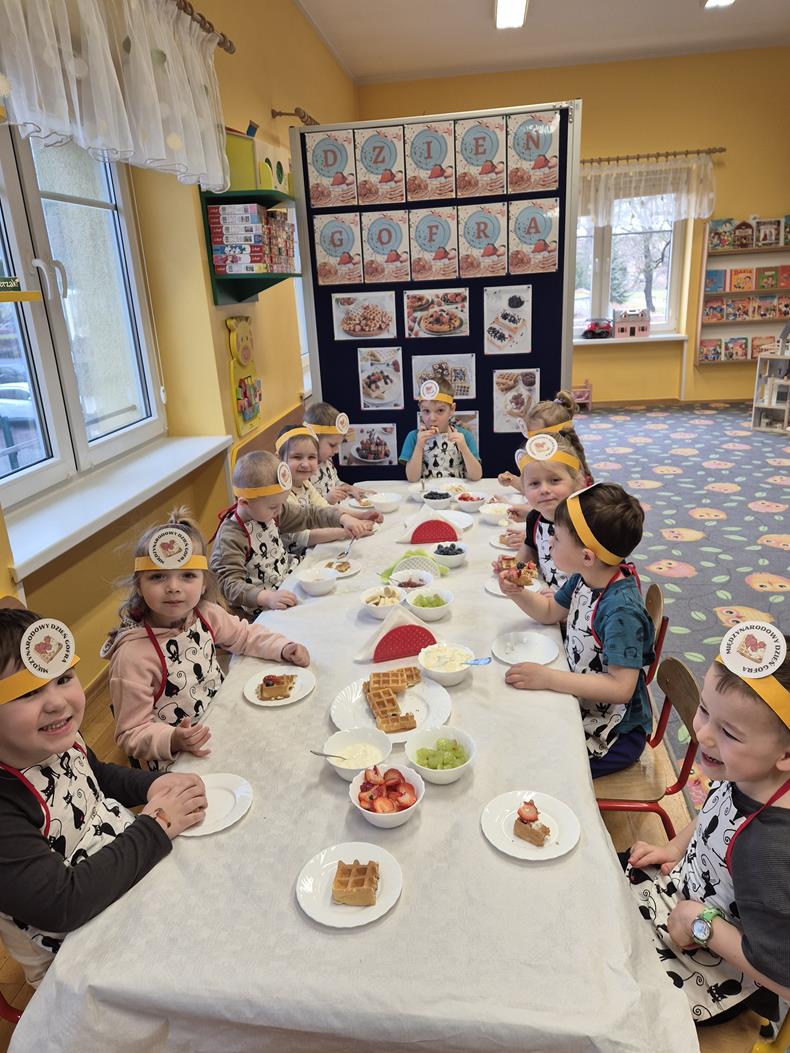 Zajęcia kulinarne to doskonały rodzaj zajęć, które dają dzieciom ogromną satysfakcję, uczą czerpania radości ze wspólnego przygotowania posiłku, jak również wdrażają je do dbania o właściwe nawyki żywieniowe. Dzieci z oddziału „Pszczółek” miały okazję do takich działań zespołowych, podczas których, robiły pyszne gofry. Zanim przystąpiły do pracy dzieci umyły ręce i założyły fartuszki. Kiedy gofry były już upieczone, przedszkolaki przystąpiły do smarowania i dekoracji tych pyszności. Degustacja gofrów sprawiła dzieciom największą radość, a na ich buźkach zawitał słodziutki uśmiech. Zapach chrupiących gofrów rozchodził się po całym przedszkolu.