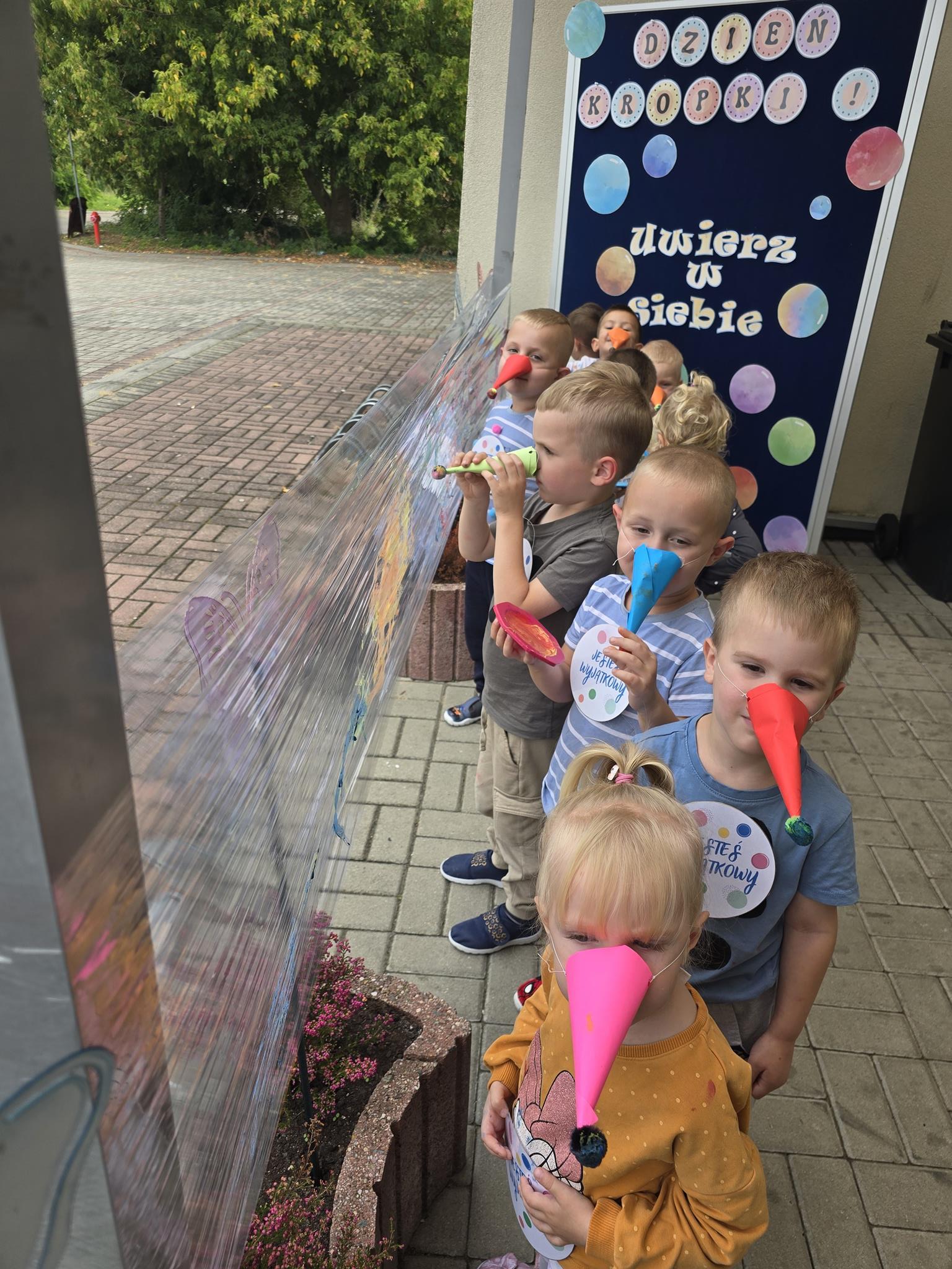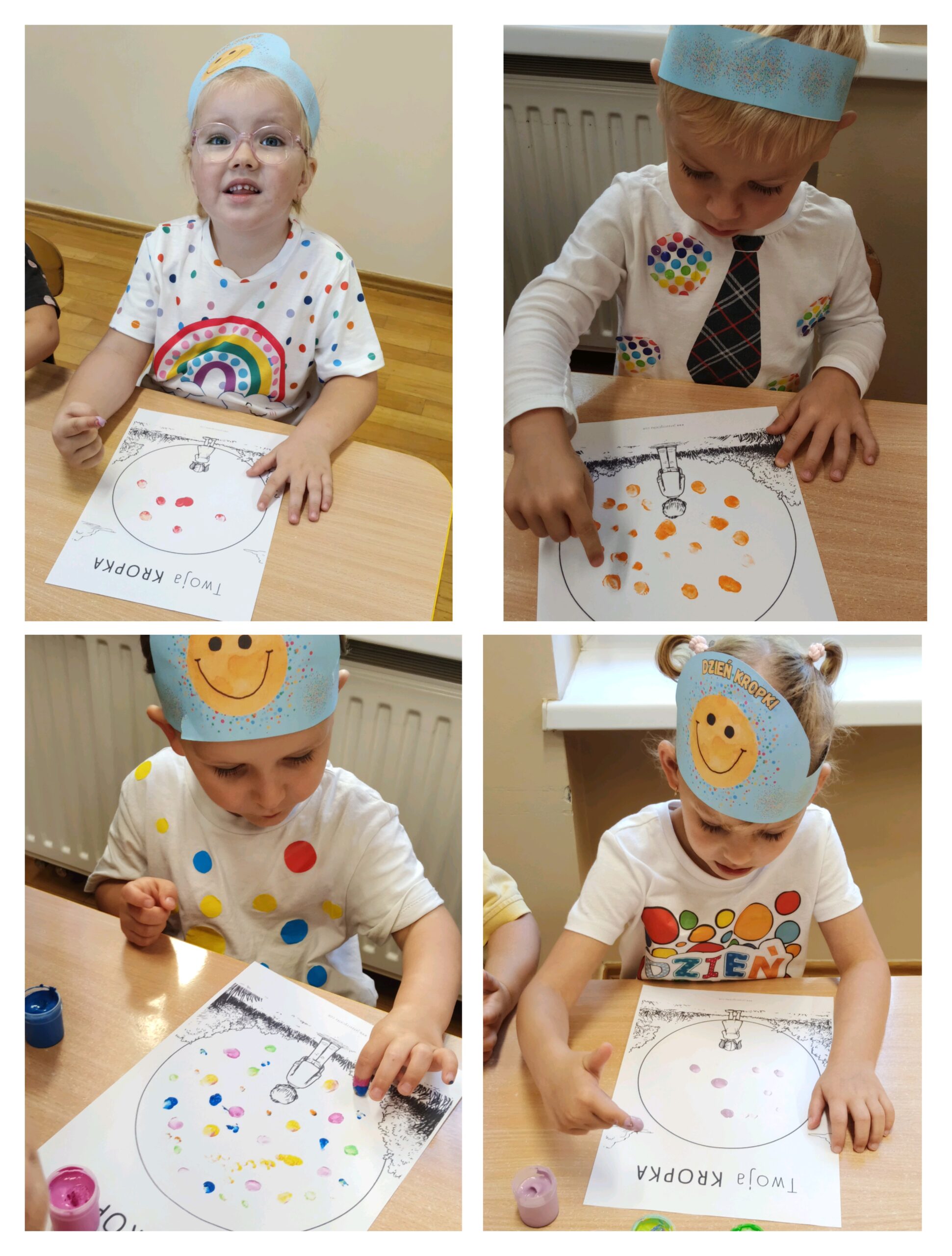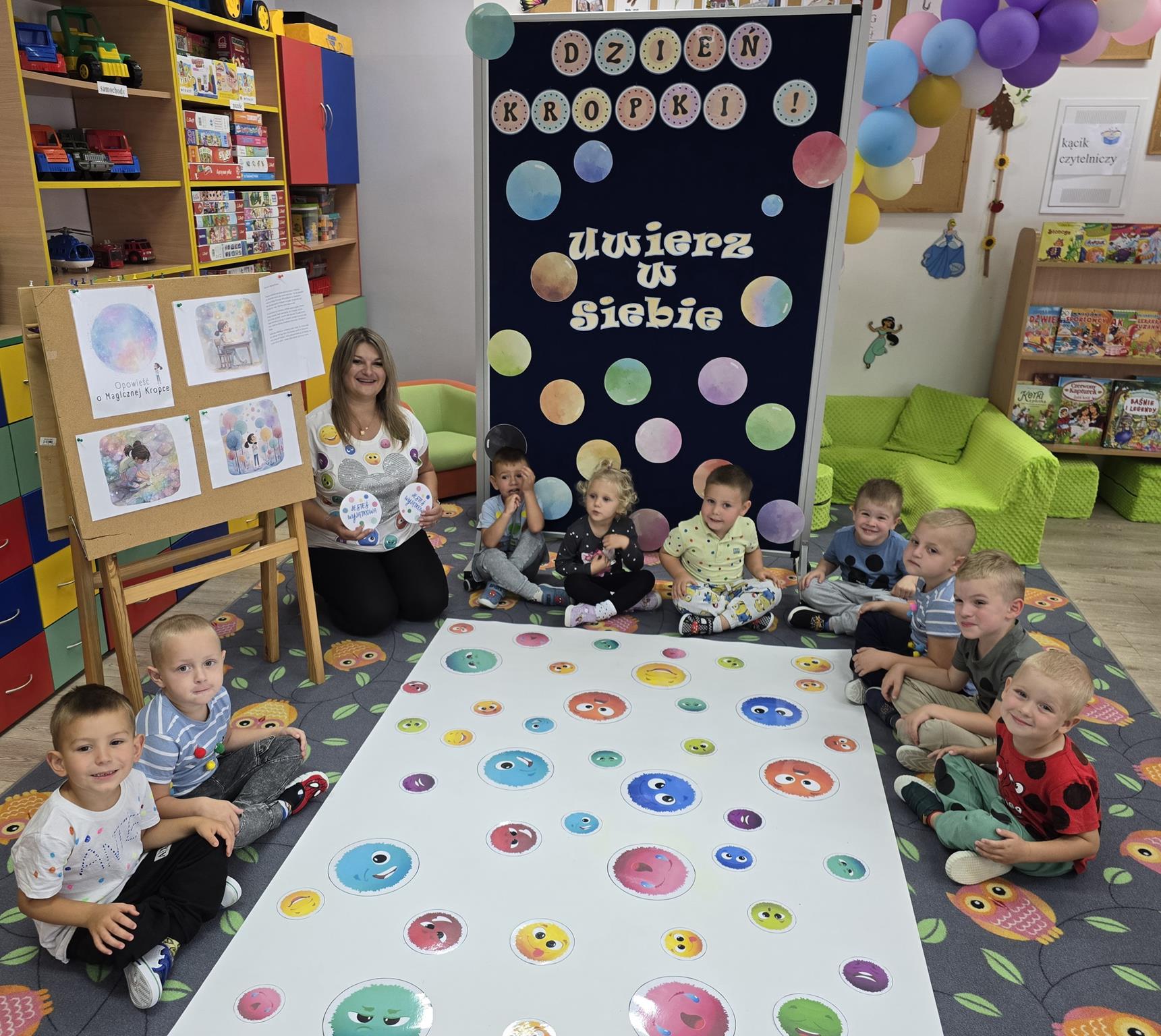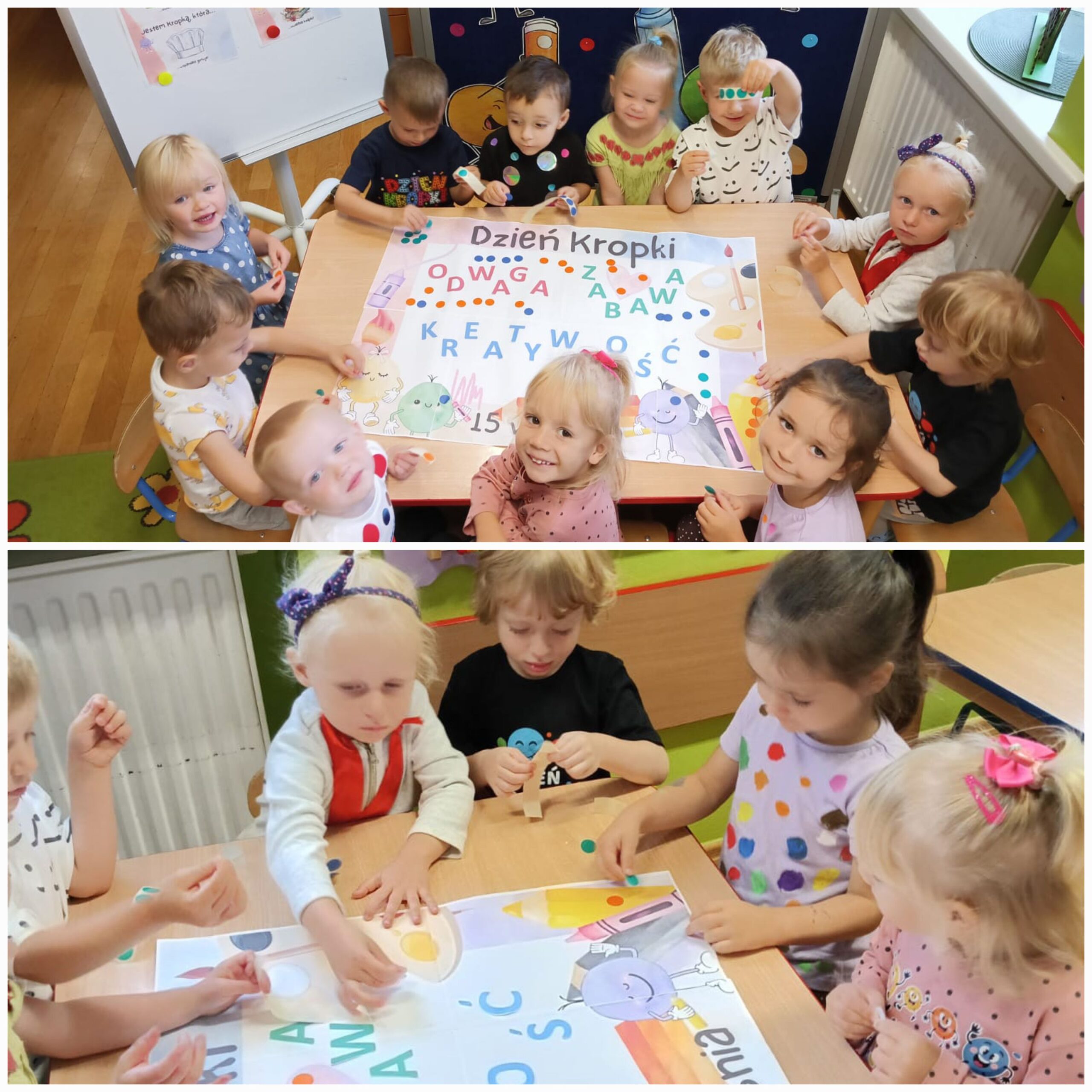 15 września obchodziliśmy Międzynarodowy Dzień Kropki – święto kreatywności, odwagi i zabawy. Tego dnia dzieci dowiedziały się, że nawet mała kropka może stać się początkiem czegoś wyjątkowego. Przedszkolaki uczestniczyły w różnych aktywnościach plastycznych, muzycznych i ruchowych – od malowania kropek po zabawy integracyjne przy muzyce z wykorzystaniem rekwizytów, które kojarzą się z bohaterką tego dnia – kropką. Każde dziecko mogło poczuć się małym artystą i poprzez wesołą zabawę odkryć, że w każdym z nas drzemie ogromny potencjał twórczy i kreatywność. Było kolorowo, wesoło i inspirująco!