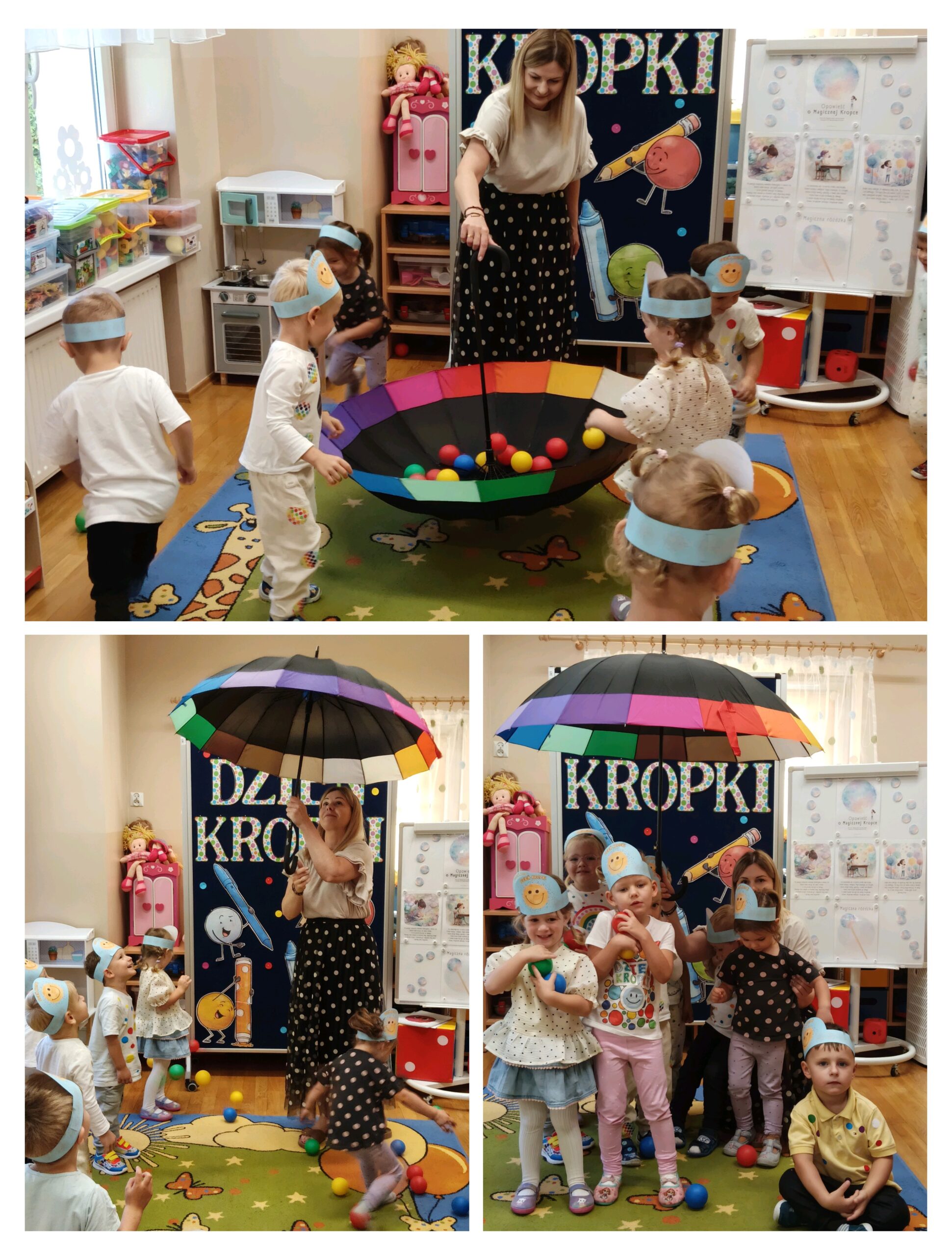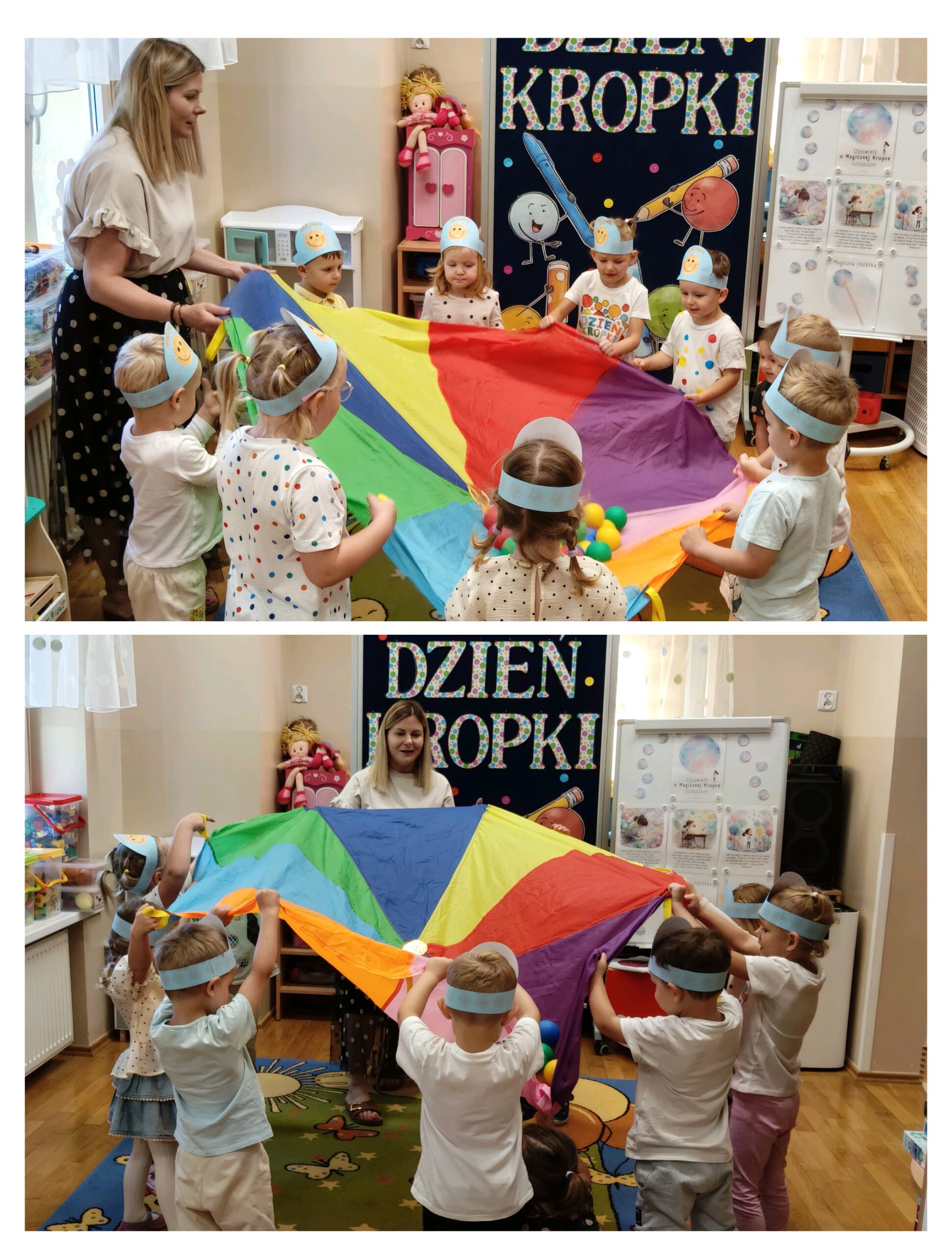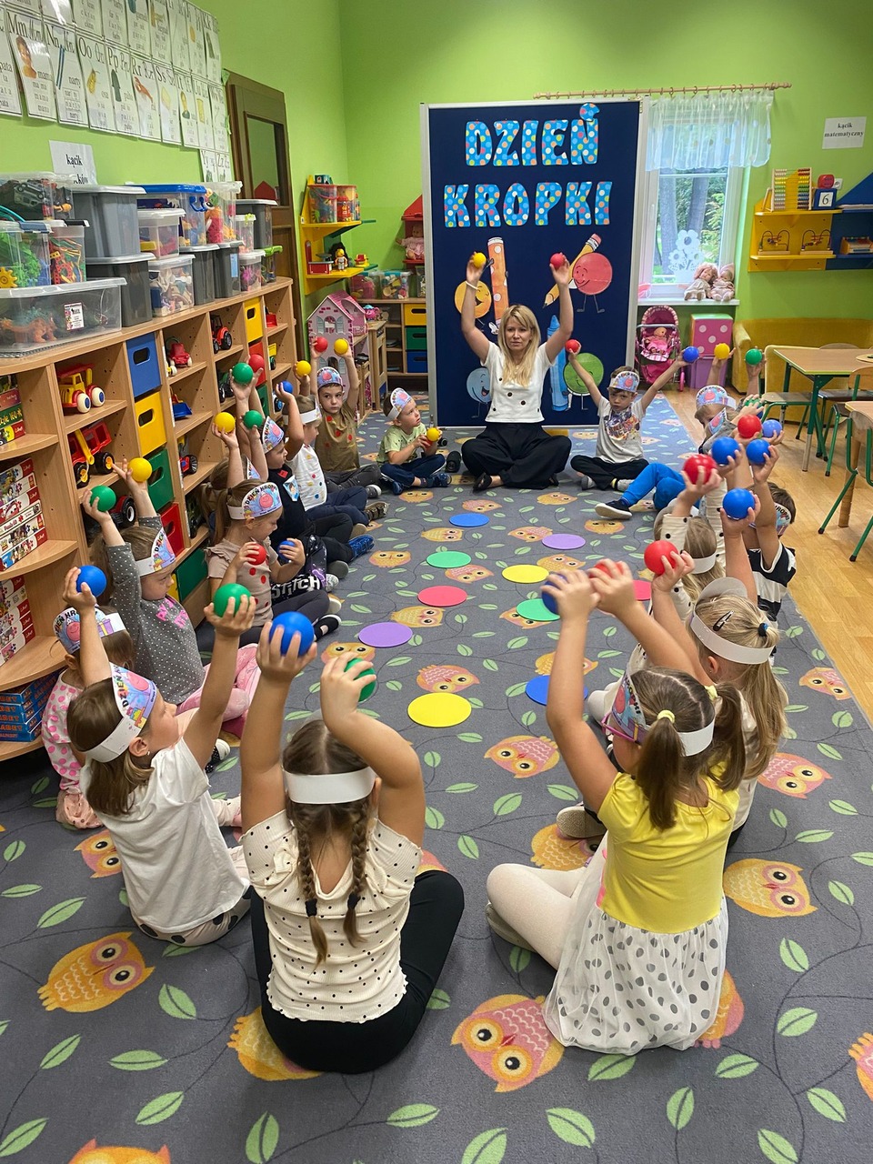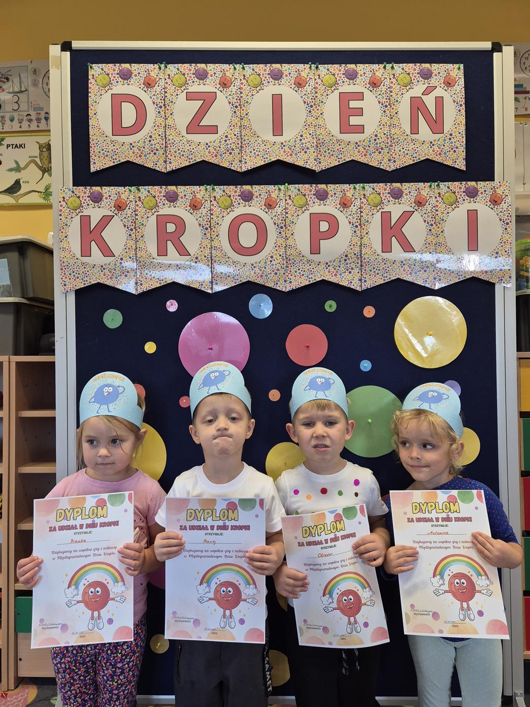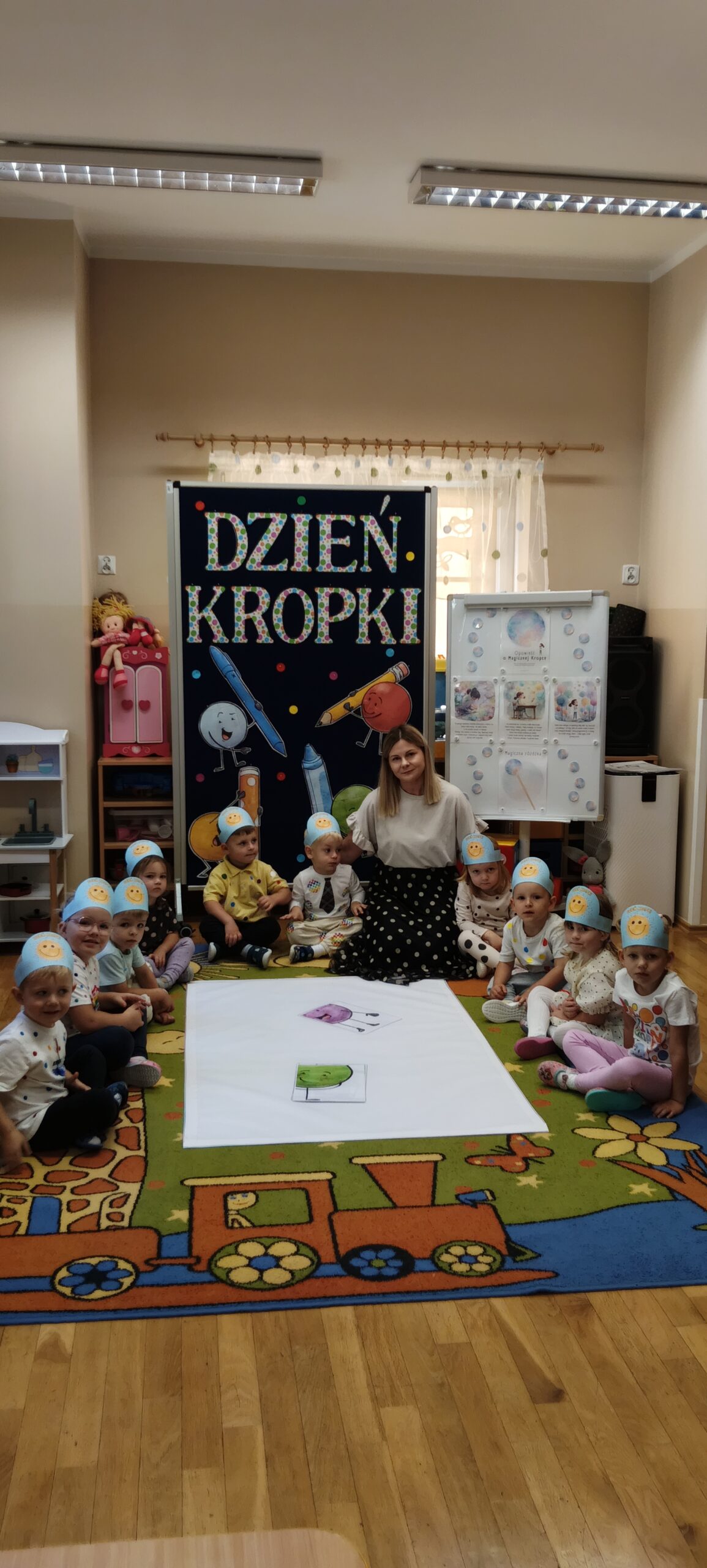 15 września obchodziliśmy Międzynarodowy Dzień Kropki – święto kreatywności, odwagi i zabawy. Tego dnia dzieci dowiedziały się, że nawet mała kropka może stać się początkiem czegoś wyjątkowego. Przedszkolaki uczestniczyły w różnych aktywnościach plastycznych, muzycznych i ruchowych – od malowania kropek po zabawy integracyjne przy muzyce z wykorzystaniem rekwizytów, które kojarzą się z bohaterką tego dnia – kropką. Każde dziecko mogło poczuć się małym artystą i poprzez wesołą zabawę odkryć, że w każdym z nas drzemie ogromny potencjał twórczy i kreatywność. Było kolorowo, wesoło i inspirująco!