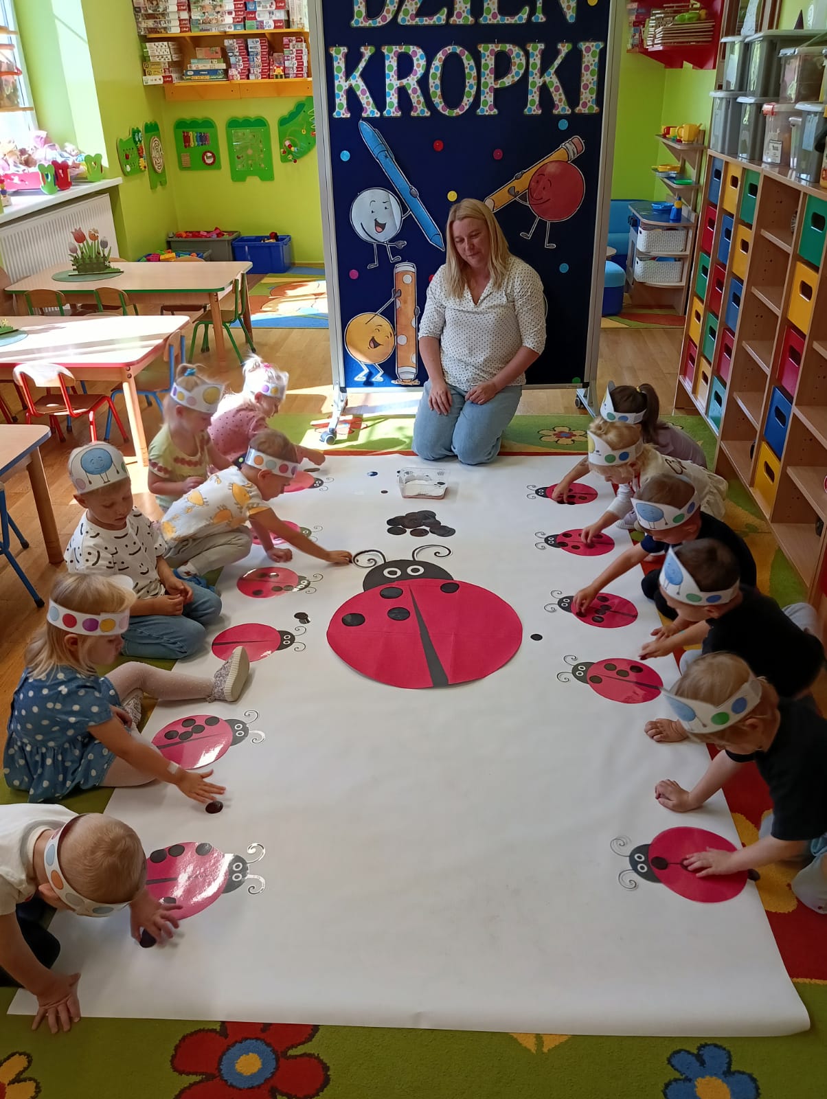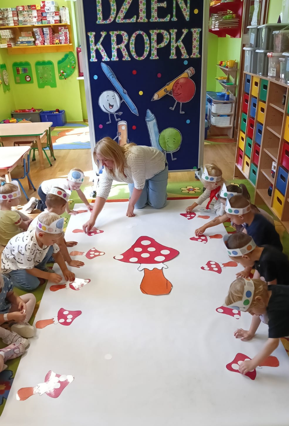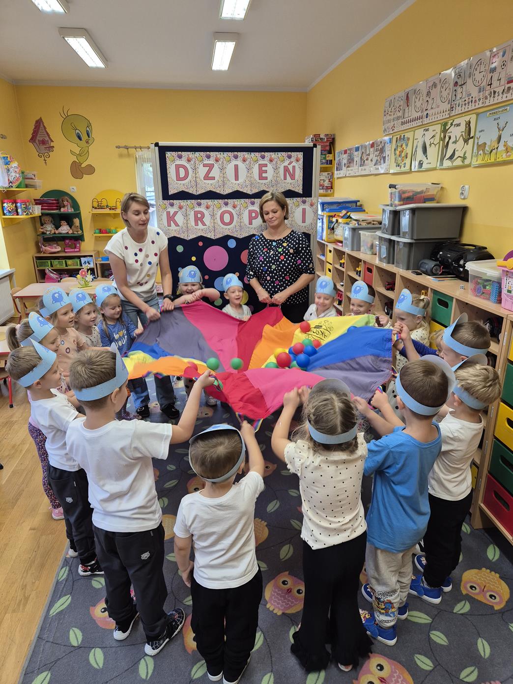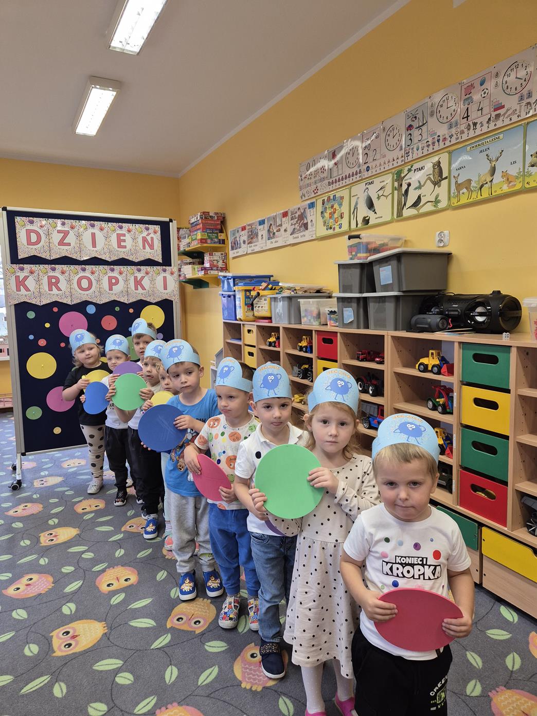 15 września obchodziliśmy Międzynarodowy Dzień Kropki – święto kreatywności, odwagi i zabawy. Tego dnia dzieci dowiedziały się, że nawet mała kropka może stać się początkiem czegoś wyjątkowego. Przedszkolaki uczestniczyły w różnych aktywnościach plastycznych, muzycznych i ruchowych – od malowania kropek po zabawy integracyjne przy muzyce z wykorzystaniem rekwizytów, które kojarzą się z bohaterką tego dnia – kropką. Każde dziecko mogło poczuć się małym artystą i poprzez wesołą zabawę odkryć, że w każdym z nas drzemie ogromny potencjał twórczy i kreatywność. Było kolorowo, wesoło i inspirująco!