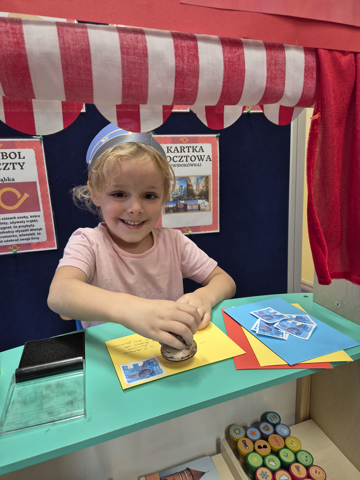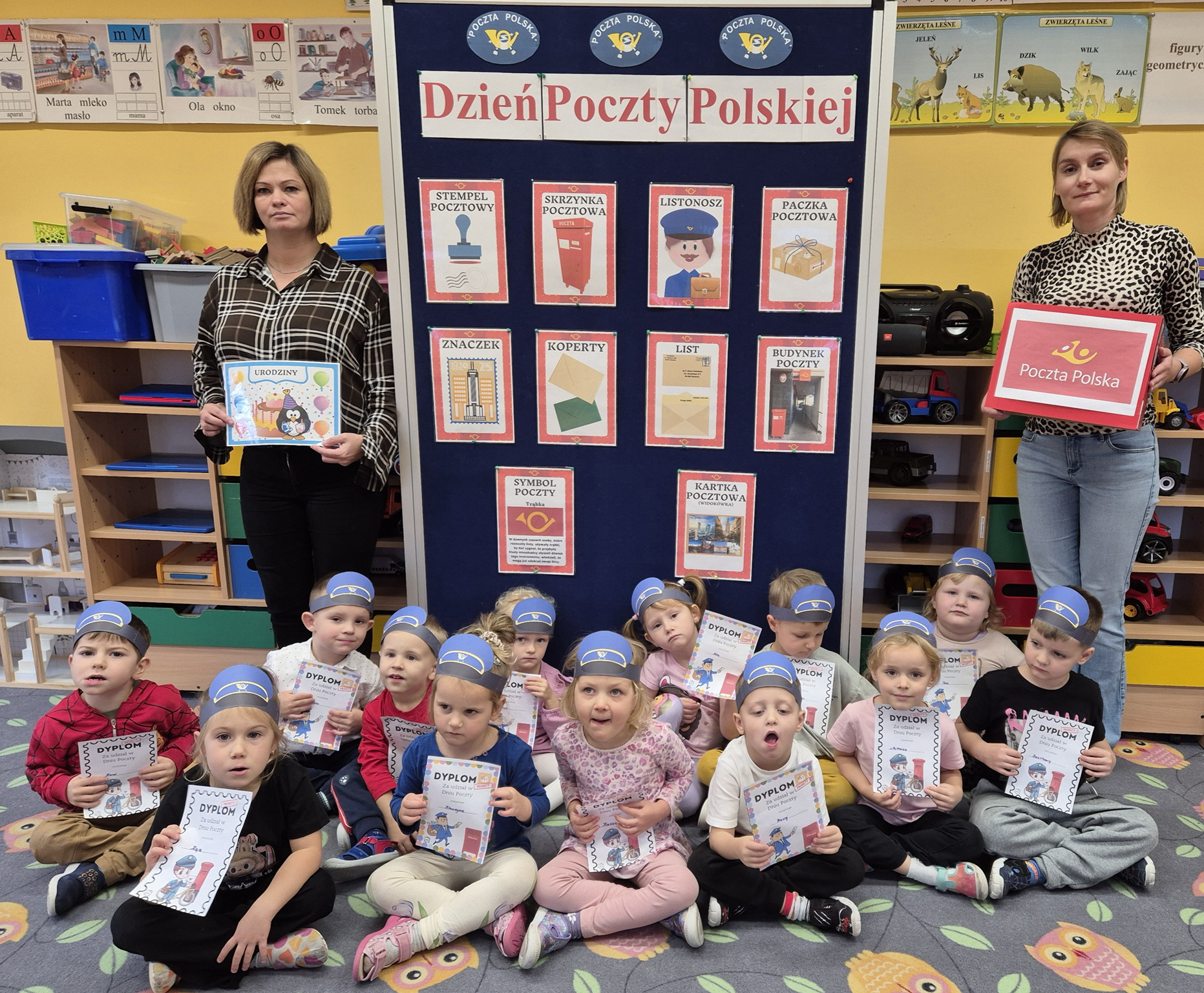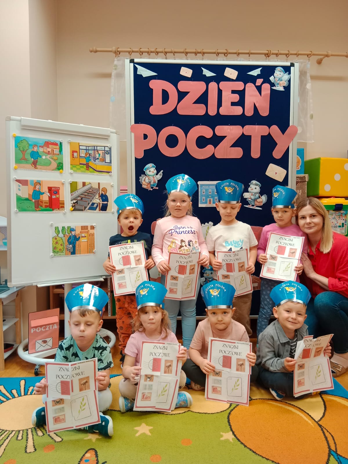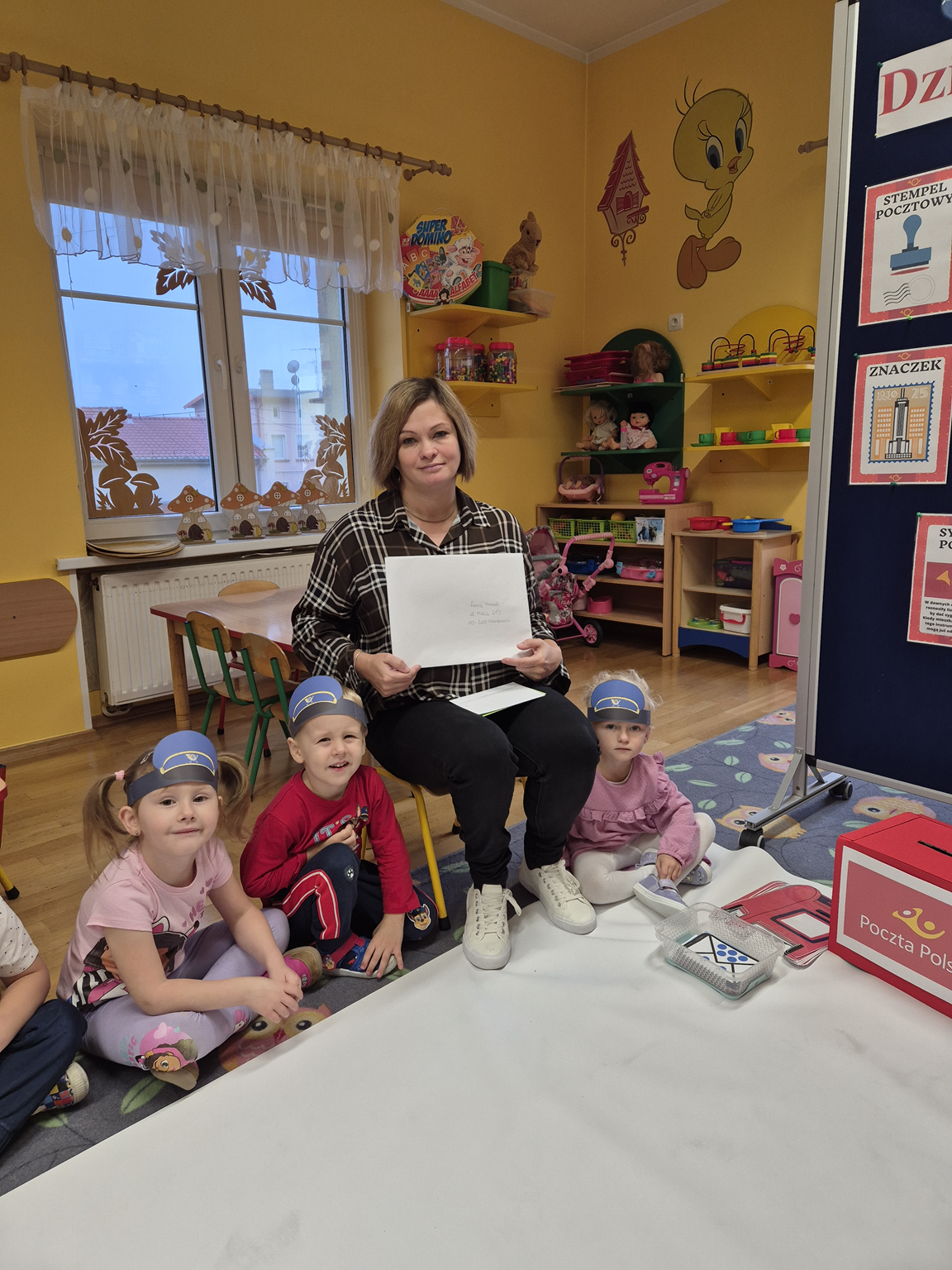 13 października obchodziliśmy w naszym przedszkolu Dzień Poczty Polskiej. Poznaliśmy zawód listonosza, jego obowiązki oraz jakie przedmioty są mu niezbędne do wykonywania swojej pracy. Dzieci dowiedziały się jak prawidłowo zaadresować listy, przesyłki, co powinno znaleźć się na kopercie, co można kupić na poczcie, kto to jest adresat, kto to jest nadawca, co zrobić, aby list dotarł. Warto pamiętać, że takie zawody jeszcze istnieją, pomimo nowoczesnego świata. I może warto czasem napisać krótki list lub przesłać kartkę na święta.