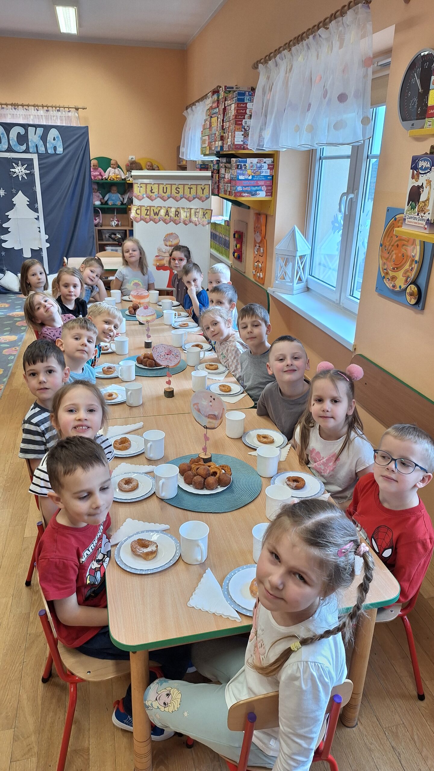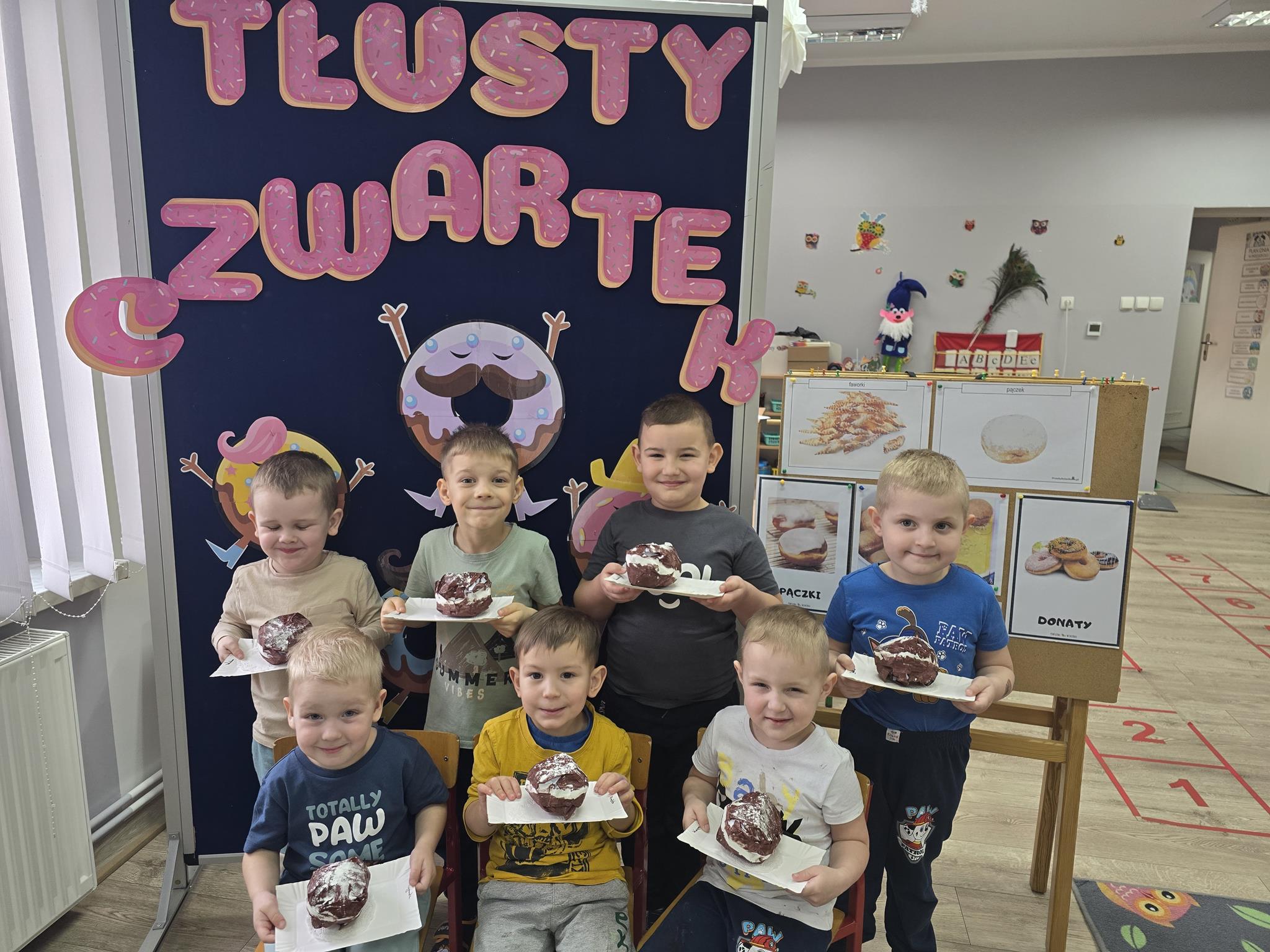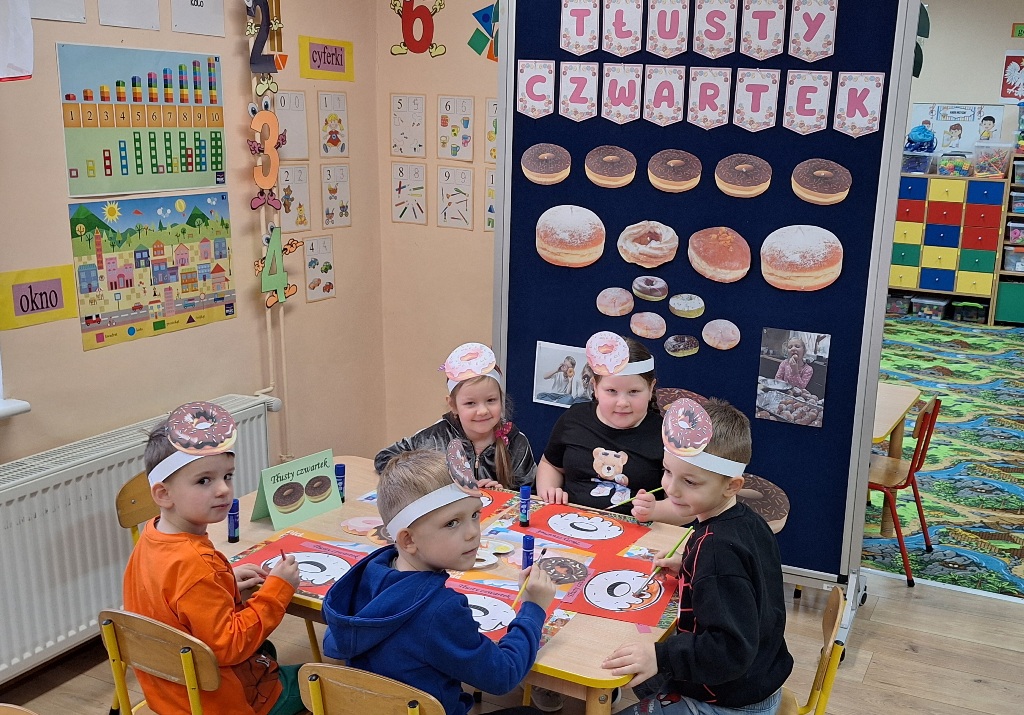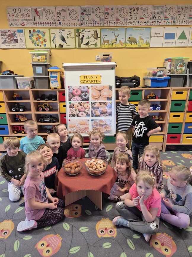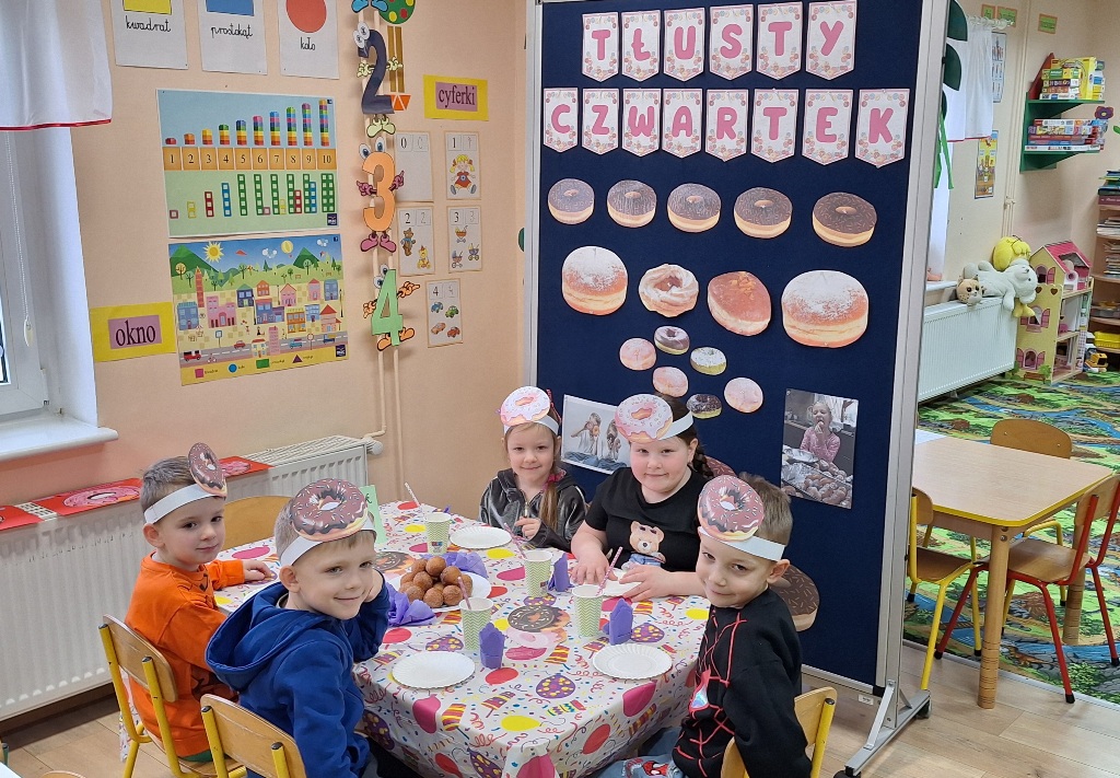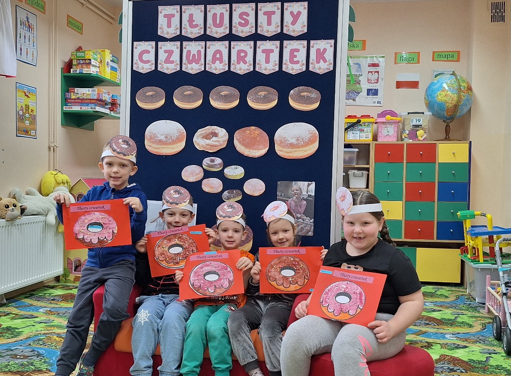 „Powiedział Bartek , że dziś tłusty czwartek, a Bartkowa uwierzyła, dobrych pączków nasmażyła” -mówi staropolskie przysłowie. Tłusty Czwartek -tak, jak każe tradycja, każdy w ten dzień powinien zjeść pączka. Tak też było w naszym przedszkolu. W tłusty czwartek 27lutego we wszystkich oddziałach przedszkolnych obchodziliśmy „Pączkowe Święto”. W ten bardzo słodki dla wszystkich dzień, przedszkolaki zapoznały się ze zwyczajami polskiej tradycji, z historią pączka. Każde dziecko kosztowało pączka, który zjadany był z wielkim apetytem oraz uśmiechem na buzi.