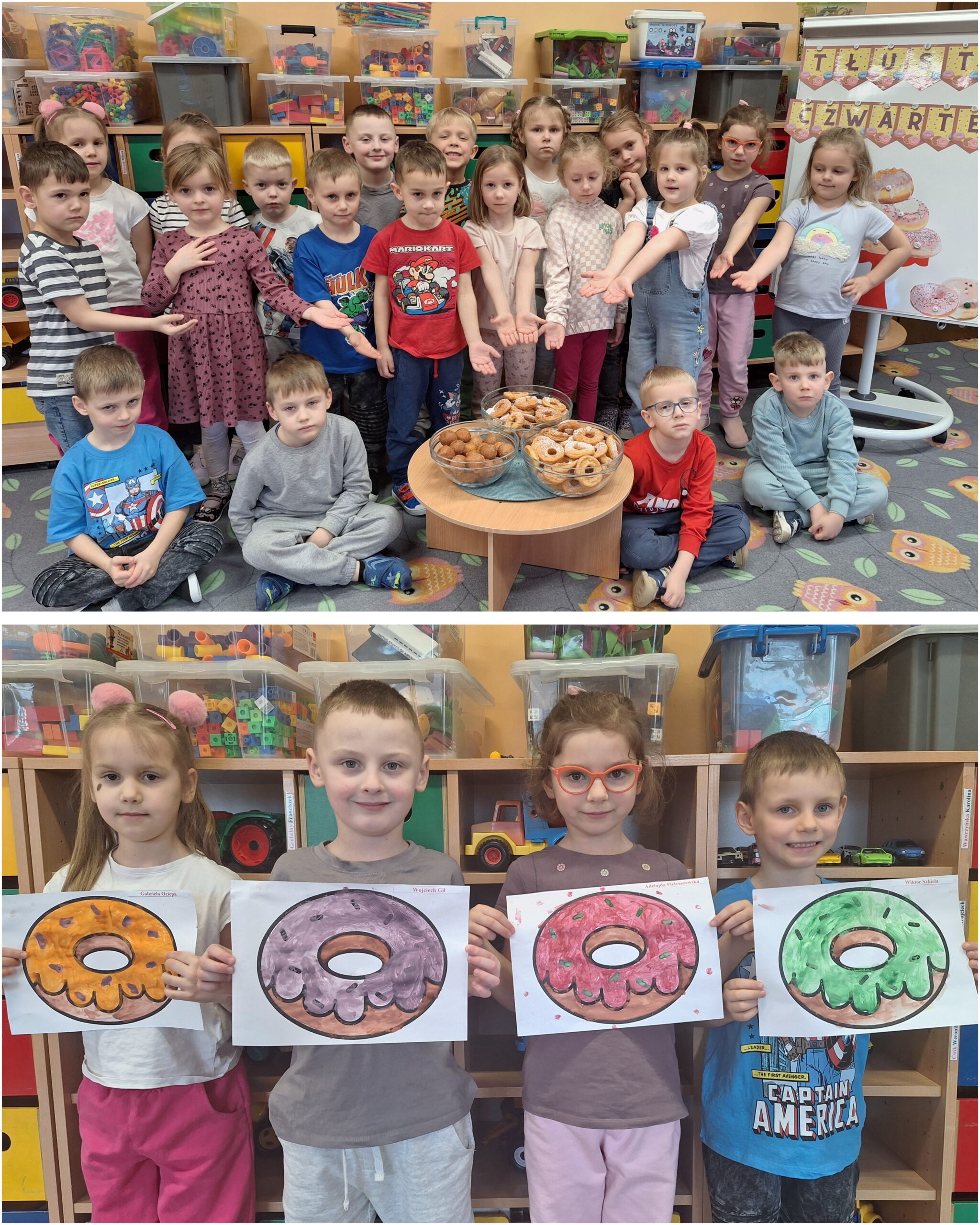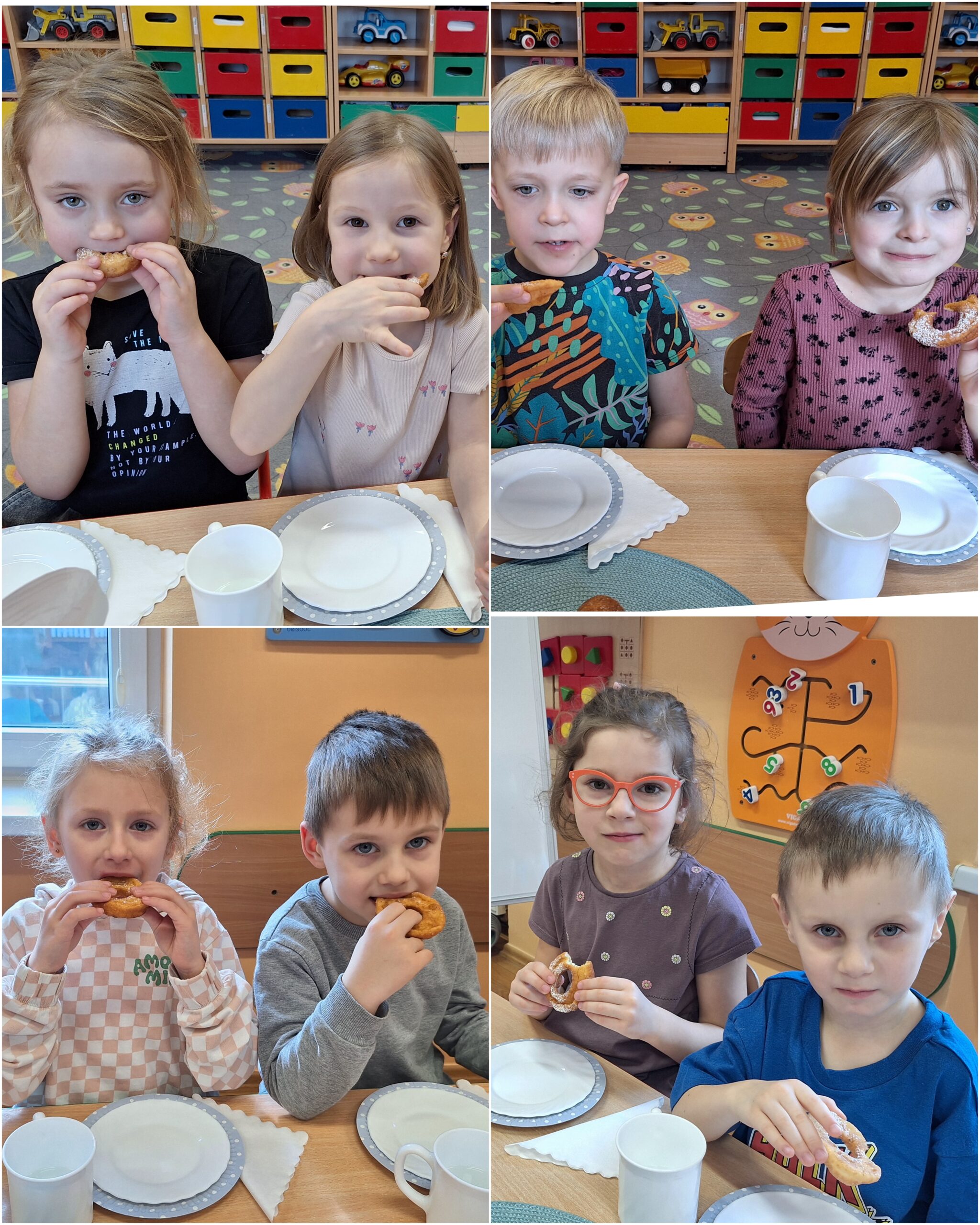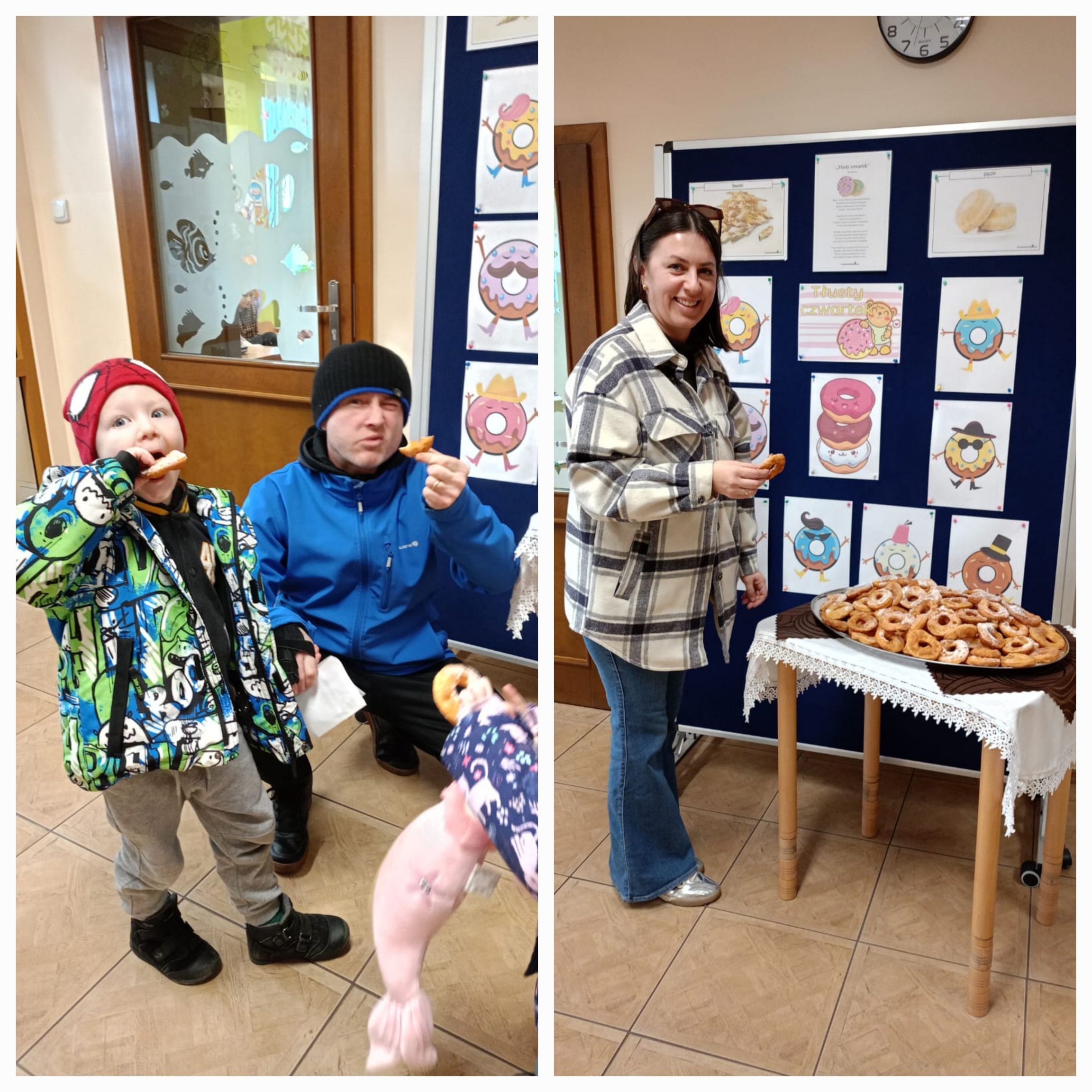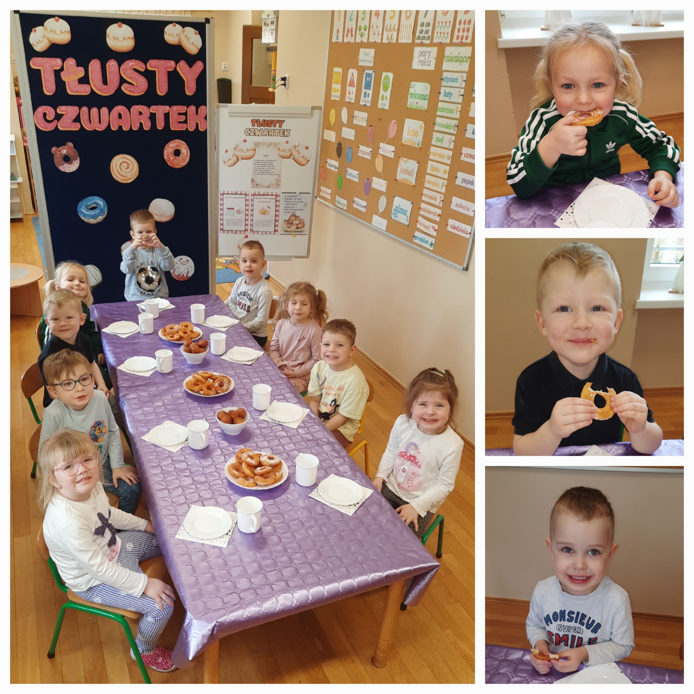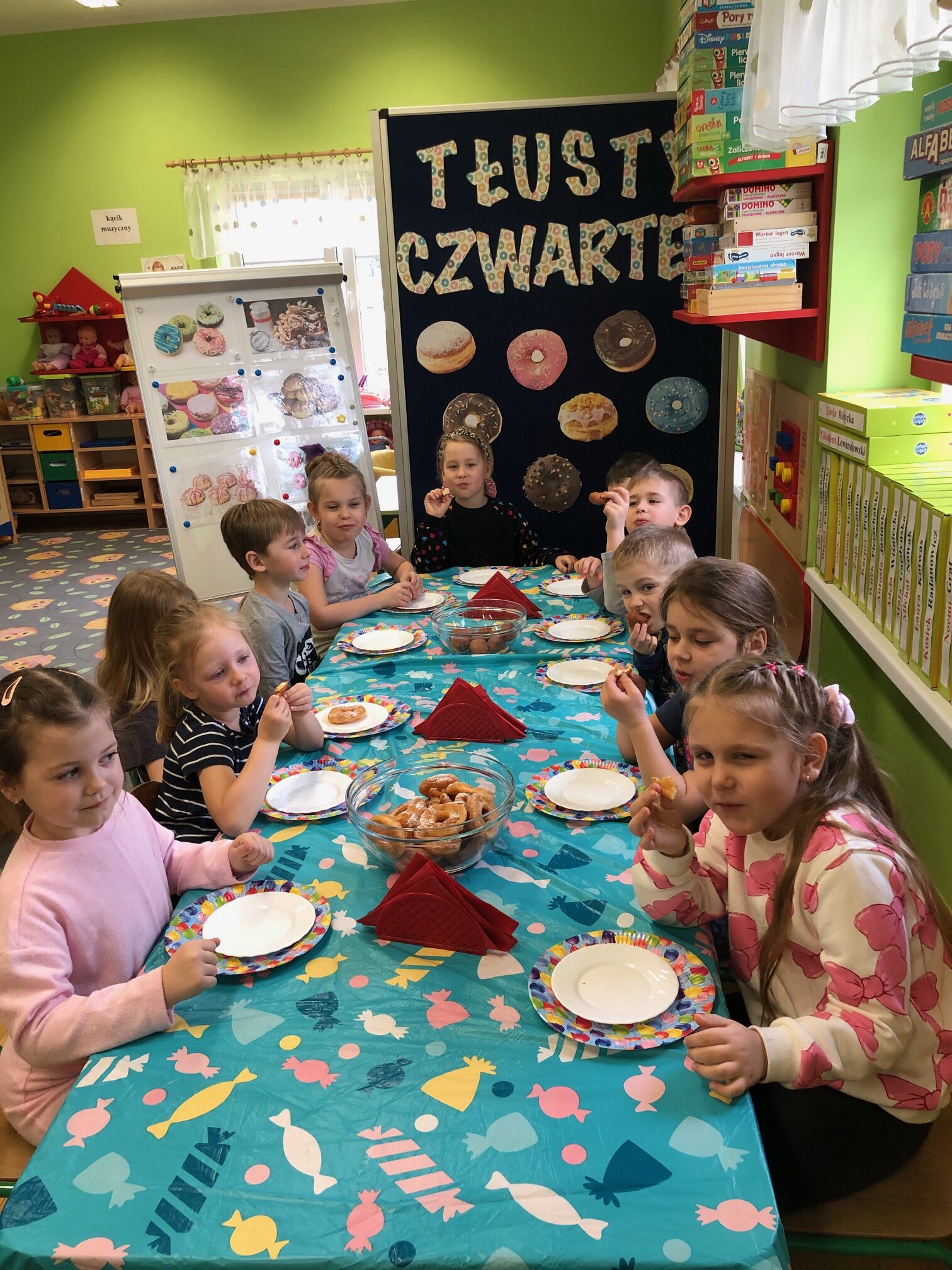 „Powiedział Bartek , że dziś tłusty czwartek, a Bartkowa uwierzyła, dobrych pączków nasmażyła” -mówi staropolskie przysłowie. Tłusty Czwartek -tak, jak każe tradycja, każdy w ten dzień powinien zjeść pączka. Tak też było w naszym przedszkolu. W tłusty czwartek 27lutego we wszystkich oddziałach przedszkolnych obchodziliśmy „Pączkowe Święto”. W ten bardzo słodki dla wszystkich dzień, przedszkolaki zapoznały się ze zwyczajami polskiej tradycji, z historią pączka. Każde dziecko kosztowało pączka, który zjadany był z wielkim apetytem oraz uśmiechem na buzi.