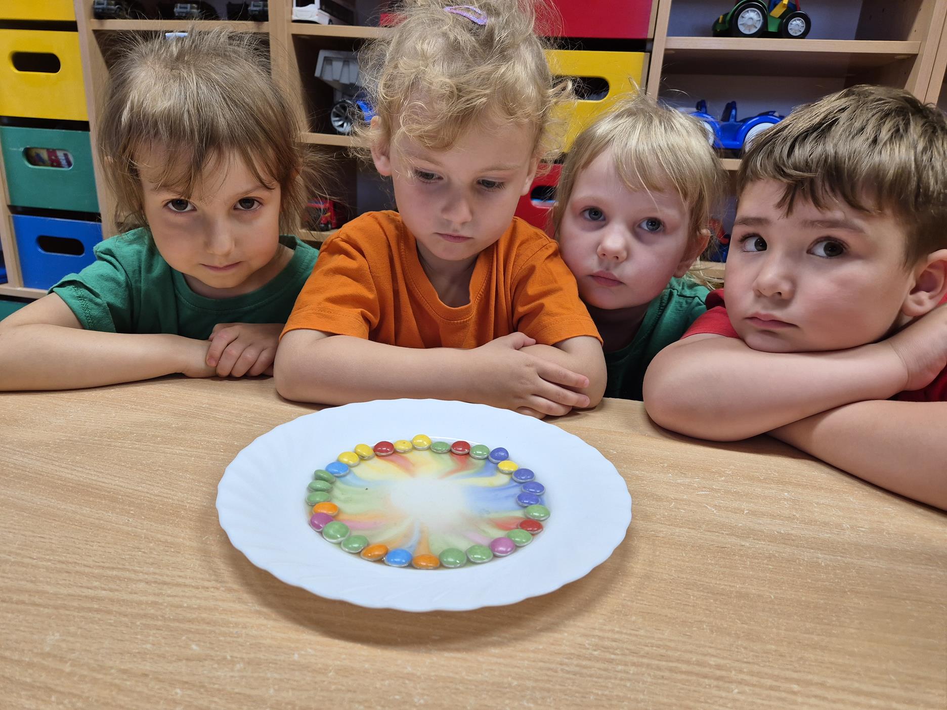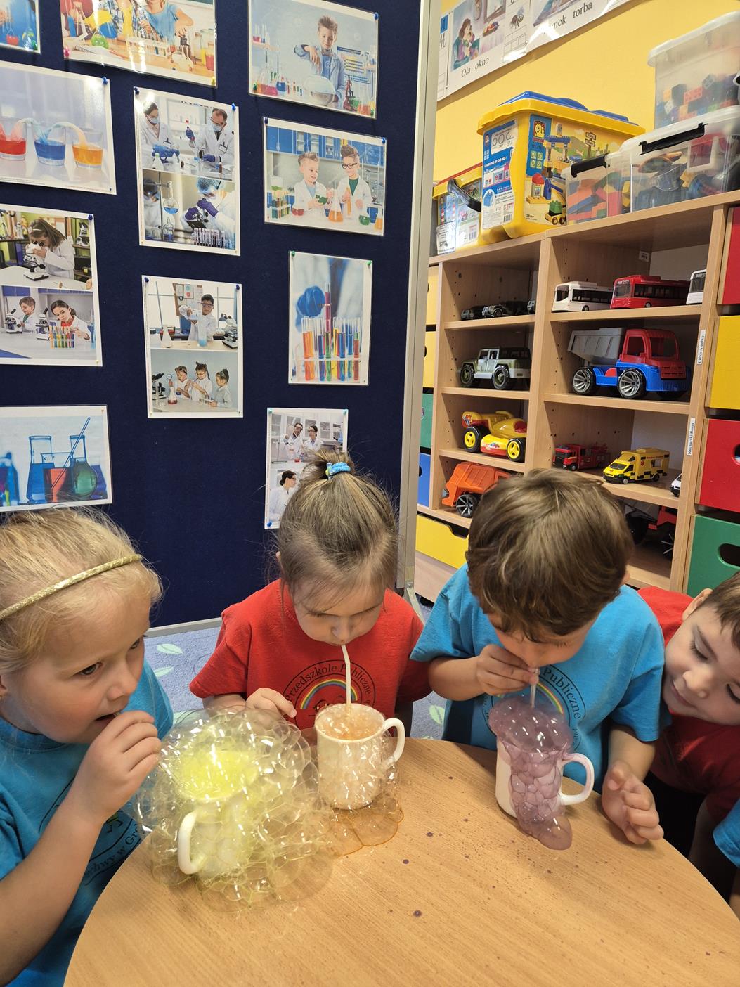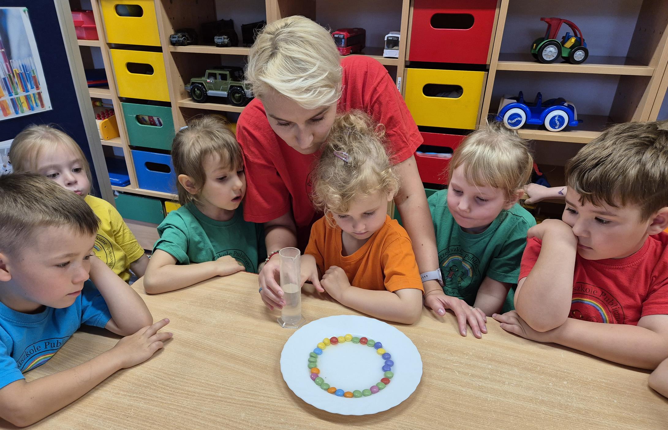 Dnia 9 czerwca przedszkolaki z grupy „Pszczółek” wzięły udział w zajęciach edukacyjnych „Dzień tęczy- eksperymenty”. Doświadczenia w przedszkolu, zwłaszcza eksperymenty, są wspaniałym sposobem na rozwijanie ciekawości i kreatywności u dzieci. Uczą one samodzielności, wyciągania wniosków i rozumienia związków przyczynowo- skutkowych.