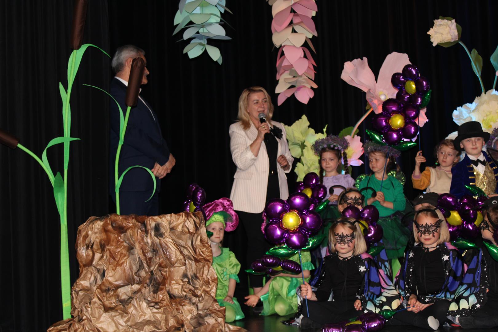 Mali aktorzy przepięknie zaprezentowali swoje zdolności recytatorskie, wokalne i taneczne, a piękne kostiumy i bajkowa scenografia, muzyka i światła wprowadziły widzów w świat baśni przepełniony kolorami i magią. Gratulacje dla wszystkich, którzy mieli swój wkład w przygotowanie przedstawienia złożyli osobiście Dyrektor Przedszkola Elżbieta Kaleta oraz Wójt Gminy Grębocice Roman Jabłoński. Tradycyjnie wszystkie dzieci zostały nagrodzone książkami oraz słodkościami od zaproszonych gości.