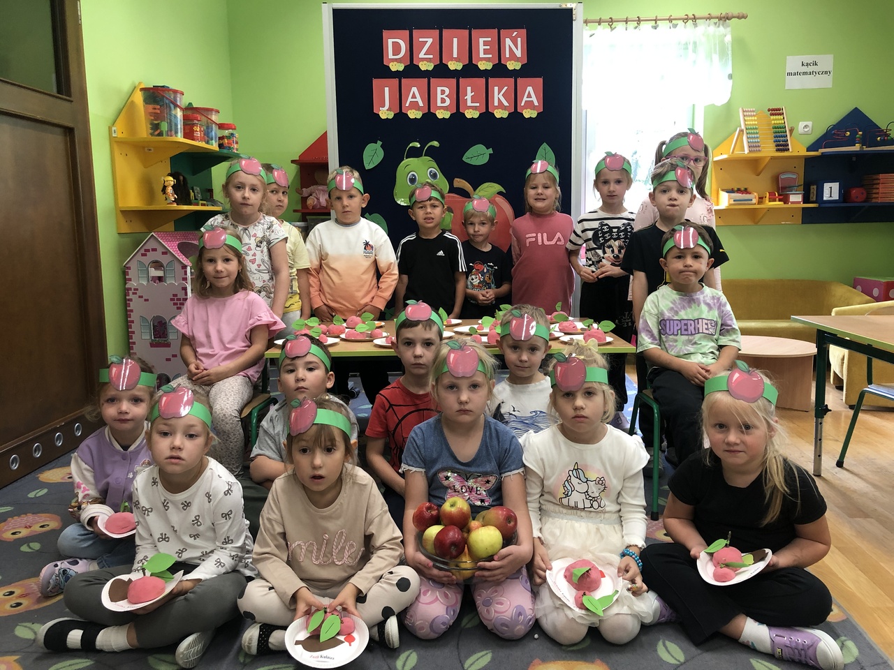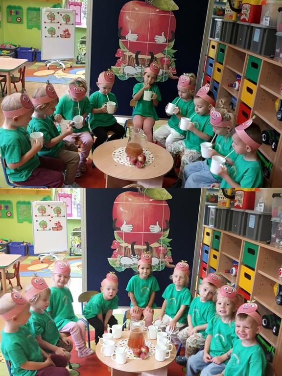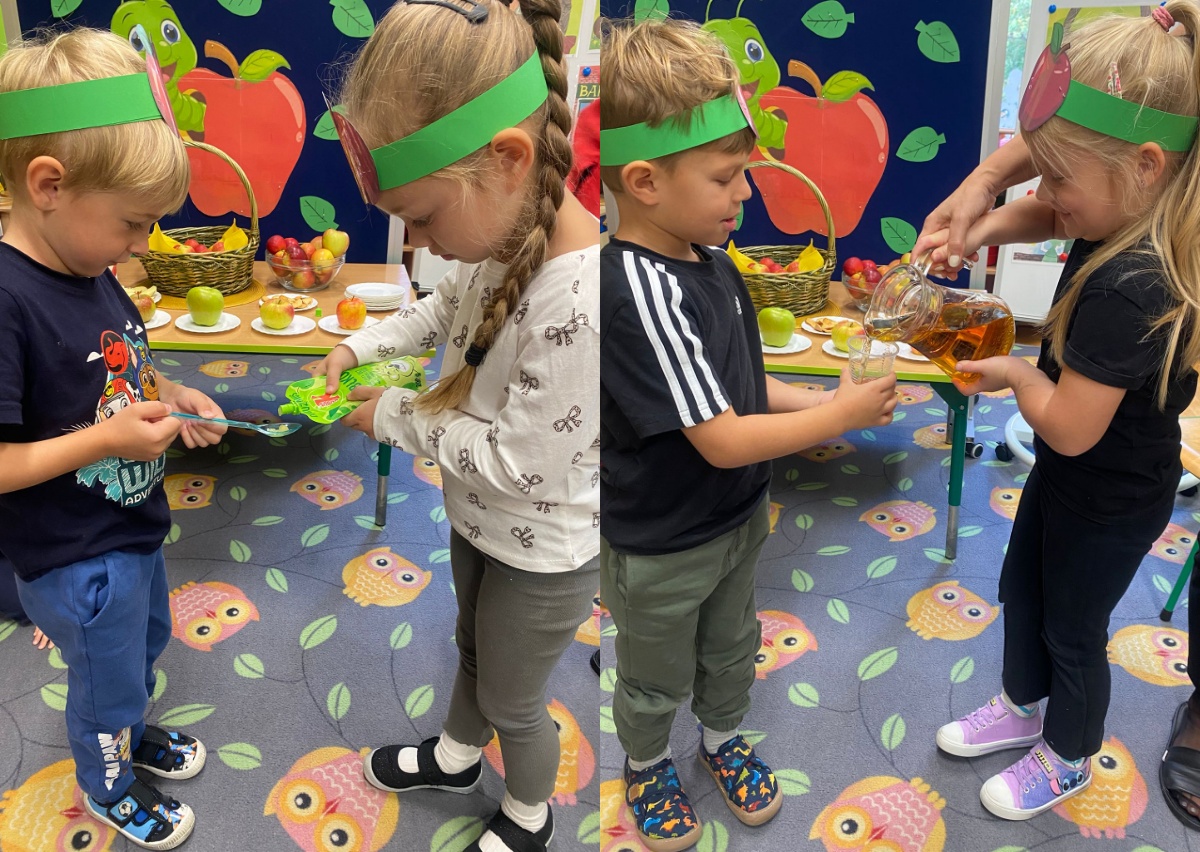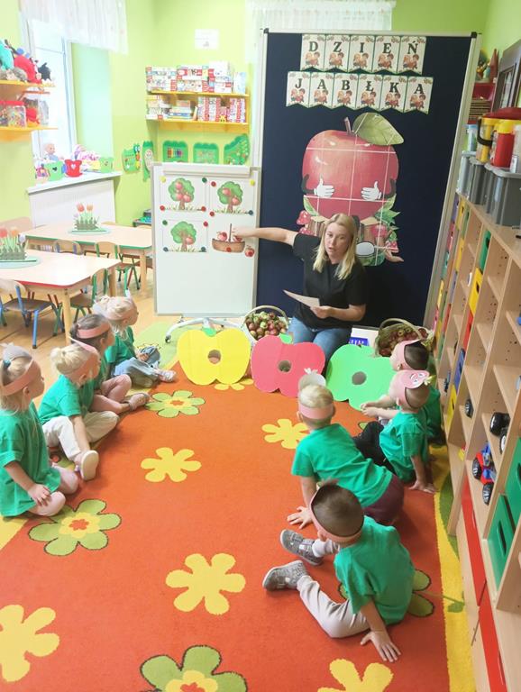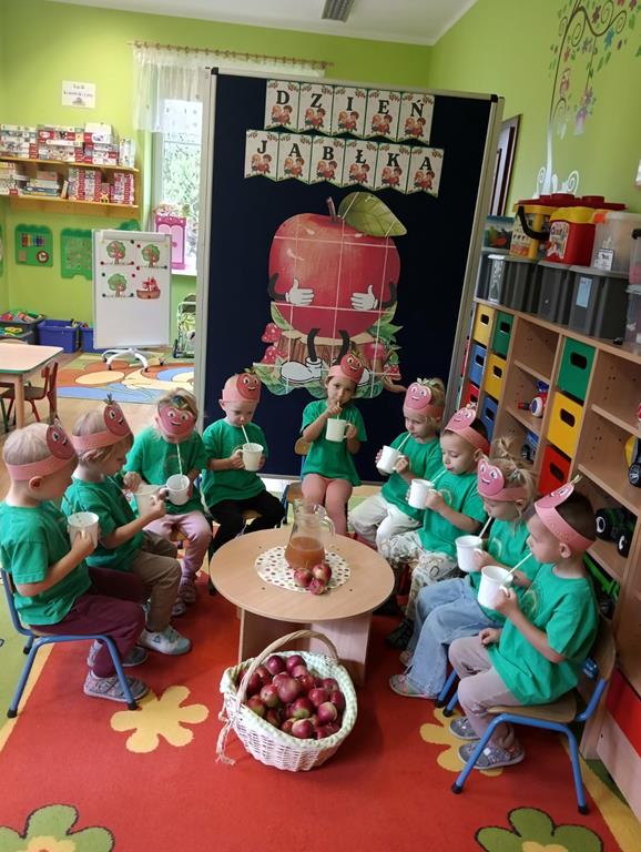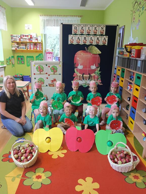 29 września w przedszkolu obchodziliśmy „Dzień Jabłka”. Jabłko jest jednym z najpopularniejszych owoców w naszym kraju i na świecie. Celem zajęć było zachęcenie dzieci do spożywania jabłek i ich przetworów jako źródła witamin. To był bardzo ciekawy dzień w przedszkolu. Dzieci wszechstronnie poszerzały wiedzę o jabłku. Poznawały różne gatunki jabłek, rozpoznawały kształt, zapach, kolor, smak. Zdobywały wiadomości na temat potraw i przetworów z jabłek. Dzień ten był nie tylko dniem innym niż zwykłe, ale dniem, o którym dzieci tak szybko nie zapomną i miejmy nadzieję będą chętnie sięgać po owoce zachowując zdrowy styl życia.