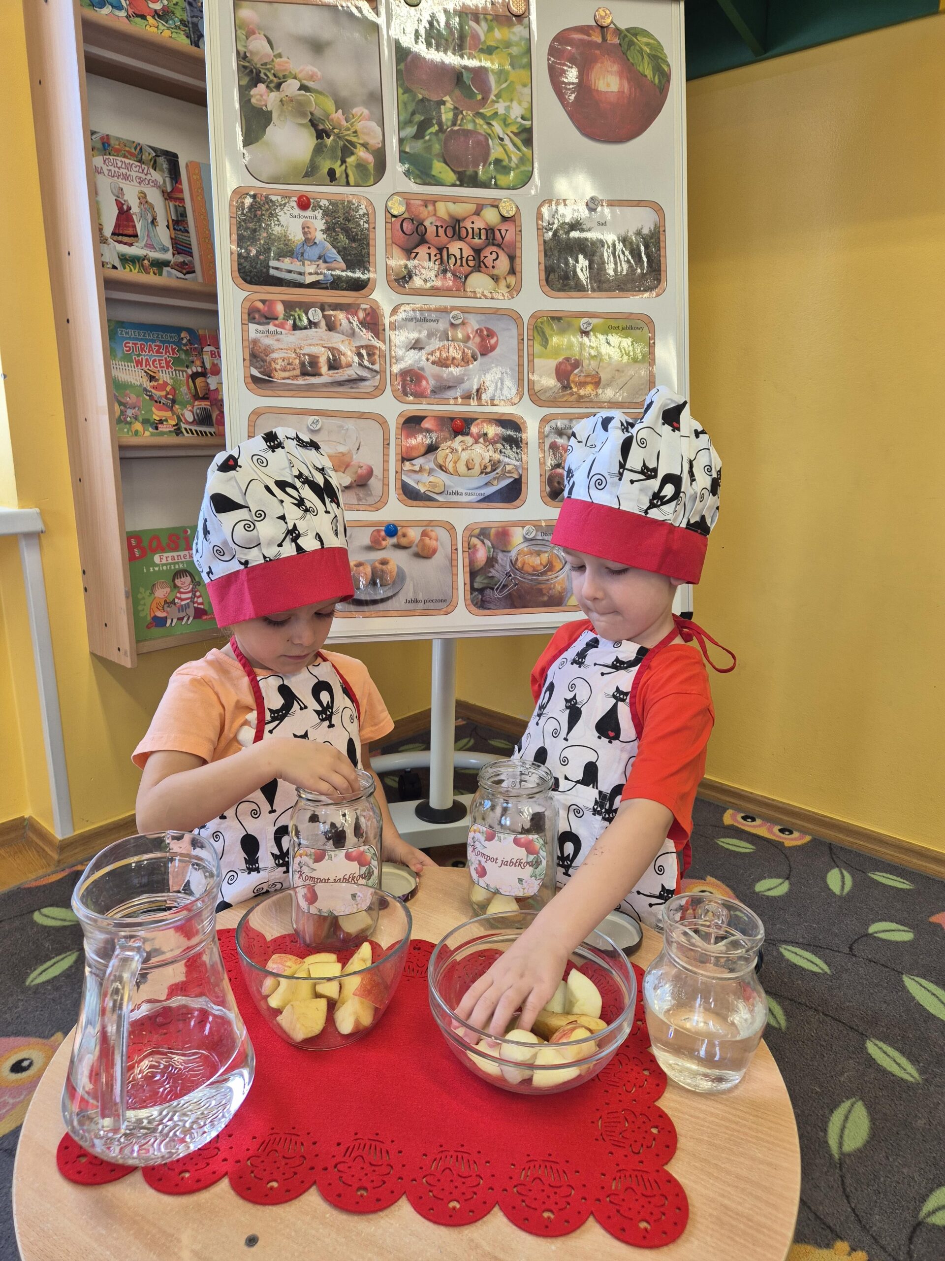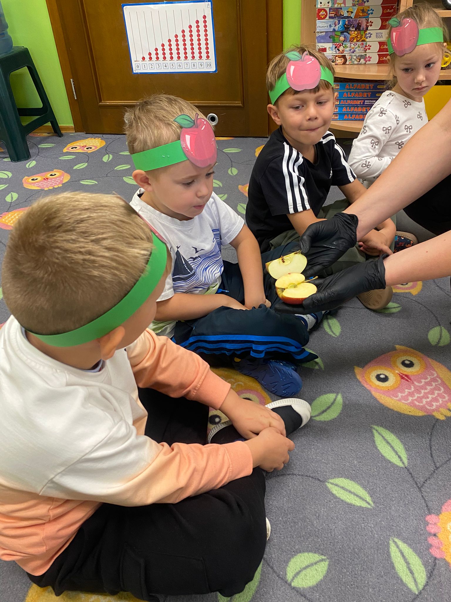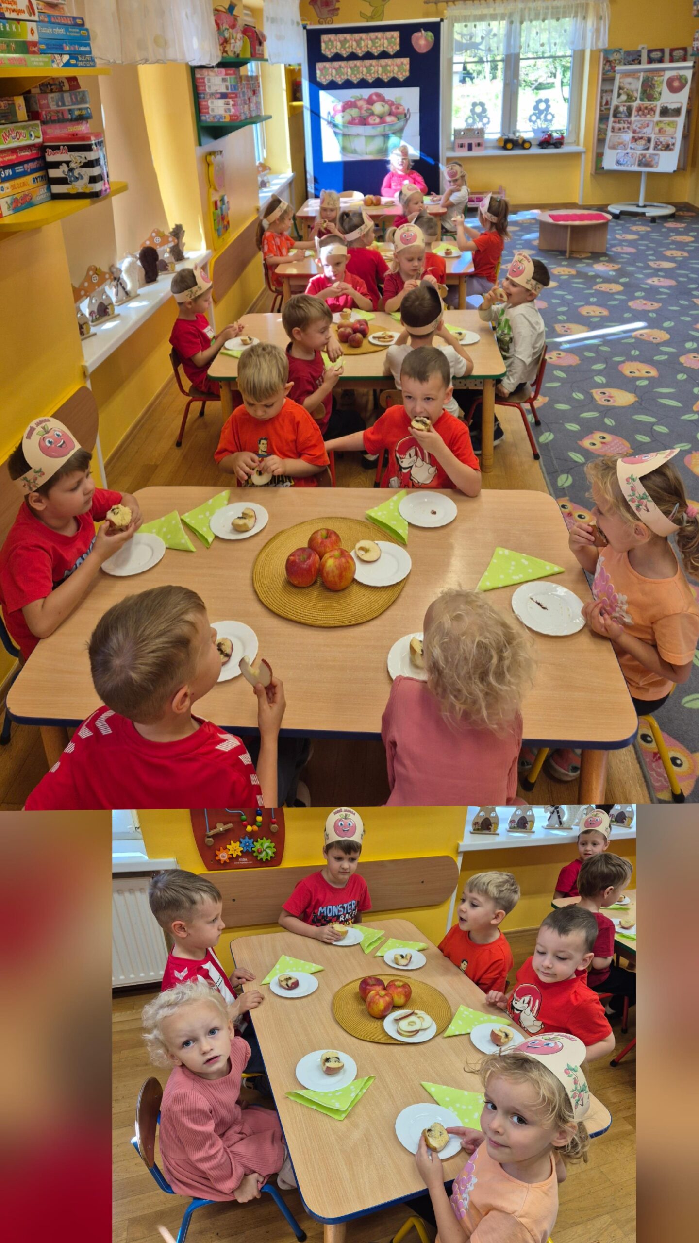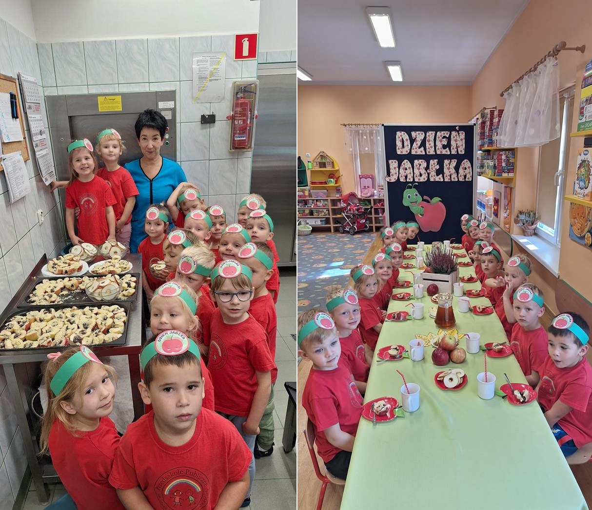 29 września w przedszkolu obchodziliśmy „Dzień Jabłka”. Jabłko jest jednym z najpopularniejszych owoców w naszym kraju i na świecie. Celem zajęć było zachęcenie dzieci do spożywania jabłek i ich przetworów jako źródła witamin. To był bardzo ciekawy dzień w przedszkolu. Dzieci wszechstronnie poszerzały wiedzę o jabłku. Poznawały różne gatunki jabłek, rozpoznawały kształt, zapach, kolor, smak. Zdobywały wiadomości na temat potraw i przetworów z jabłek. Dzień ten był nie tylko dniem innym niż zwykłe, ale dniem, o którym dzieci tak szybko nie zapomną i miejmy nadzieję będą chętnie sięgać po owoce zachowując zdrowy styl życia.