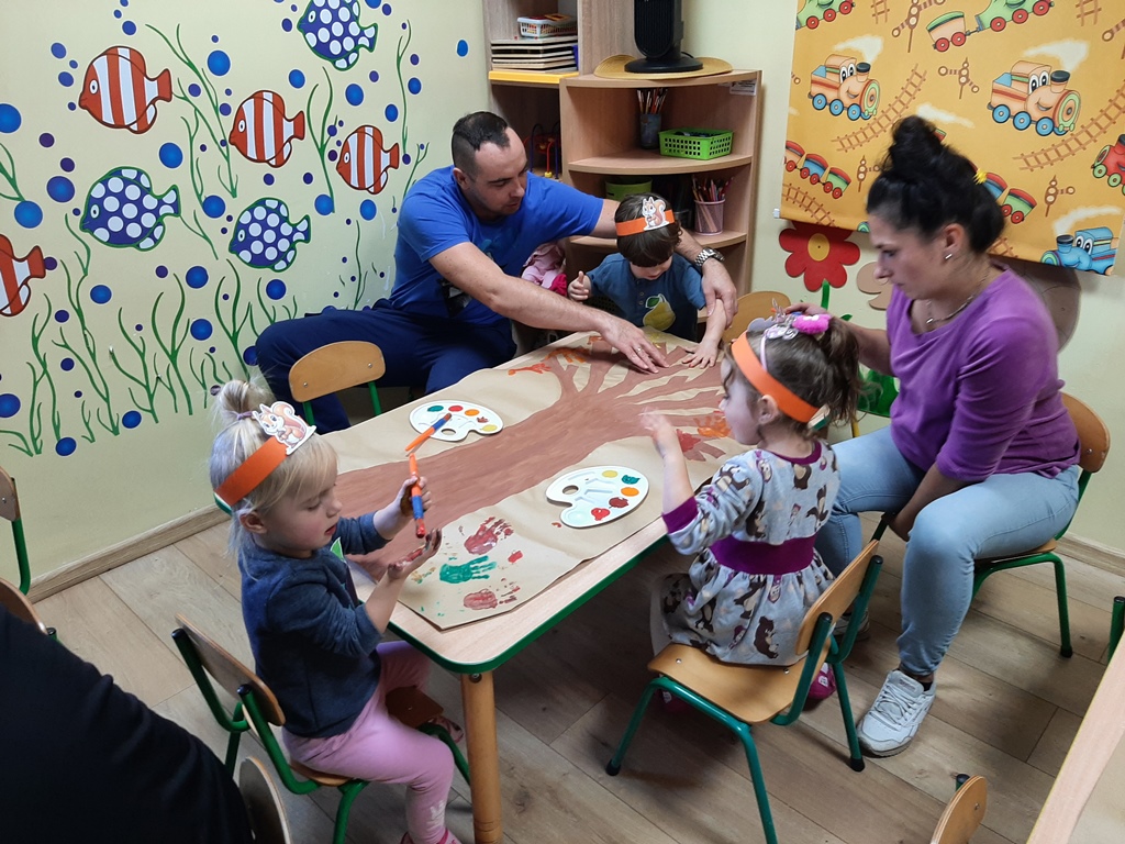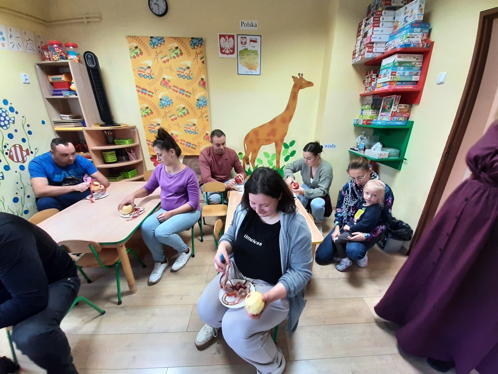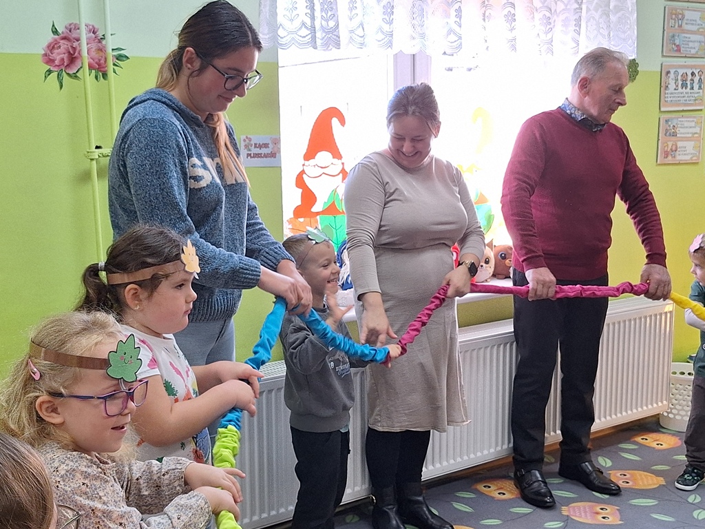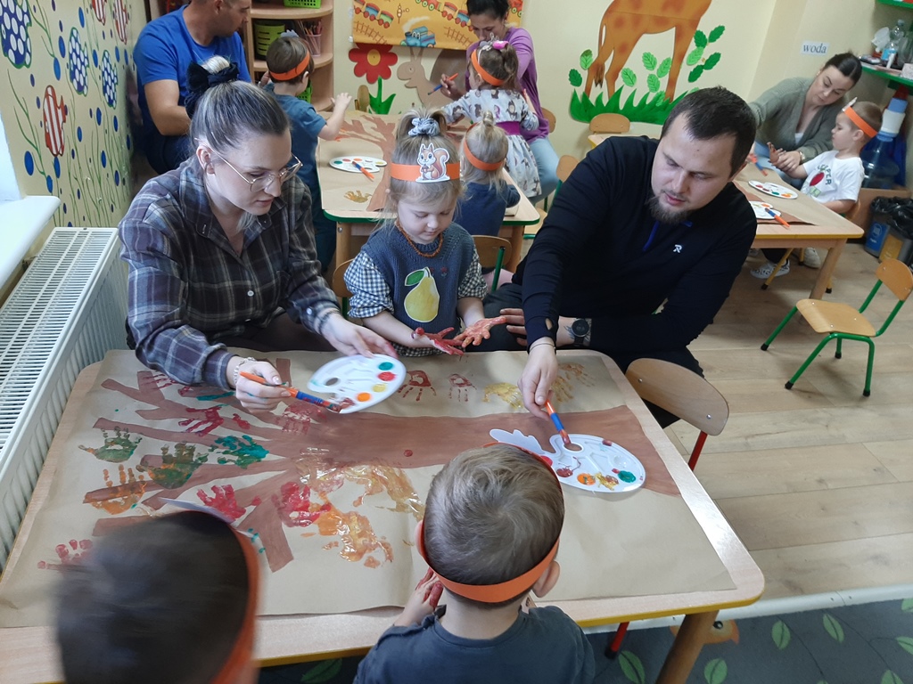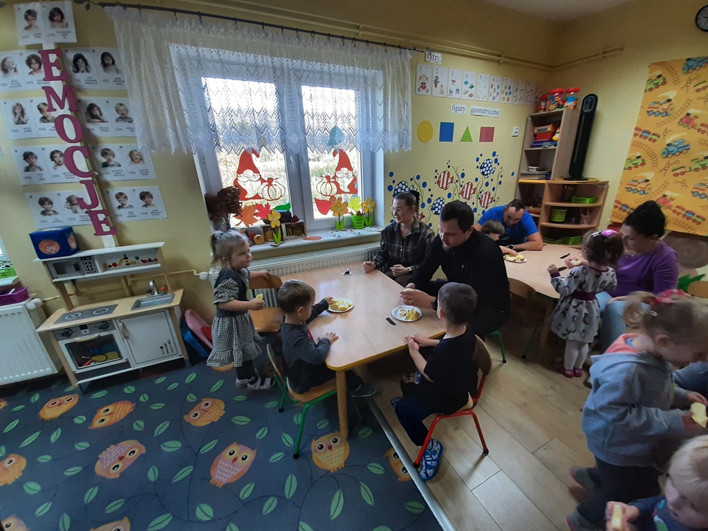 Spotkanie przebiegło w radosnej atmosferze. Rodzice z zaangażowaniem uczestniczyli w zabawach, a dzieci z dumą reprezentowały swoje umiejętności.