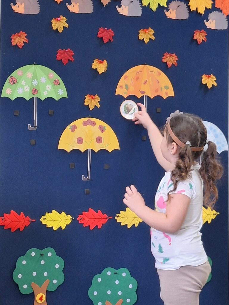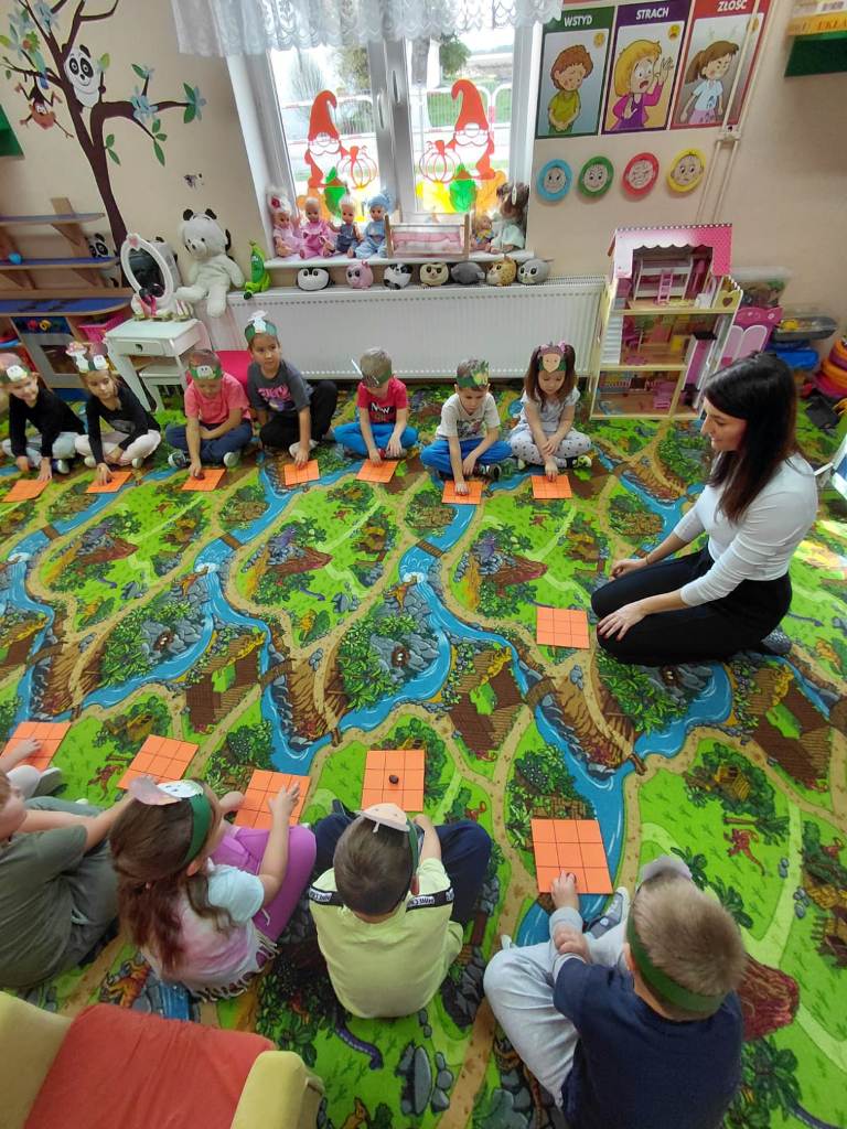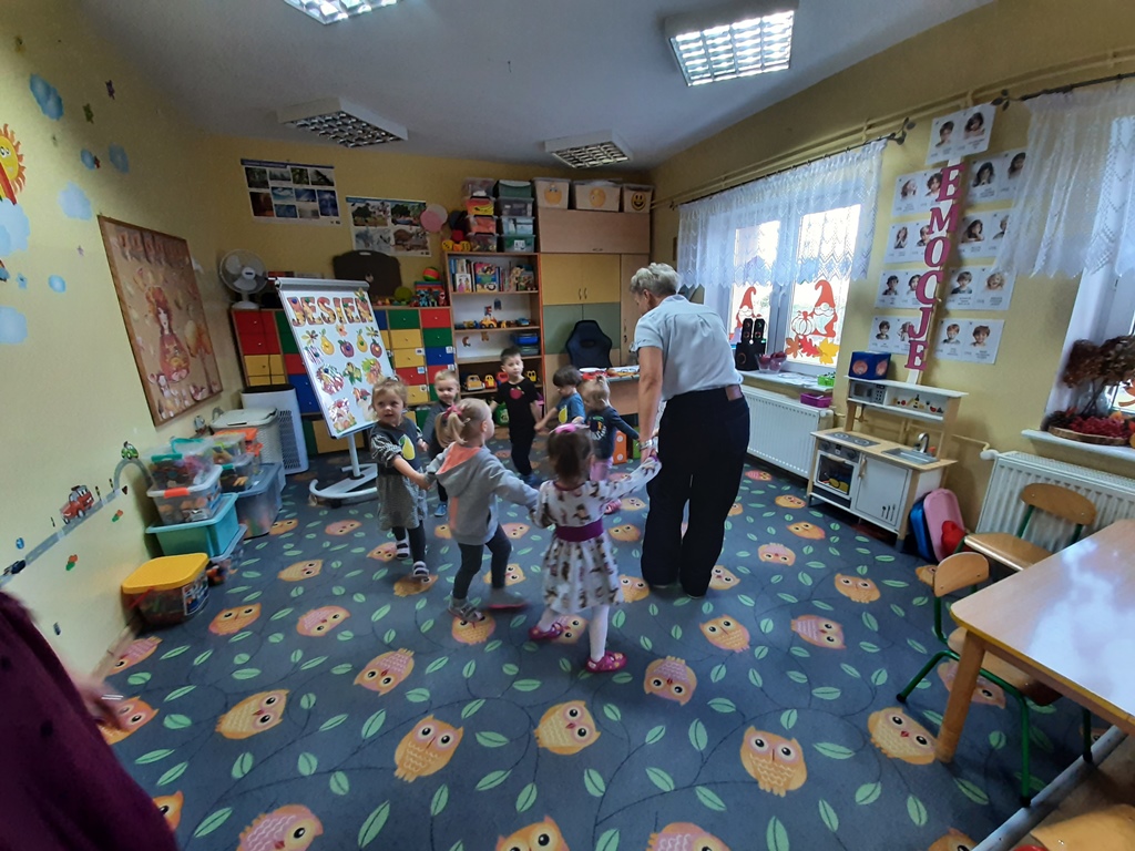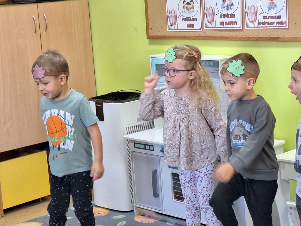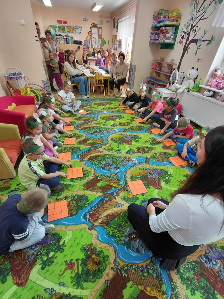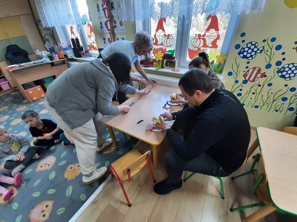 Jesień to pora roku pełna barw i inspiracji do różnorodnych zabaw i działań w przedszkolu. Tak też zorganizowane zajęcia otwarte dla rodziców odbyły się w jesiennej, ciepłej atmosferze. Celem spotkania było zaprezentowanie umiejętności dzieci zdobytych podczas realizacji tematyki jesiennej oraz wspólna zabawa integracyjna z rodzicami. Przedszkolaki omawiały zmiany zachodzące w przyrodzie, wymieniały dary jesieni, które wykorzystywane były do zabaw dydaktycznych, plastycznych i ruchowych. Zabawy te rozwijają u dzieci wyobraźnię, zdolności manualne oraz umiejętność współpracy w grupie.