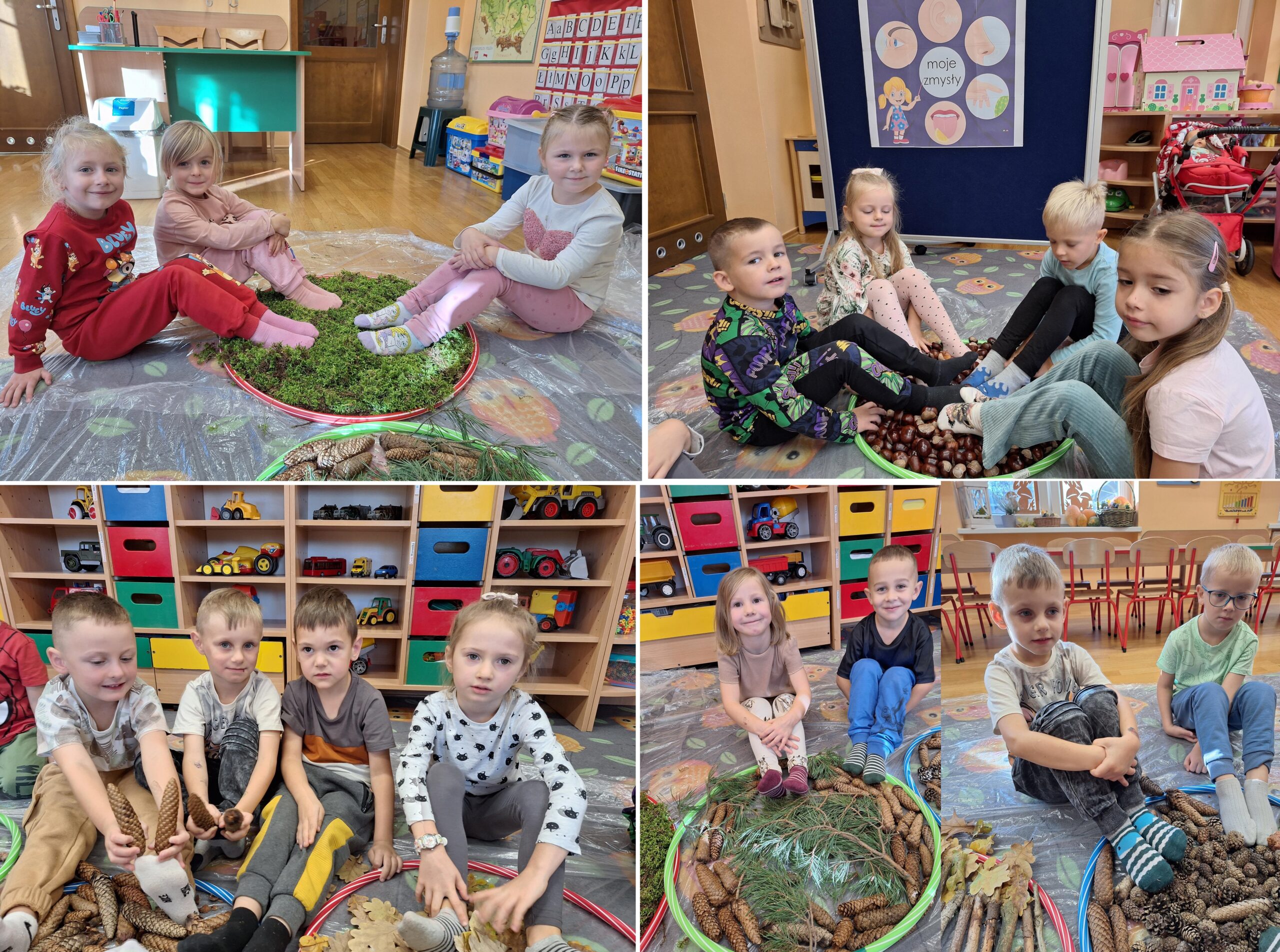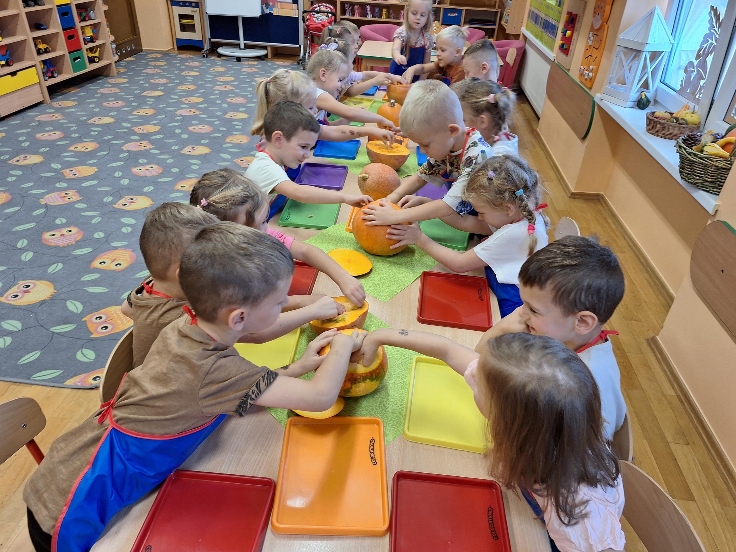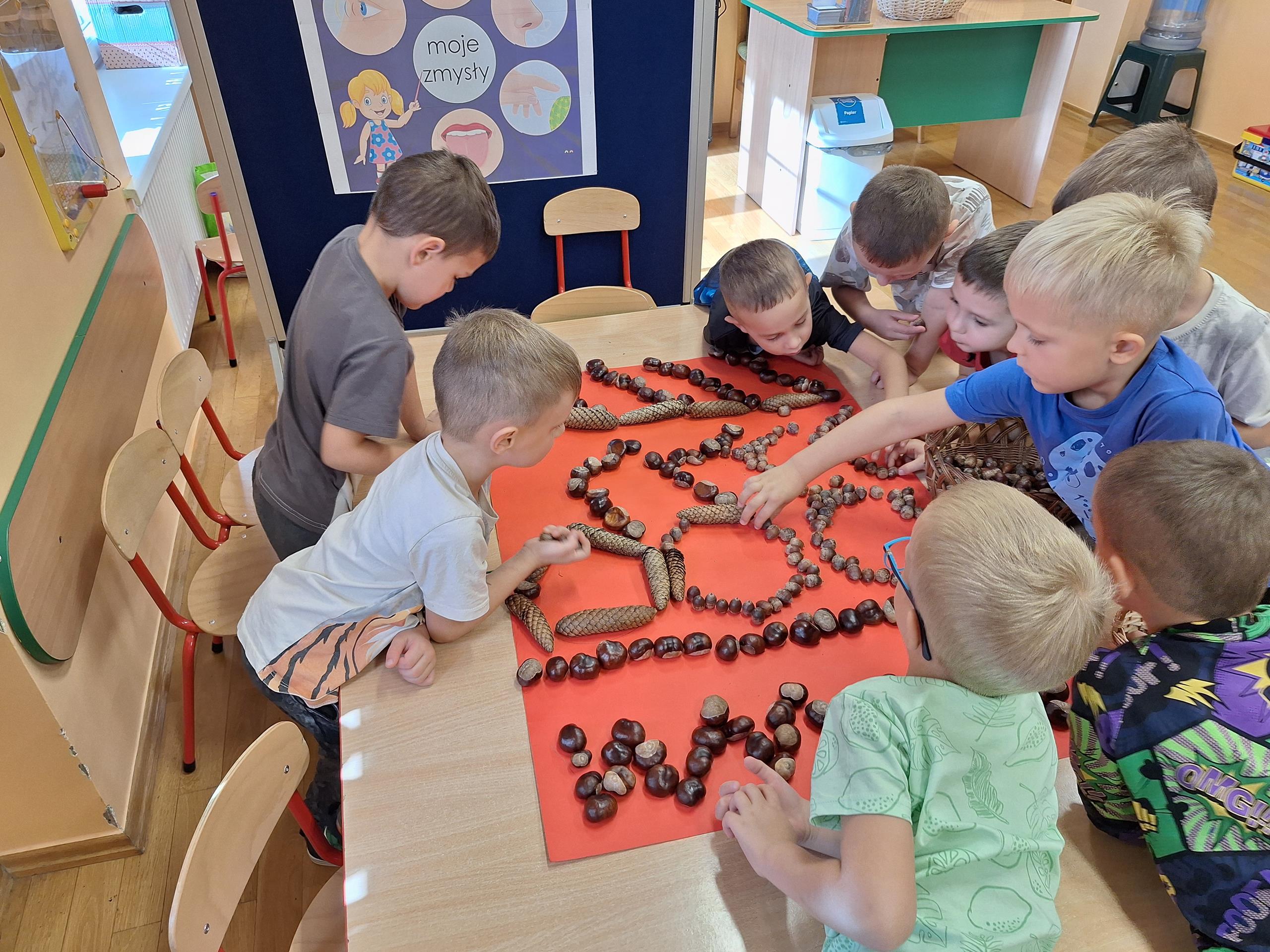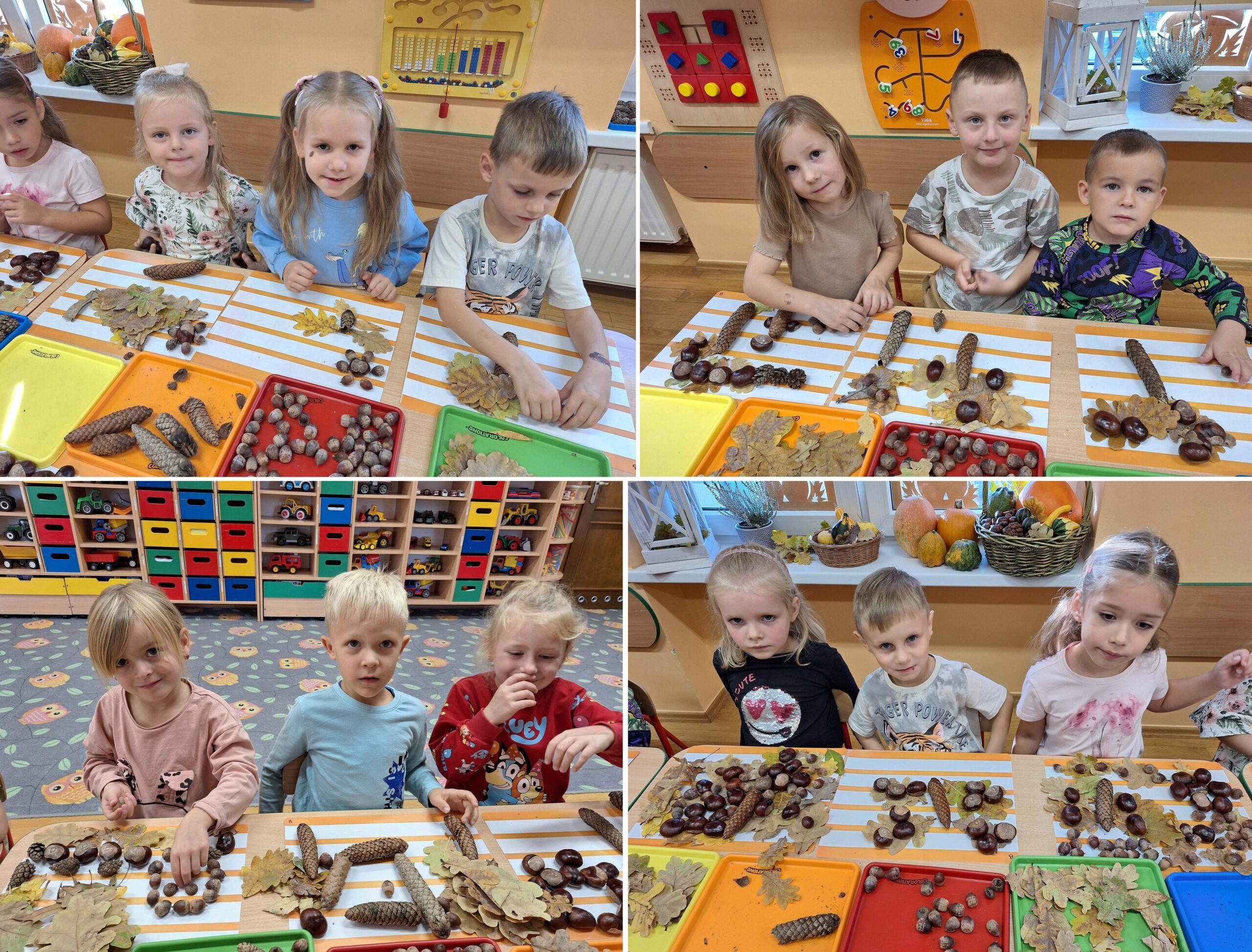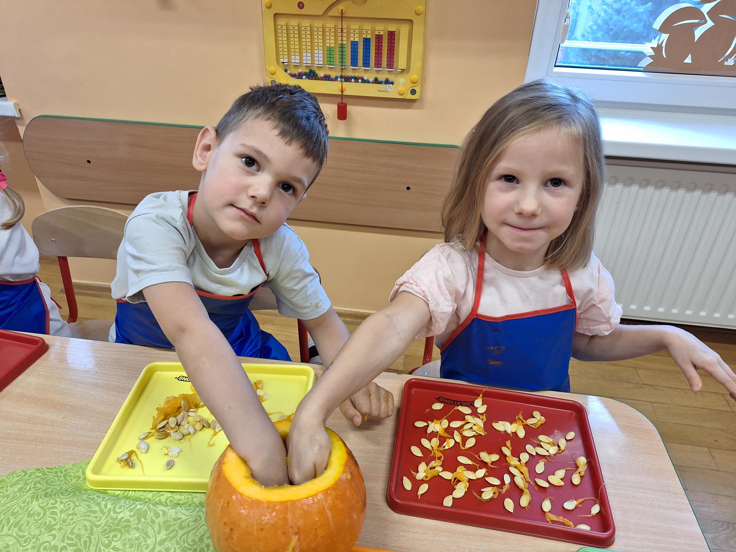 Jesień to czas, kiedy w zasięgu wzroku pojawiają się przeróżne dary natury. Kasztany, żołędzie, kolorowe liście czekają na nas na każdym kroku. Kontakt z materiałem przyrodniczym pełni niezwykle ważną rolę w wychowaniu dzieci. Jest on, bowiem źródłem pierwszych doświadczeń badawczych, przedmiotem zabaw i twórczych prac. Wykorzystując jesienne skarby Biedronki stworzyły m.in. jesienne obrazy, ścieżkę sensoryczną oraz układały wzory. Uśmiech na twarzach dzieci pojawił się także w czasie wyciągania pestek z dyni. Czekamy na kolejne zadania projektu.