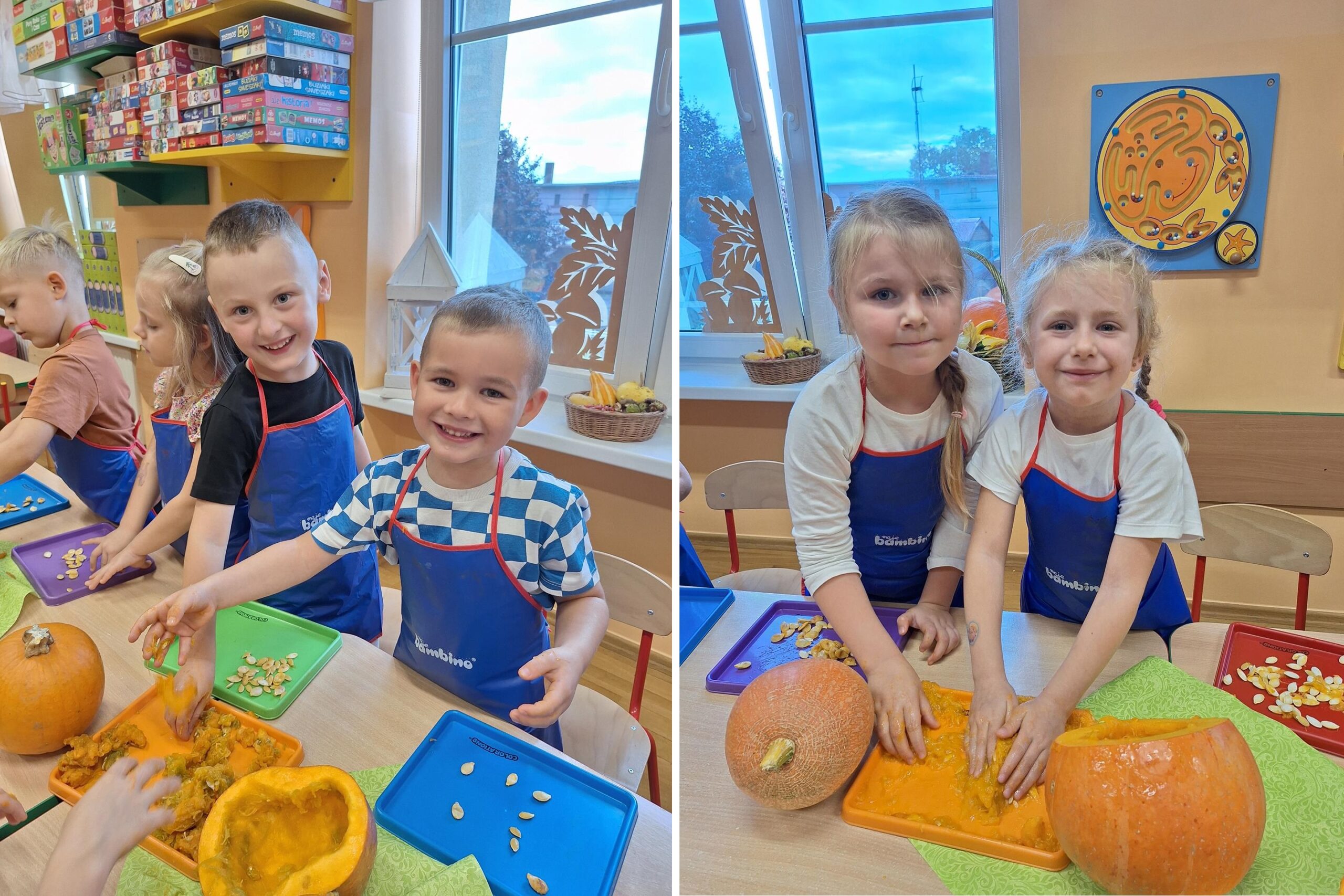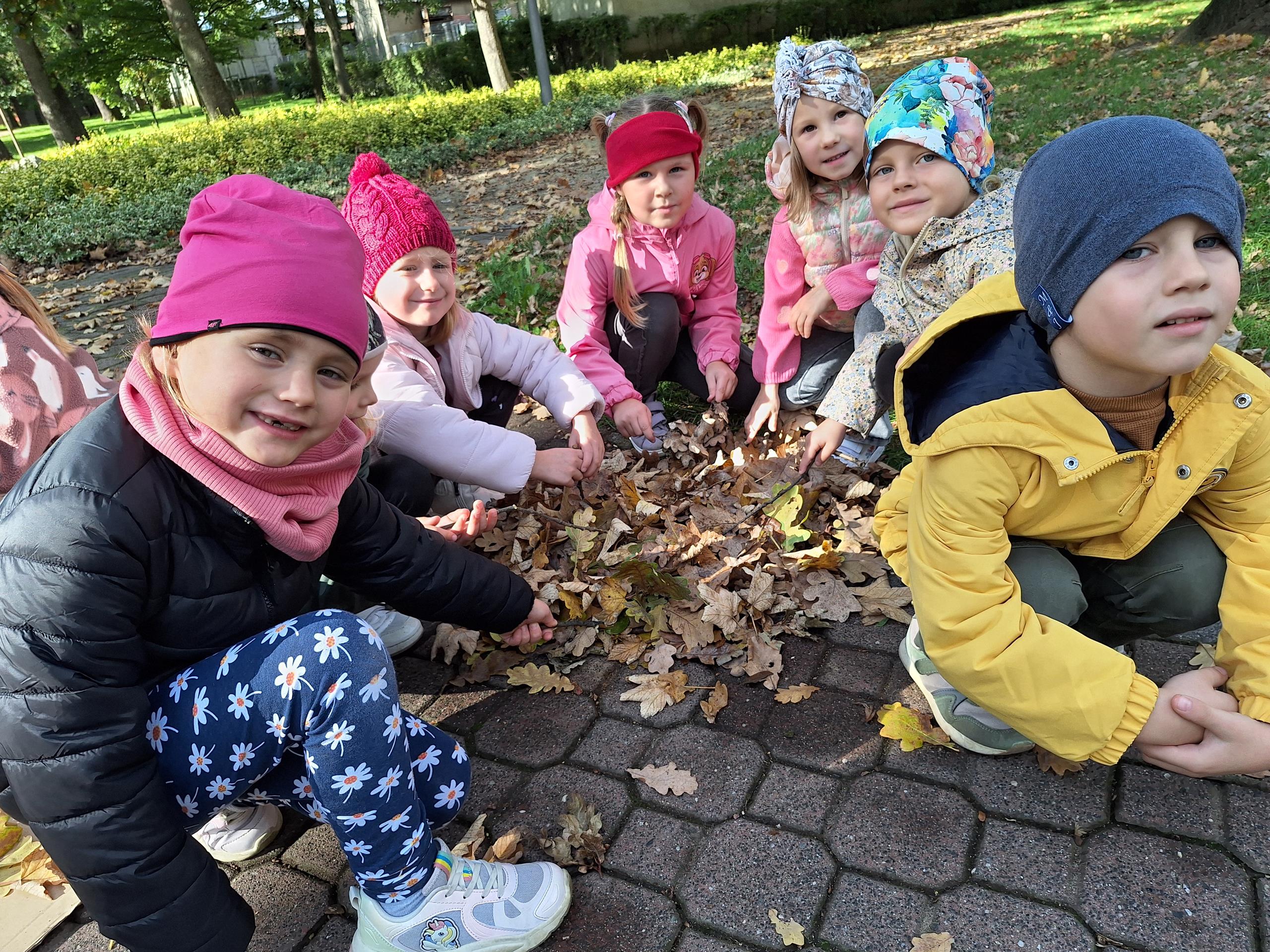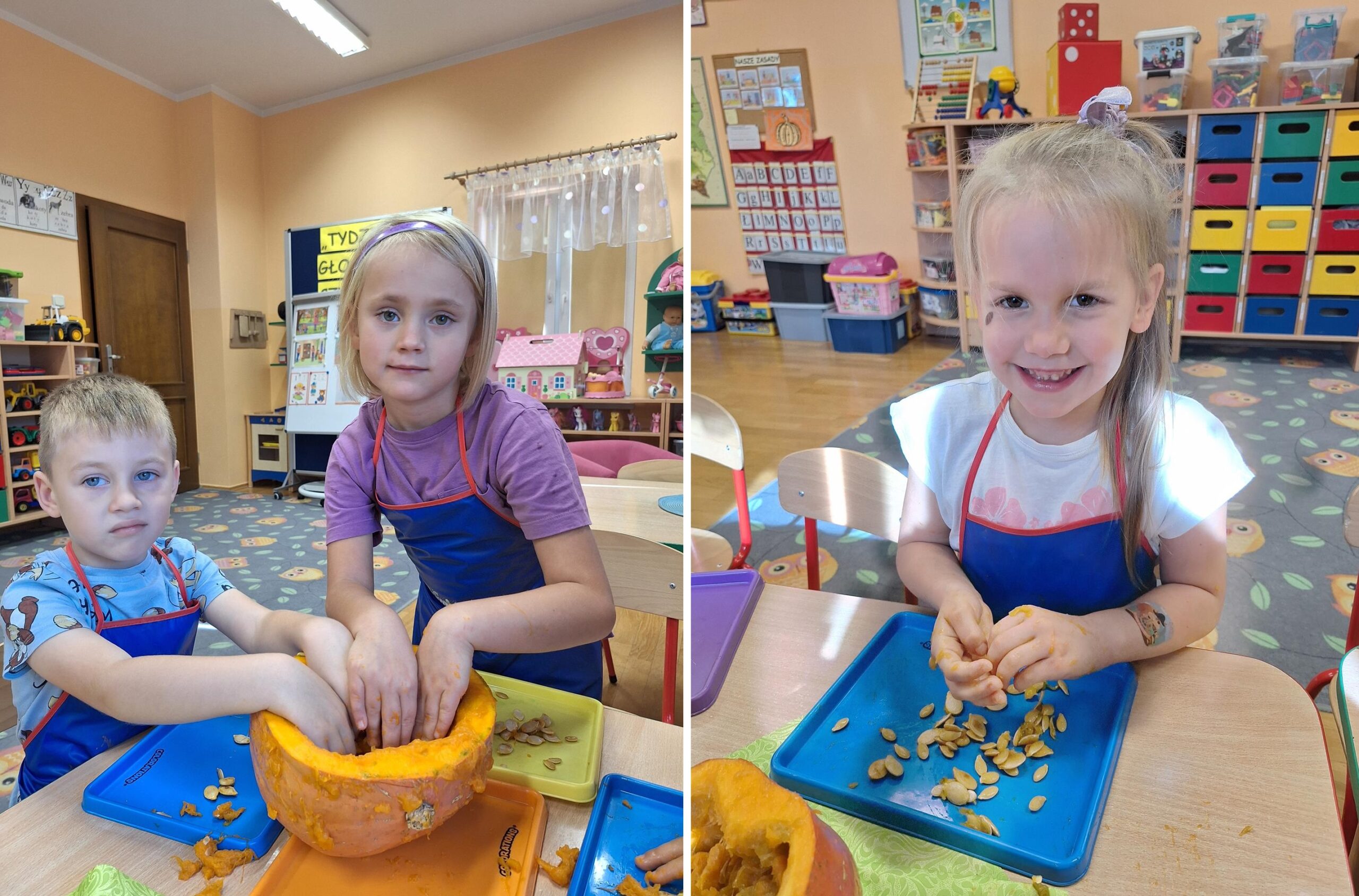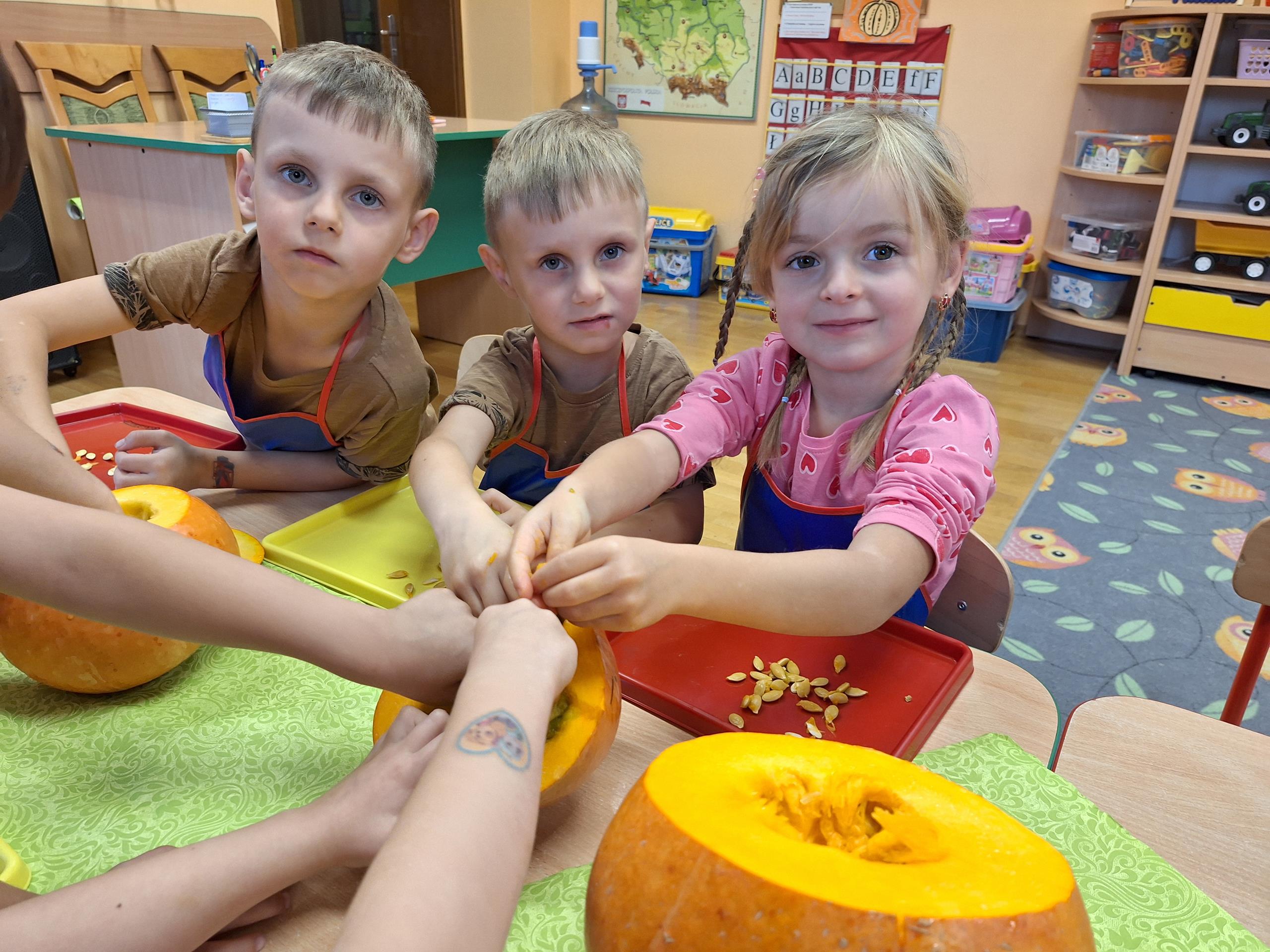 Jesień to czas, kiedy w zasięgu wzroku pojawiają się przeróżne dary natury. Kasztany, żołędzie, kolorowe liście czekają na nas na każdym kroku. Kontakt z materiałem przyrodniczym pełni niezwykle ważną rolę w wychowaniu dzieci. Jest on, bowiem źródłem pierwszych doświadczeń badawczych, przedmiotem zabaw i twórczych prac. Wykorzystując jesienne skarby Biedronki stworzyły m.in. jesienne obrazy, ścieżkę sensoryczną oraz układały wzory. Uśmiech na twarzach dzieci pojawił się także w czasie wyciągania pestek z dyni. Czekamy na kolejne zadania projektu.