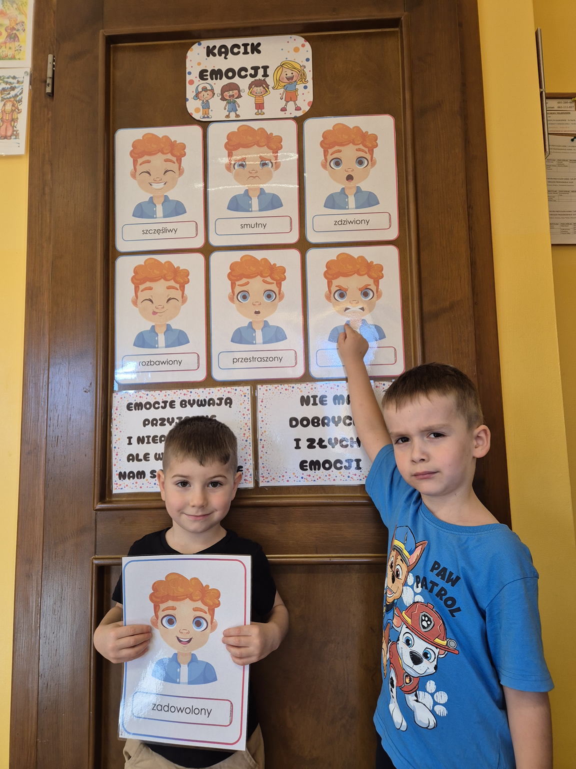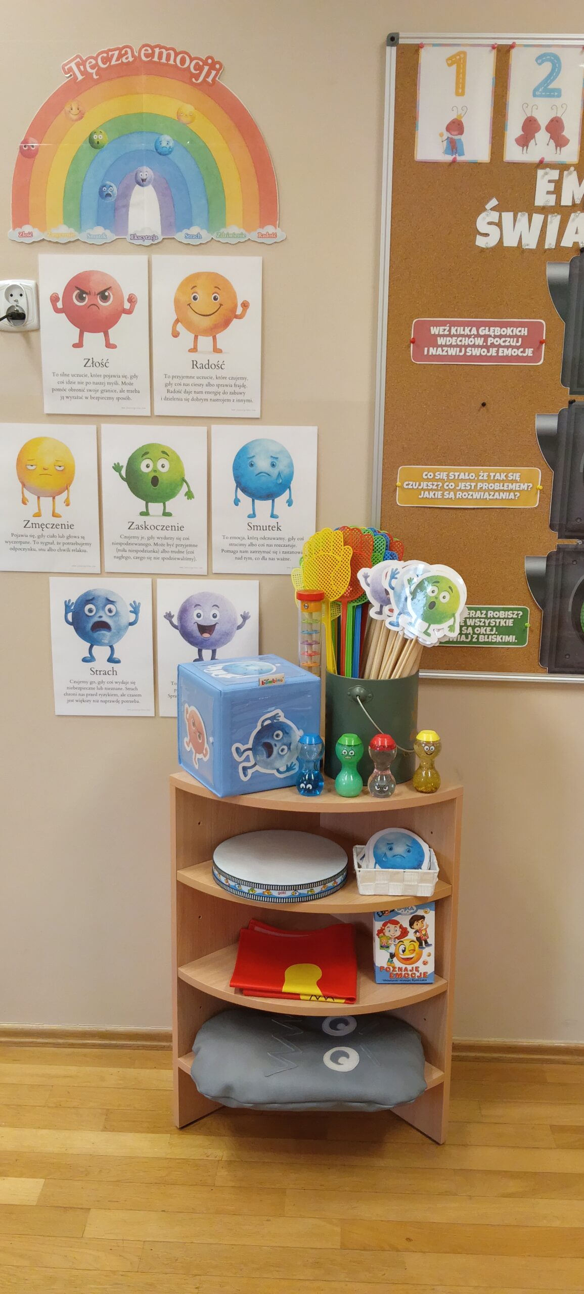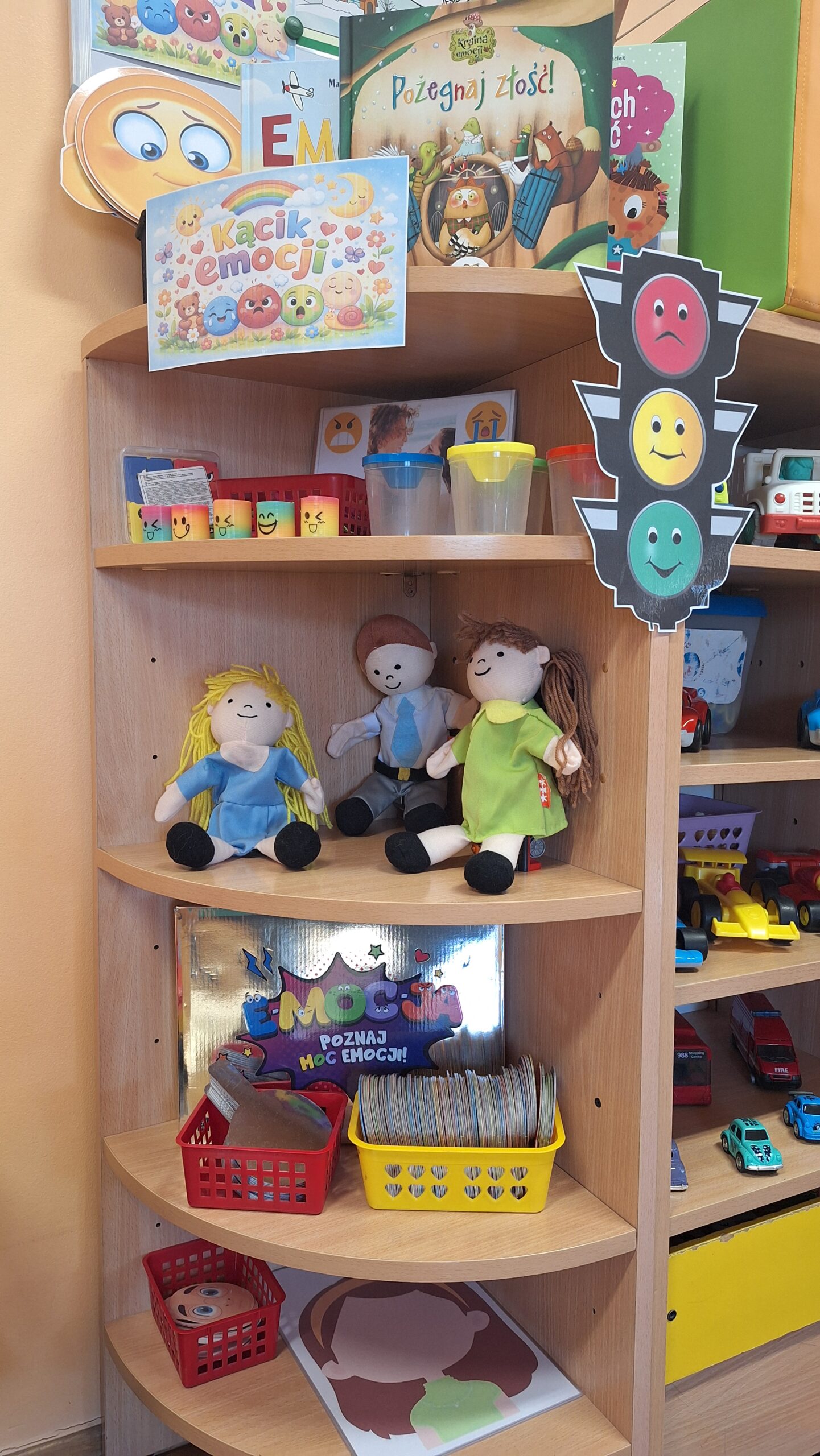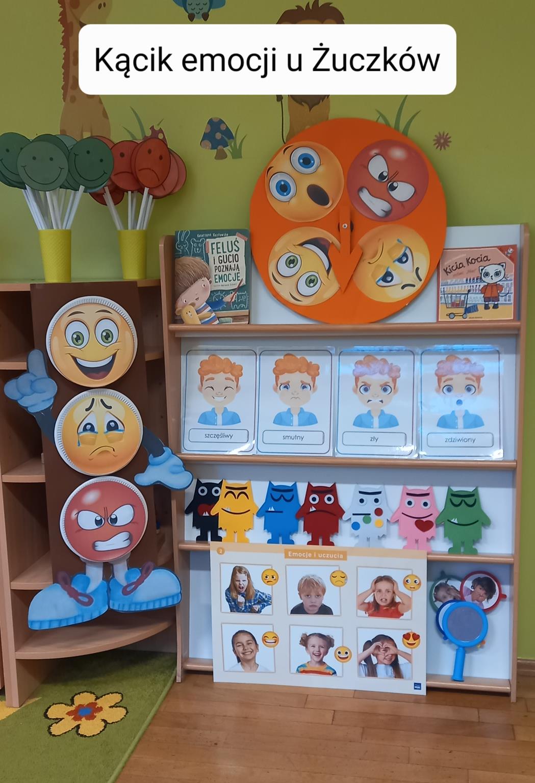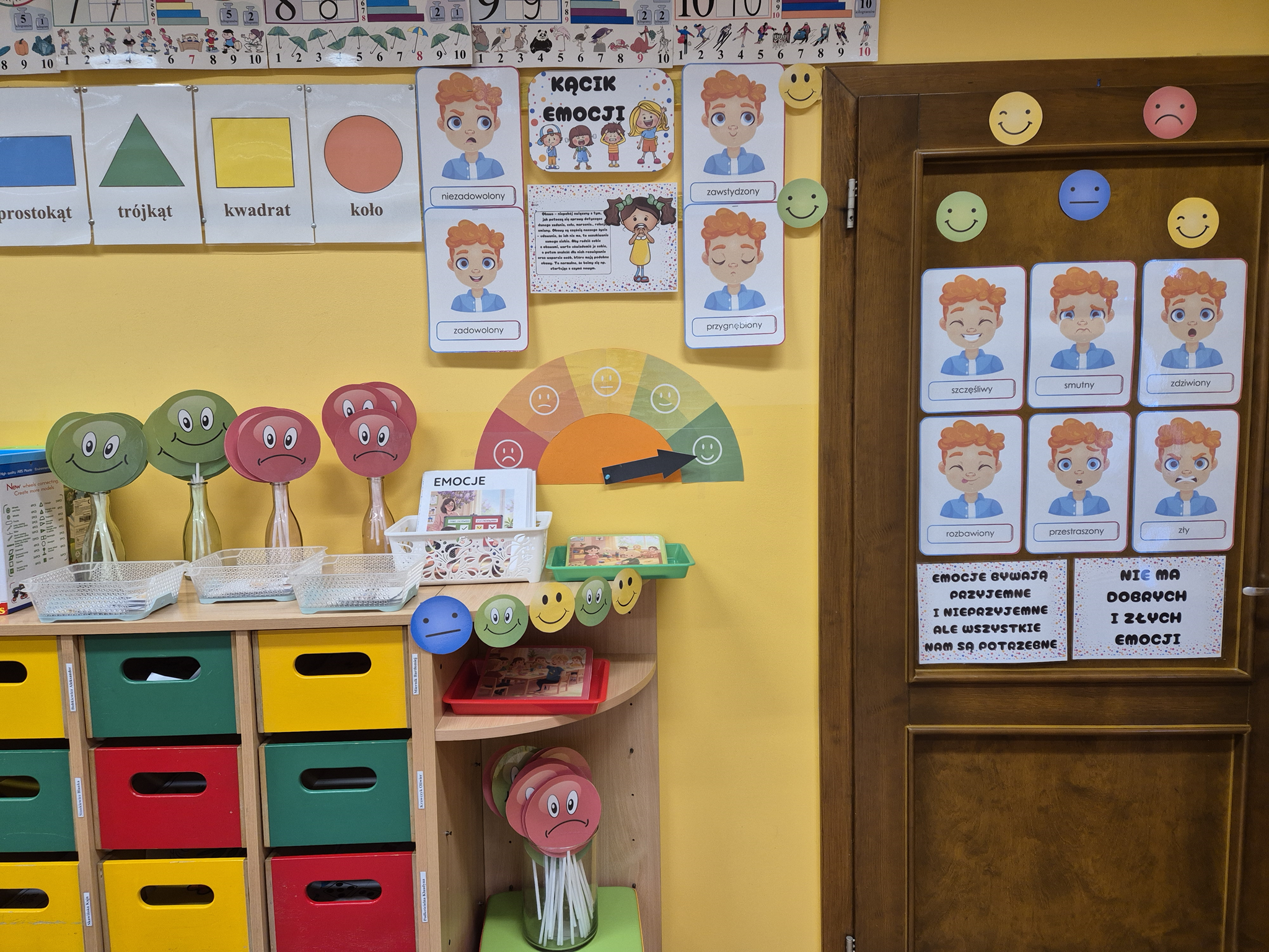 Każdego dnia przeżywamy wiele emocji – od radości i dumy po smutek czy złość. W przedszkolu uczymy się je rozpoznawać, nazywać i lepiej rozumieć. W ramach rocznego zadania „Rozwijanie u dzieci empatii i wrażliwości na potrzeby innych”, zostały stworzone w każdym oddziale przedszkolnym „Kąciki Emocji”, które pomagają dzieciom odkrywać świat uczuć – własnych i cudzych.„Kąciki emocji” pozwalają dzieciom w bezpieczny sposób rozładowywać negatywne emocje i wzmacniać pozytywne, ułatwiając tym samym kontakty z rówieśnikami i naukę współpracy. Dzieci, które mają zapewnioną możliwość bezpiecznego odreagowania emocji są spokojniejsze, pewniejsze siebie oraz bardziej empatyczne. Łatwiej im również akceptować i rozumieć emocje rówieśników oraz przewidywać konsekwencje swoich zachowań.