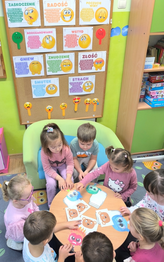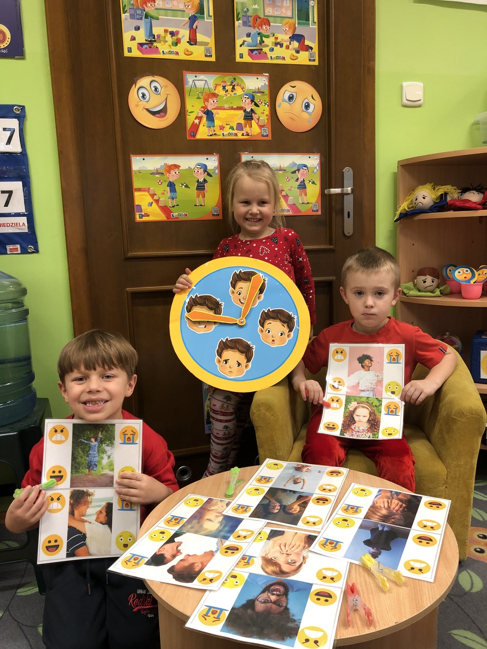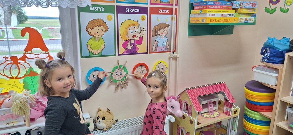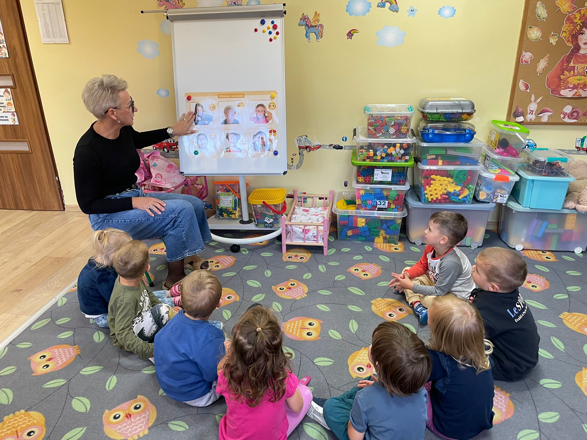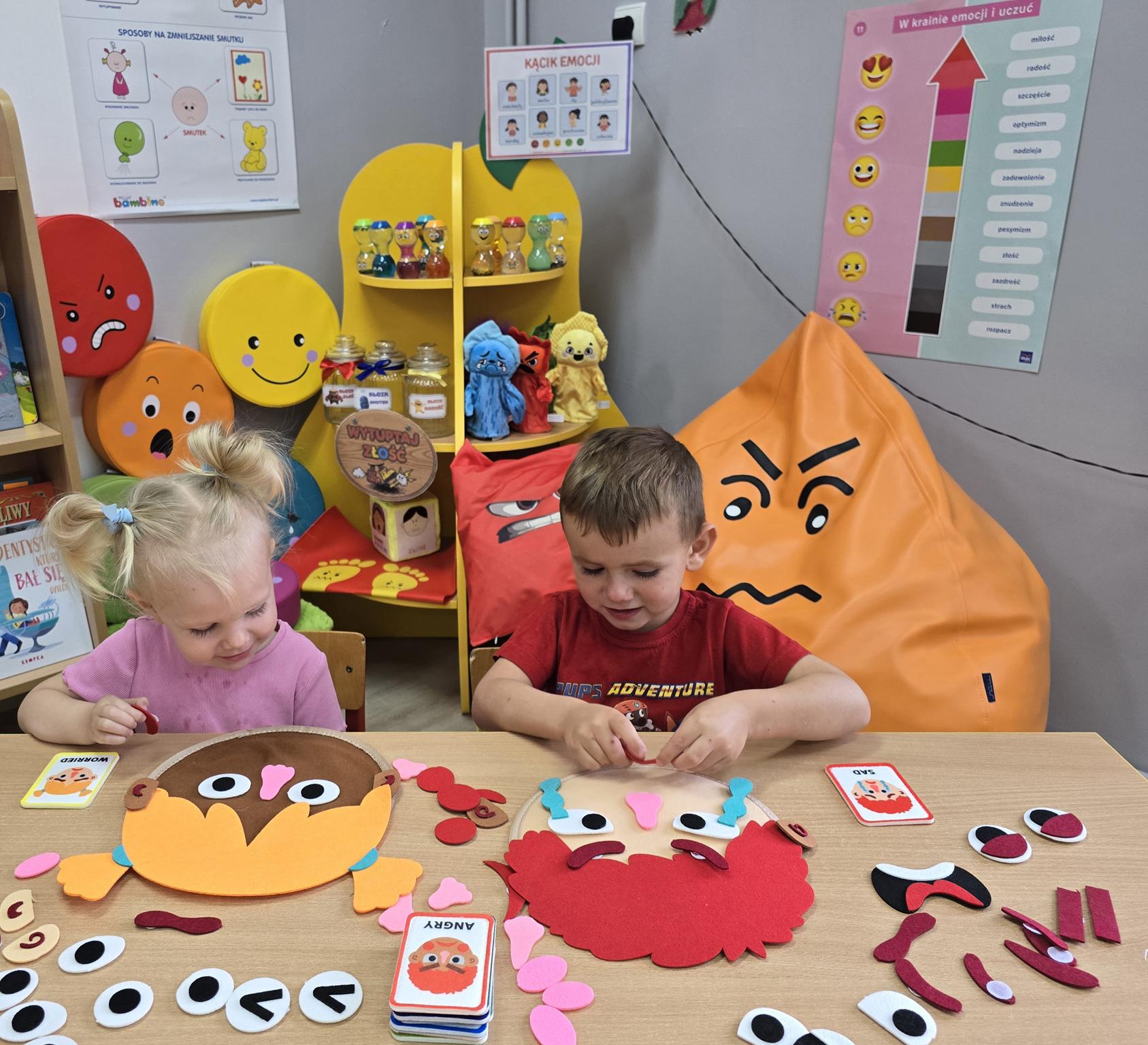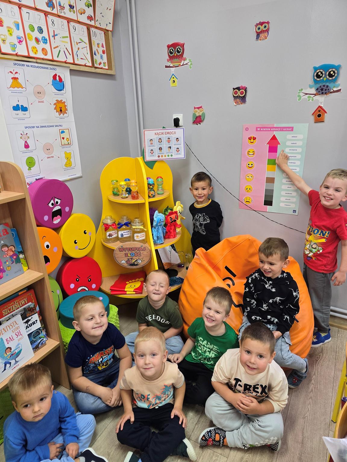 Każdego dnia przeżywamy wiele emocji – od radości i dumy po smutek czy złość. W przedszkolu uczymy się je rozpoznawać, nazywać i lepiej rozumieć. W ramach rocznego zadania „Rozwijanie u dzieci empatii i wrażliwości na potrzeby innych”, zostały stworzone w każdym oddziale przedszkolnym „Kąciki Emocji”, które pomagają dzieciom odkrywać świat uczuć – własnych i cudzych.„Kąciki emocji” pozwalają dzieciom w bezpieczny sposób rozładowywać negatywne emocje i wzmacniać pozytywne, ułatwiając tym samym kontakty z rówieśnikami i naukę współpracy. Dzieci, które mają zapewnioną możliwość bezpiecznego odreagowania emocji są spokojniejsze, pewniejsze siebie oraz bardziej empatyczne. Łatwiej im również akceptować i rozumieć emocje rówieśników oraz przewidywać konsekwencje swoich zachowań.