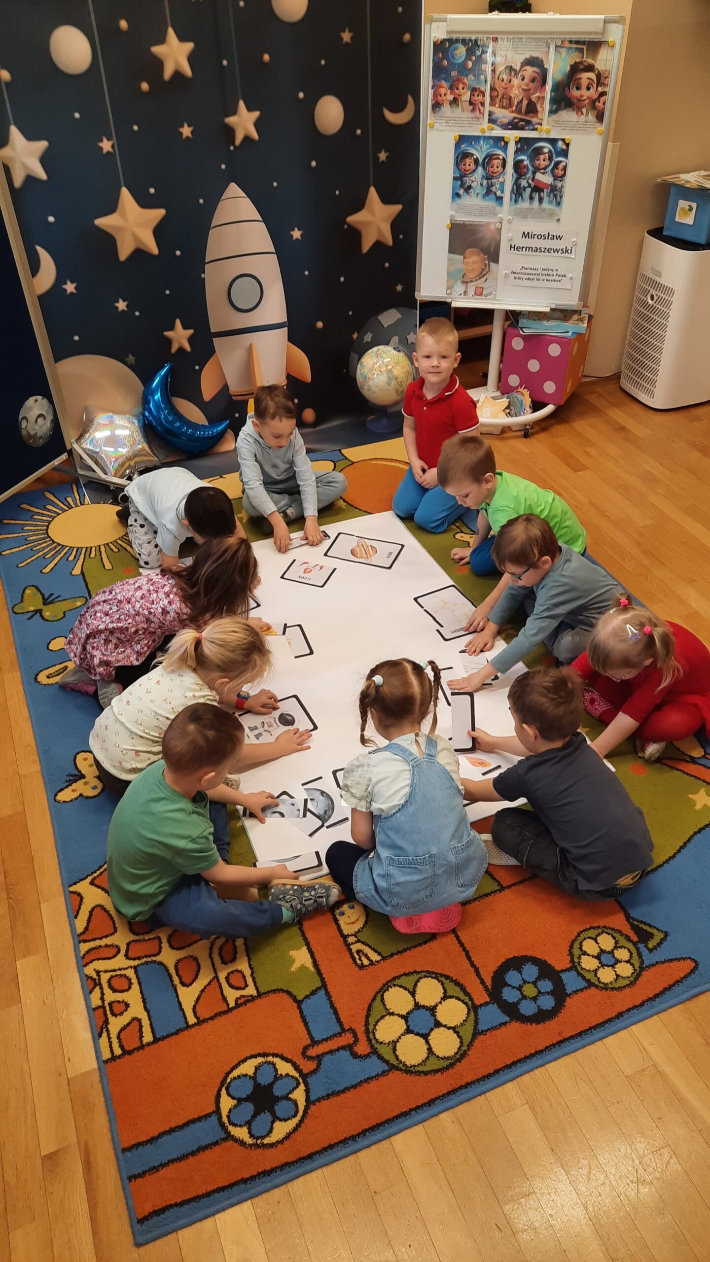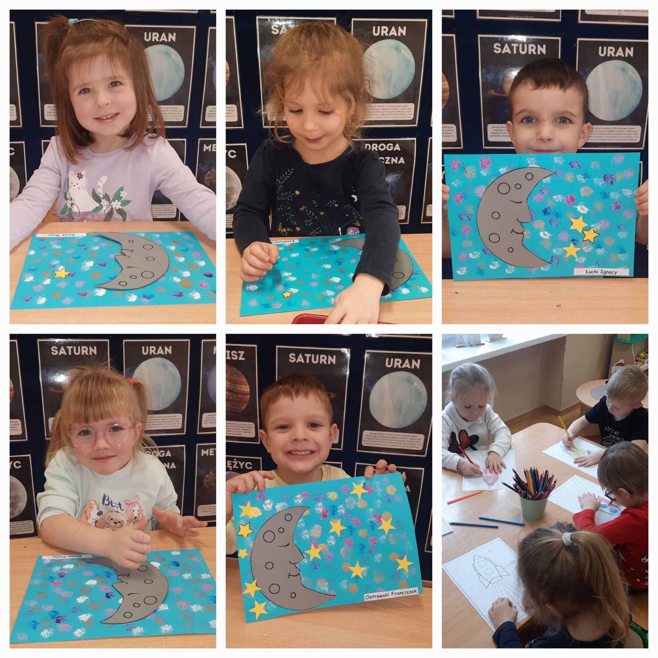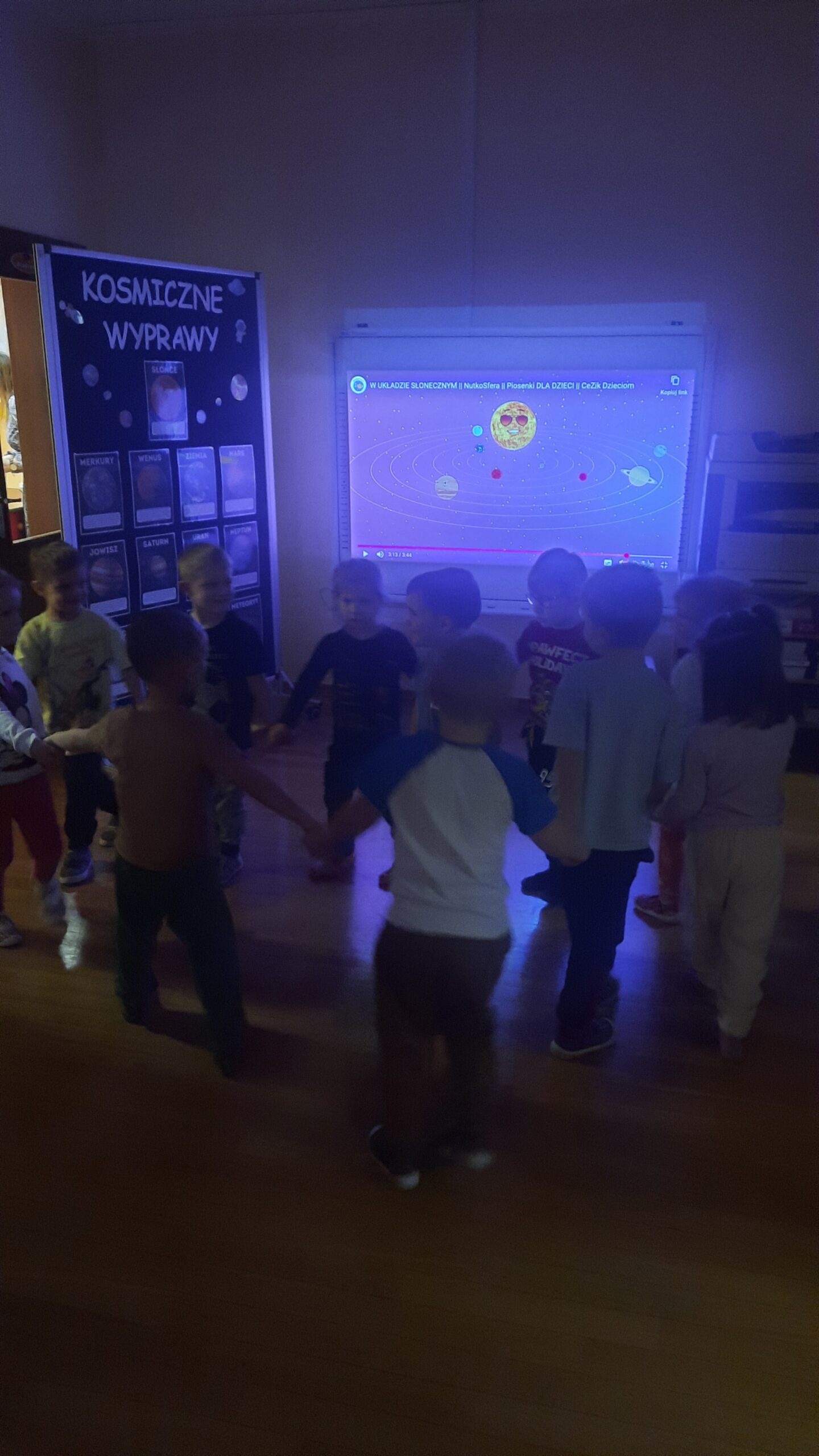 W tym tygodniu grupa „Mrówki” poznawała Kosmos. Zajęcia miały na celu rozbudzenie zainteresowań dzieci otaczającym nas Wszechświatem. W trakcie różnego rodzaju zabaw i zajęć przedszkolaki poznały planety Układu Słonecznego, poszerzyły słownik pojęciowy o wyrazy związane z Kosmosem i Układem Słonecznym. A także wybrały się w podróż w przestworza rakietą kosmiczną.