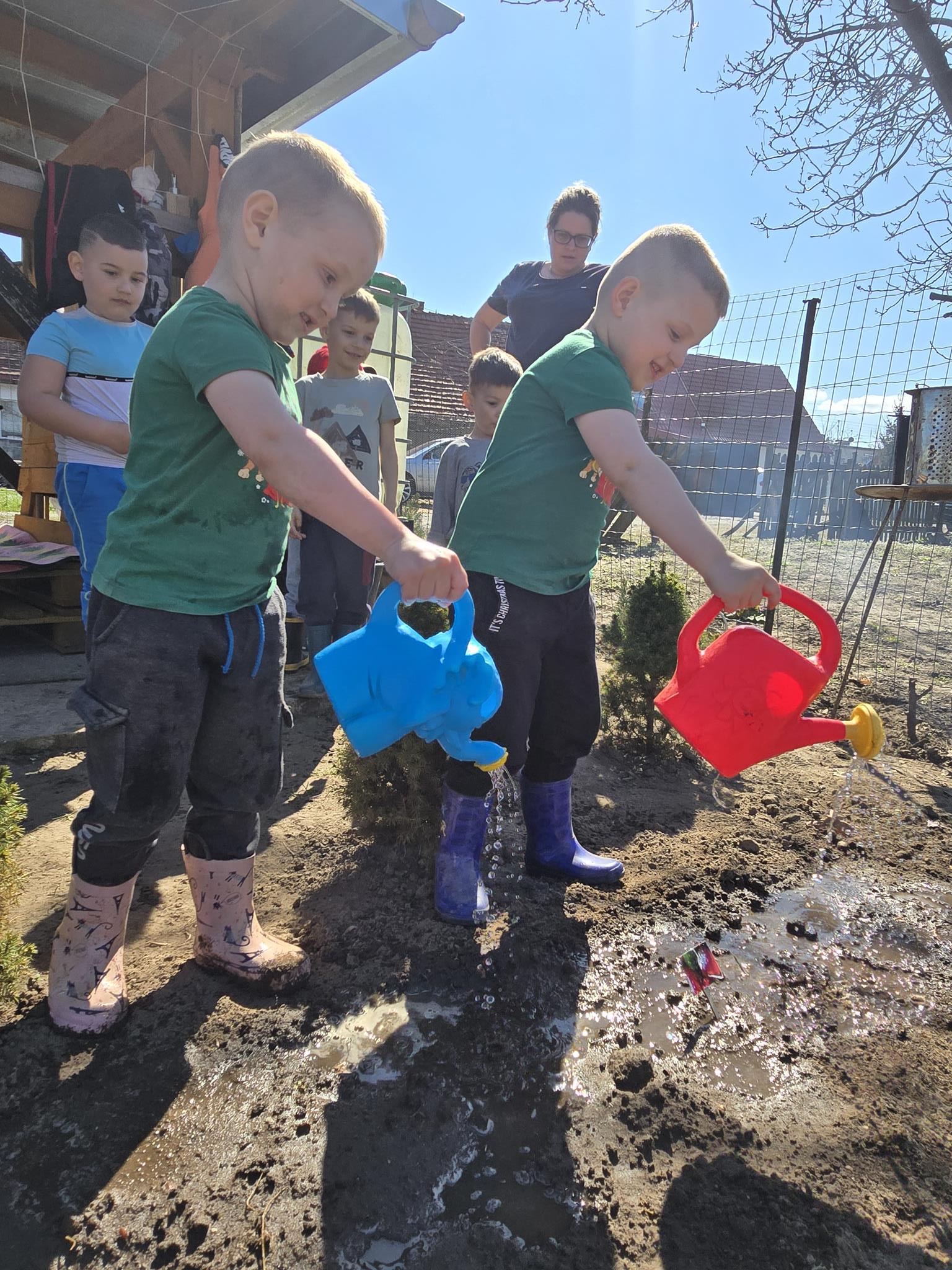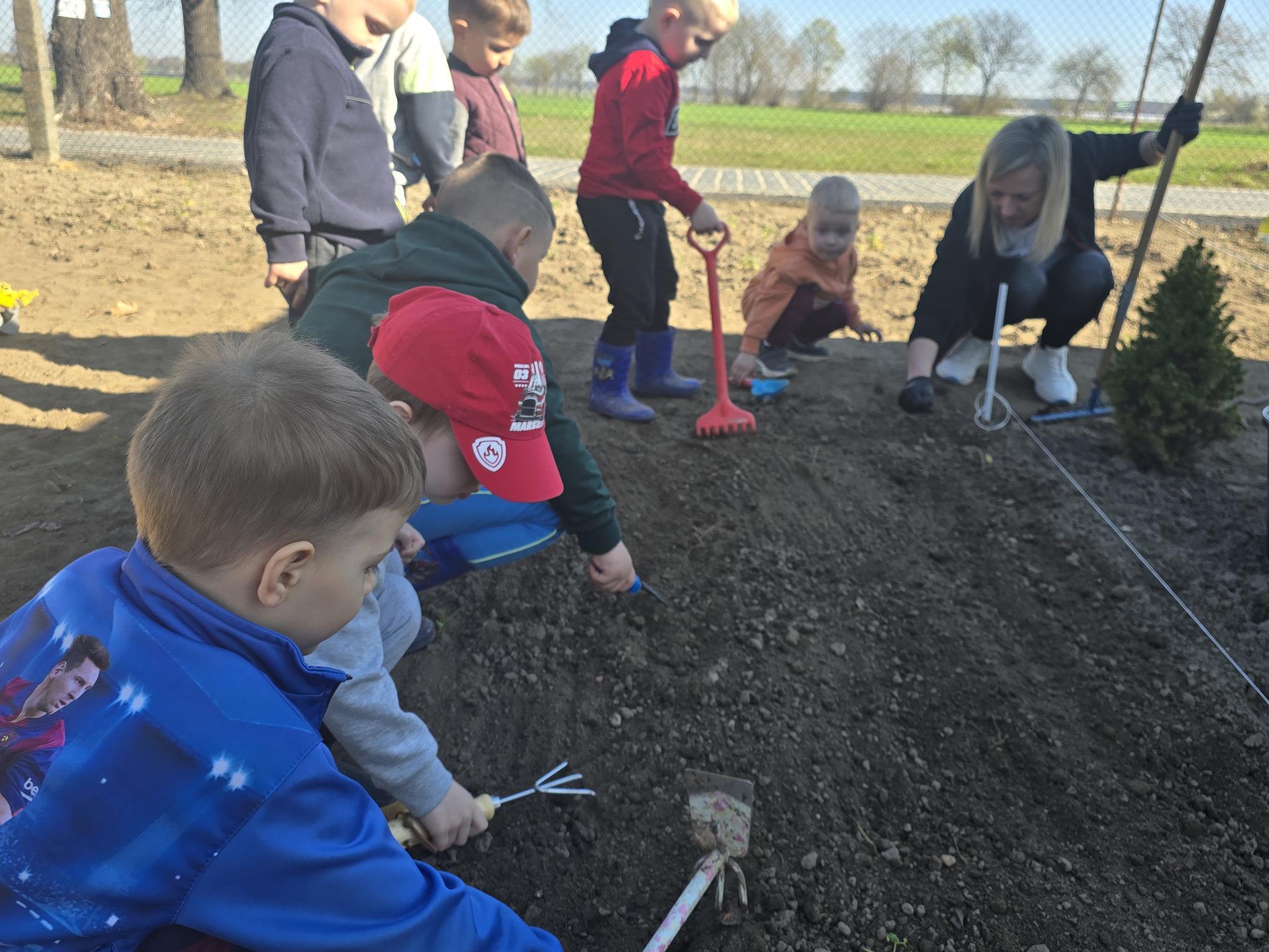 Przedszkolaki z Oddziału „Krasnoludki” zamieniły się w prawdziwych ogrodników. W ogródku przydomowym Pani Sandry i Wiesława Krawczyków dzieci posadziły cebulę, rzodkiewkę, koper, marchewkę, pietruszkę, sałatę i kwiaty, a na koniec ciężkiej, ale przyjemnej pracy odbyło się wspólne ognisko. Przedszkolaki dowiedziały się, co jest potrzebne do wzrostu roślin i w jaki sposób należy o nie dbać. Serdecznie dziękujemy Pani Sandrze i Panu Wiesławowi za gościnę i udostępnienie swojego ogródka oraz za wspaniałą atmosferę.