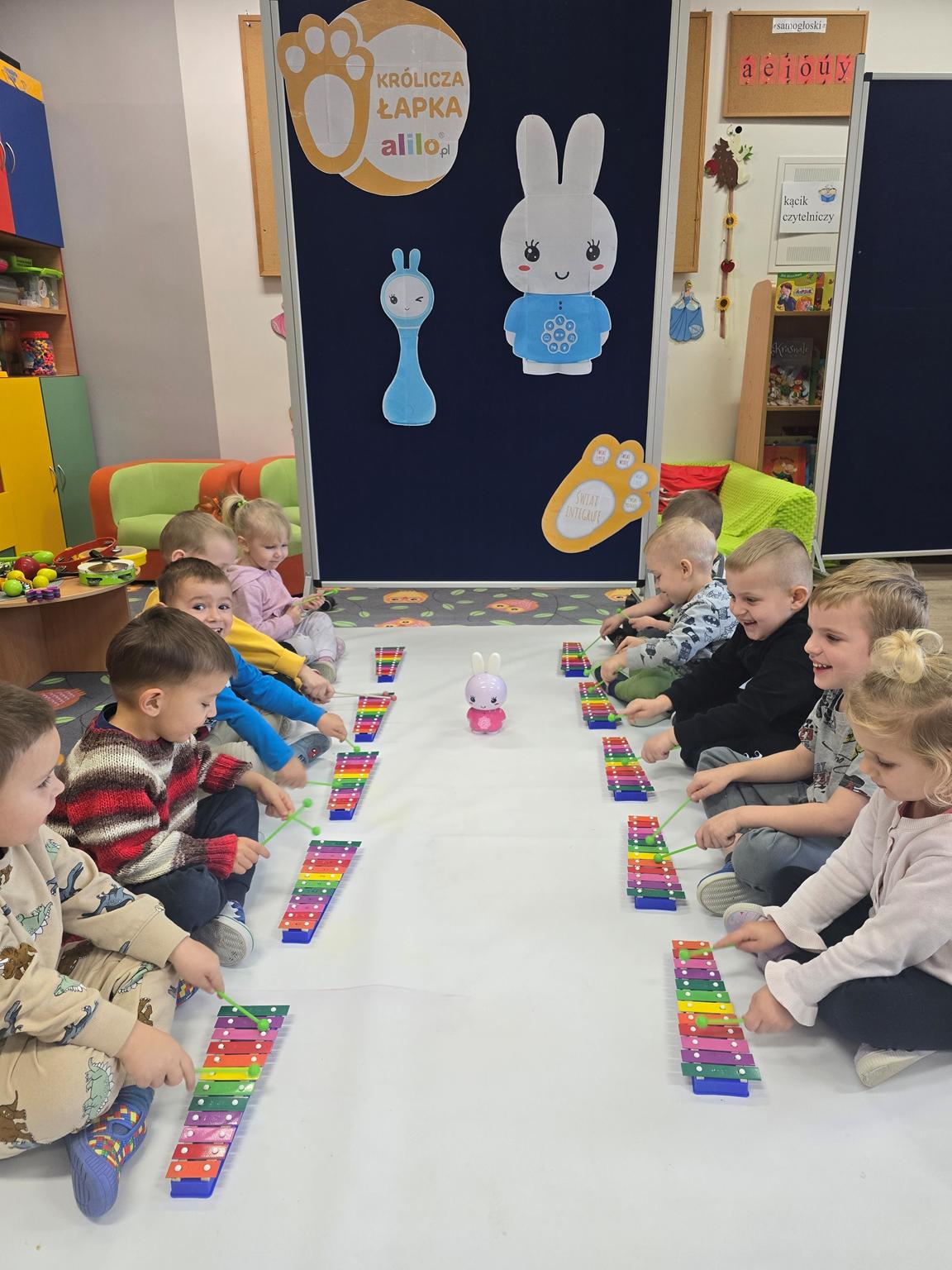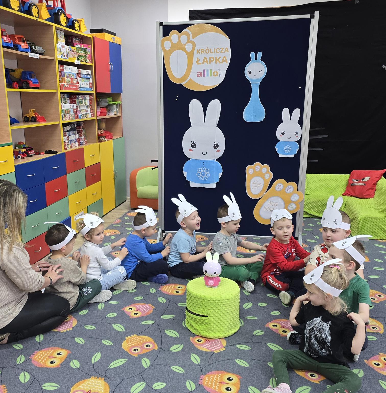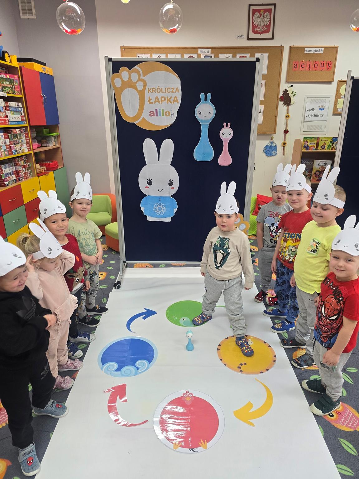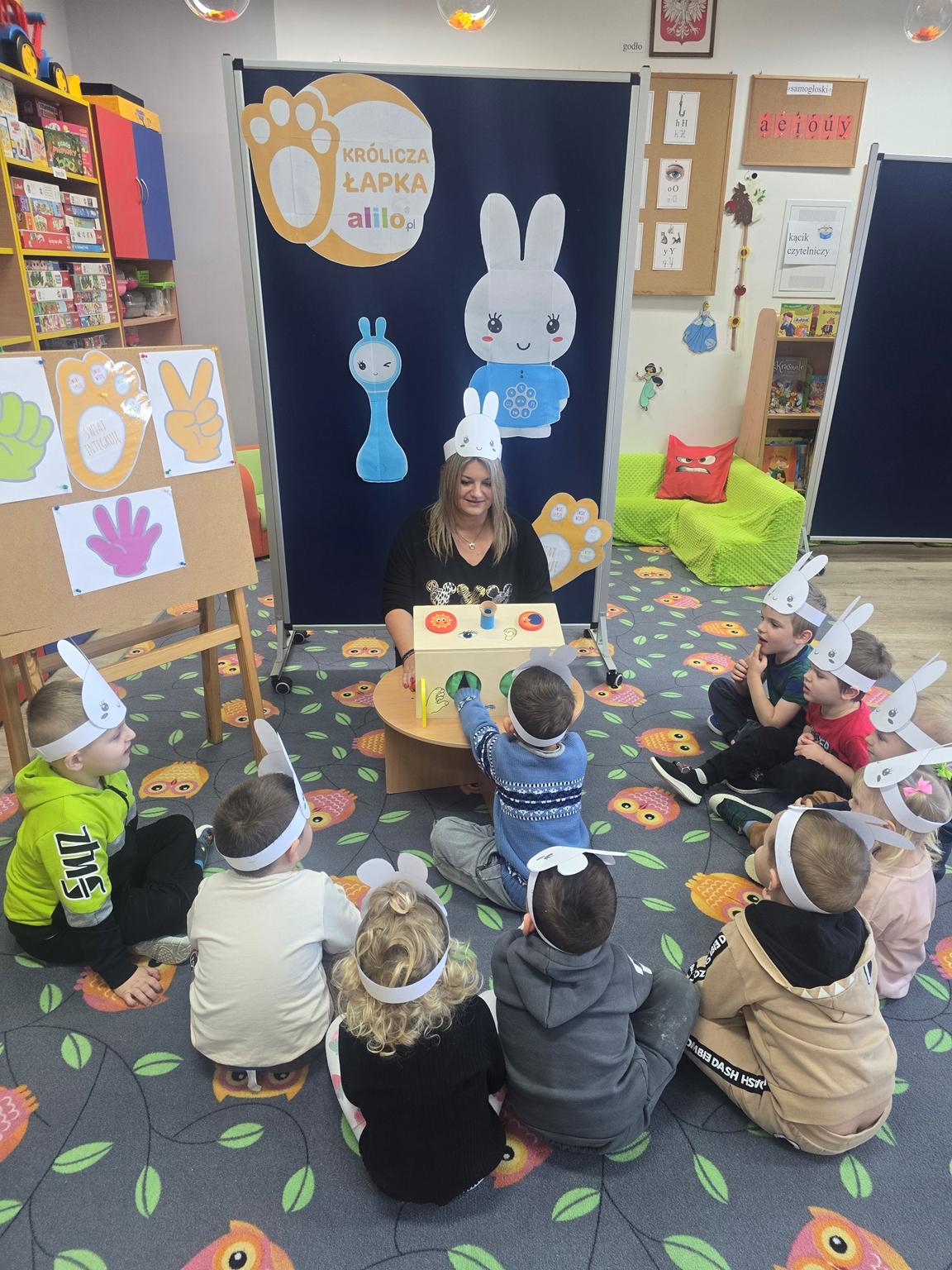 W roku szkolnym 2025/2026 w naszym przedszkolu dzieci z oddziału „Krasnoludki” realizowały III edycję programu edukacyjnego Alilo „Królicza Łapka”, który wspiera dzieci w odkrywaniu świata poprzez zabawę, ruch i wielozmysłowe doświadczenia. Celem głównym programu było wspieranie rozwoju dziecka poprzez wzmacnianie samodzielności, aktywności poznawczej oraz poczucia sprawczości, a także tworzenie bezpiecznych, angażujących sytuacji edukacyjnych.