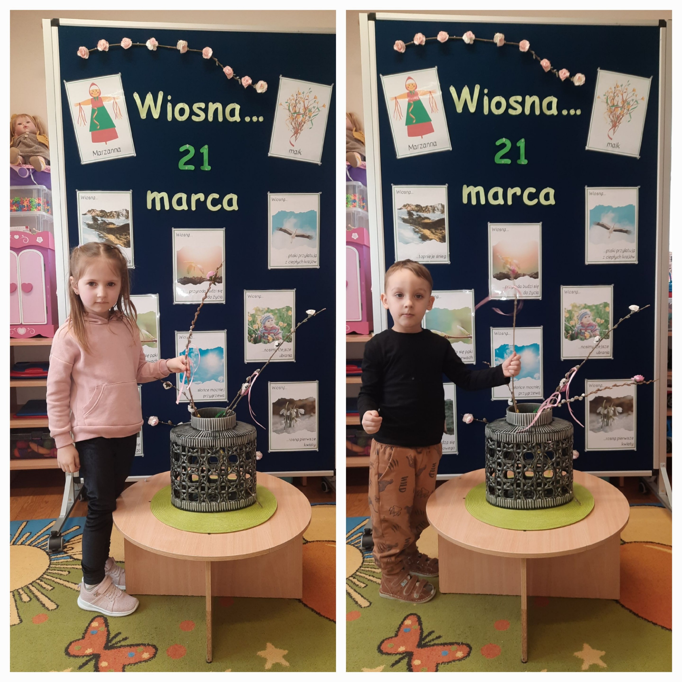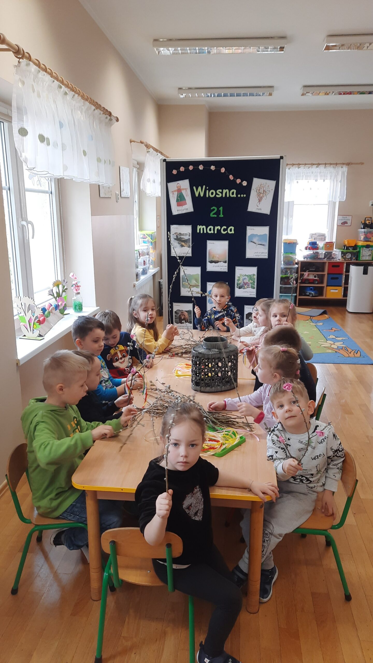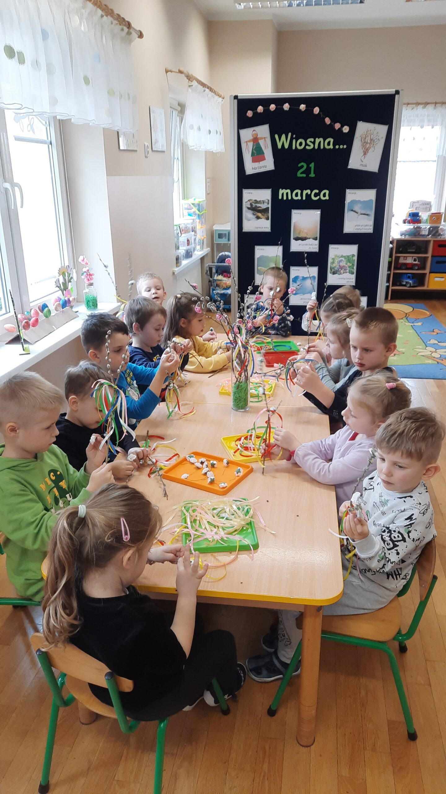 Słowianie lubili imprezy i radosne obrzędy, a koniec zimy był doskonałym powodem, by je organizować. Aby przepędzić zimę robiono kukłę ze słomy, ozdabiano ją i obchodzono wieś, następnie wrzucano ją do rzeki. Drugim wczesnowiosennym obrzędem było chodzenie z Gaikiem – Maikiem. Tak jak Marzanna zimę pożegnała, tak Gaik witał wyczekiwaną wiosnę. Na dzisiejszych zajęciach przedszkolaki z grupy „Mrówek” z wielkim zaangażowaniem wykonały Gaiki – Maiki. Stroiły gałązki wierzby kwiatkami i kolorowymi wstążkami, które zabiorą na pochód z okazji witania wiosny. Powstał również Gaikowa kompozycja, która ozdabia hol przedszkola.