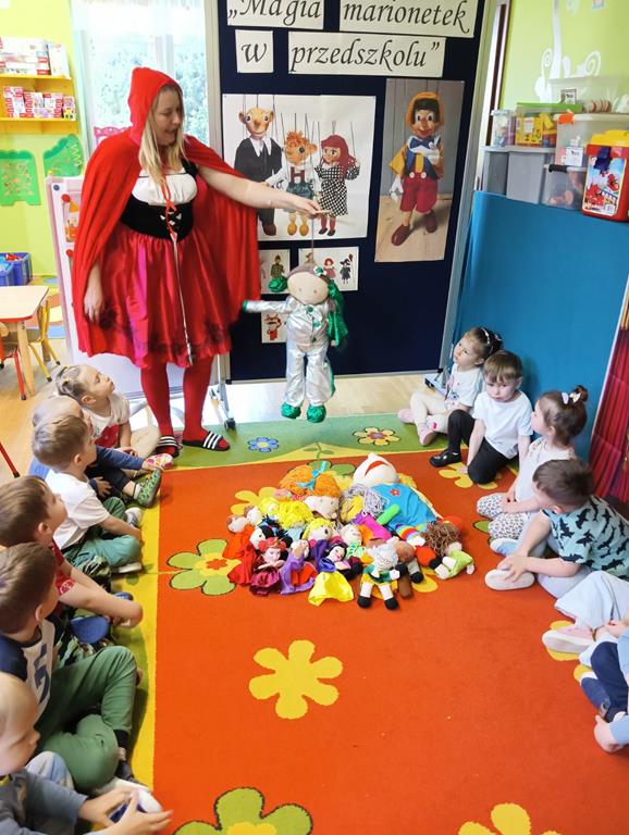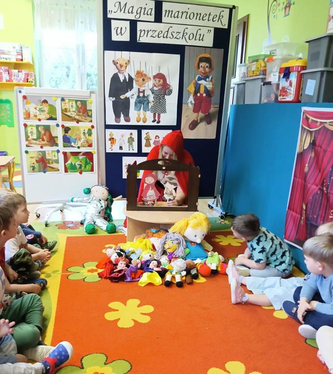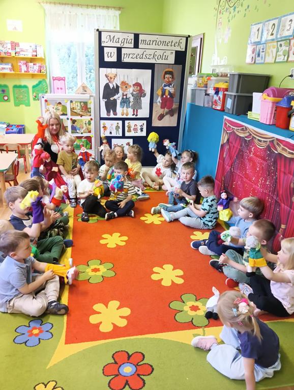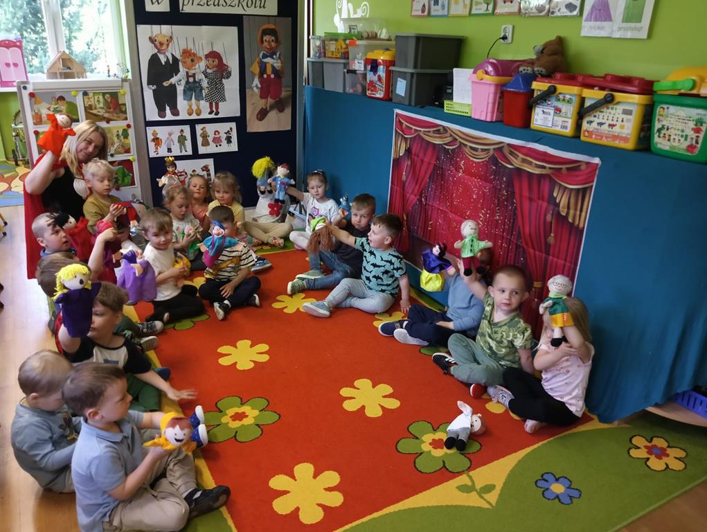 W naszym przedszkolu przedszkolaki z oddziału „Żuczki” miały okazję przenieść się do świata teatru lalek. Zajęcia te umożliwiły najmłodszym rozwijać wyobraźnię, kreatywność oraz umiejętności językowe poprzez zabawę i twórcze działanie. Dzieci poznawały różne rodzaje lalek teatralnych- marionetki, pacynki, kukiełki. Zajęcia sprzyjały rozwijaniu ekspresji współpracy w grupie. To była prawdziwa podróż do krainy teatru.