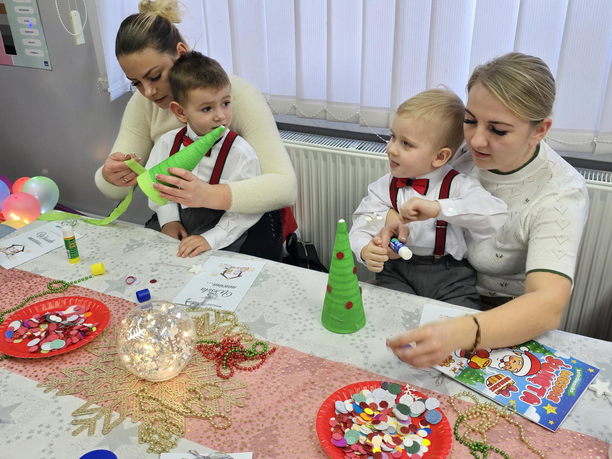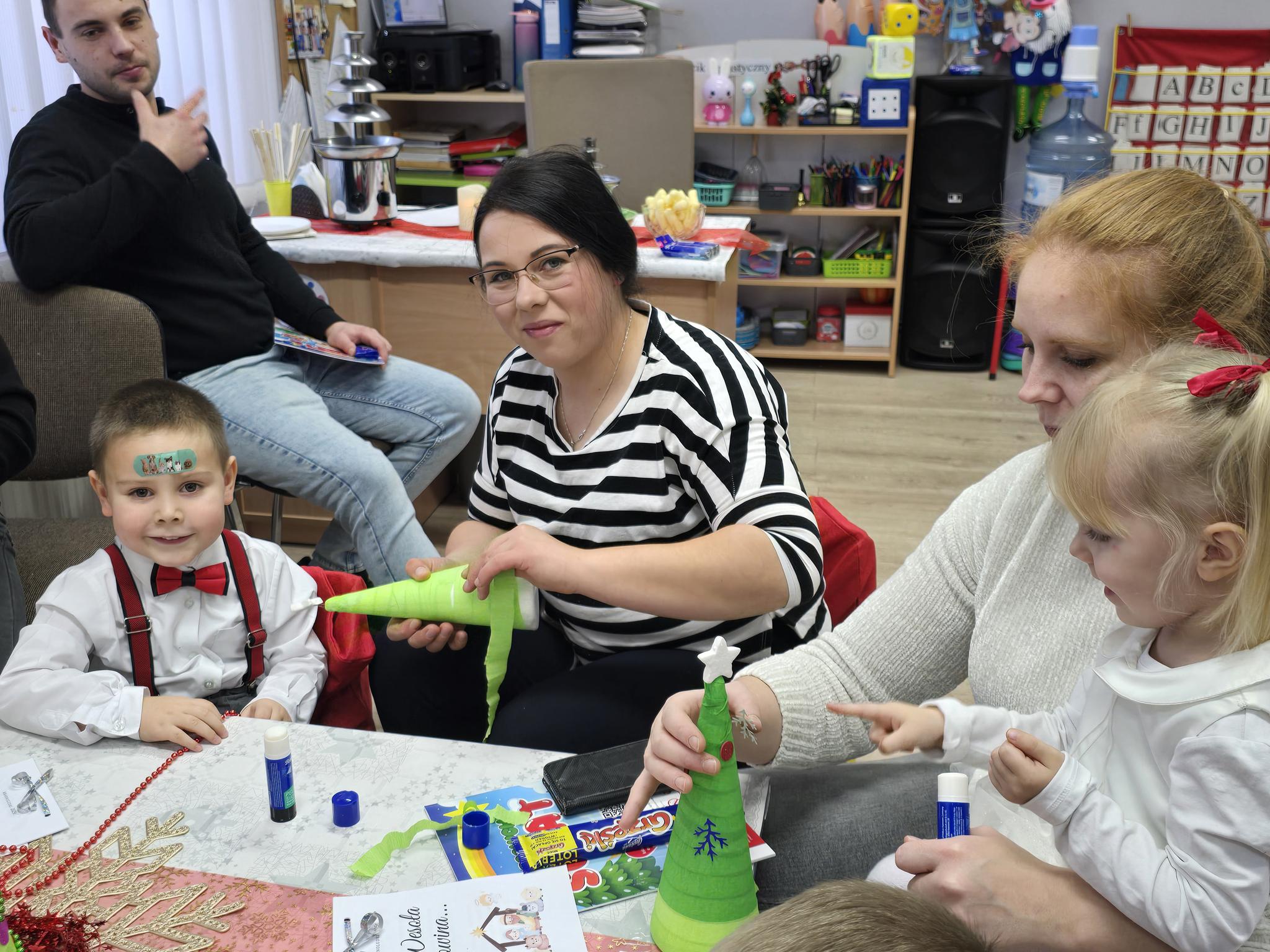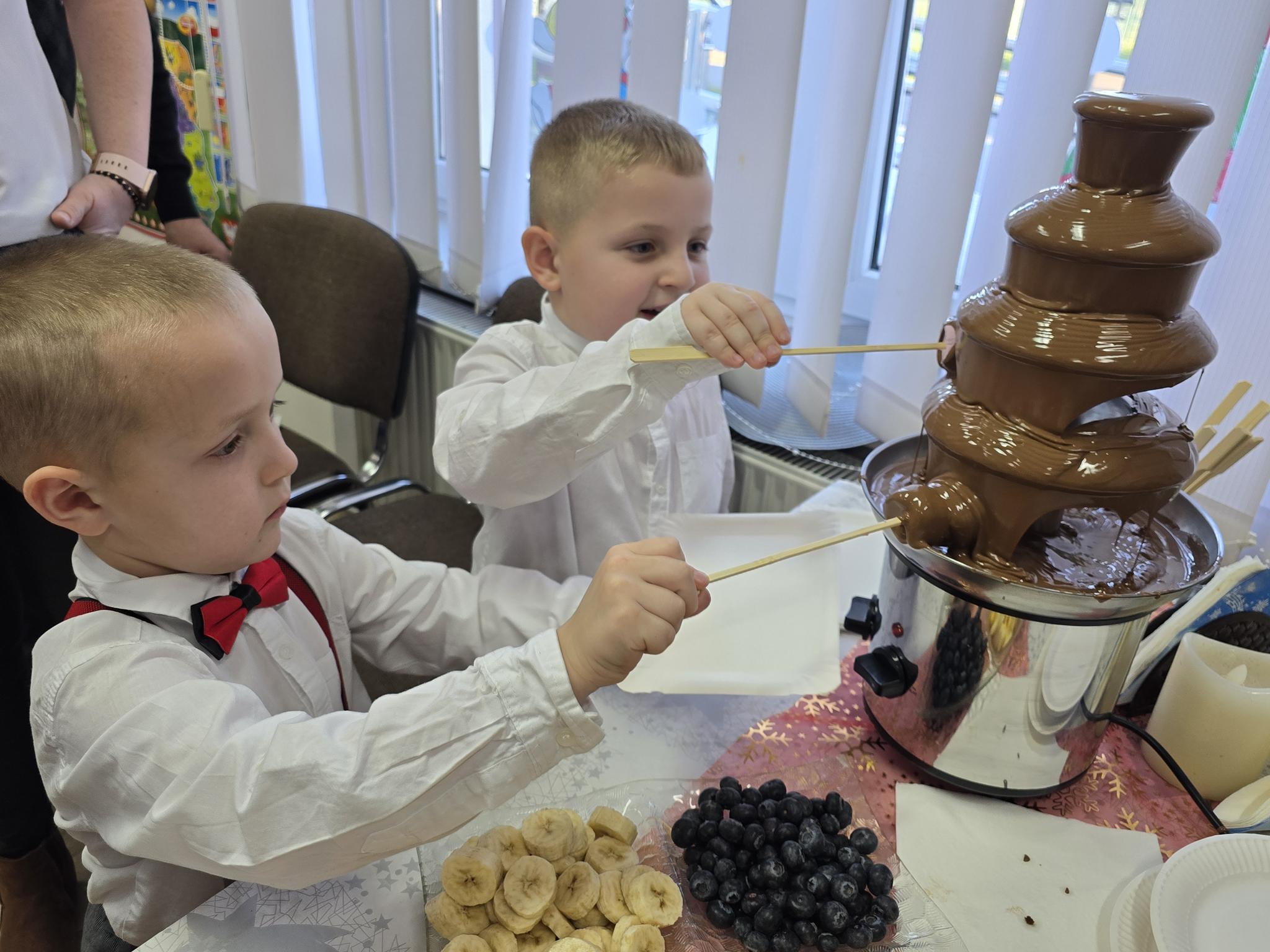 Święta Bożego Narodzenia to wyjątkowy czas pełen radości, ciepła i wspólnego przeżywania pięknych chwil. Dzieci z oddziału „Krasnoludki” zaprezentowały świąteczny występ wprowadzając wszystkich w bożonarodzeniowy nastrój. Następnie, wspólnie z rodzicami tworzyły piękne choineczki, wykazując się kreatywnością i zaangażowaniem. Zwieńczeniem warsztatów była słodka atrakcja- owoce polane czekoladą z fontanny czekolady, która sprawiła dzieciom wiele radości.