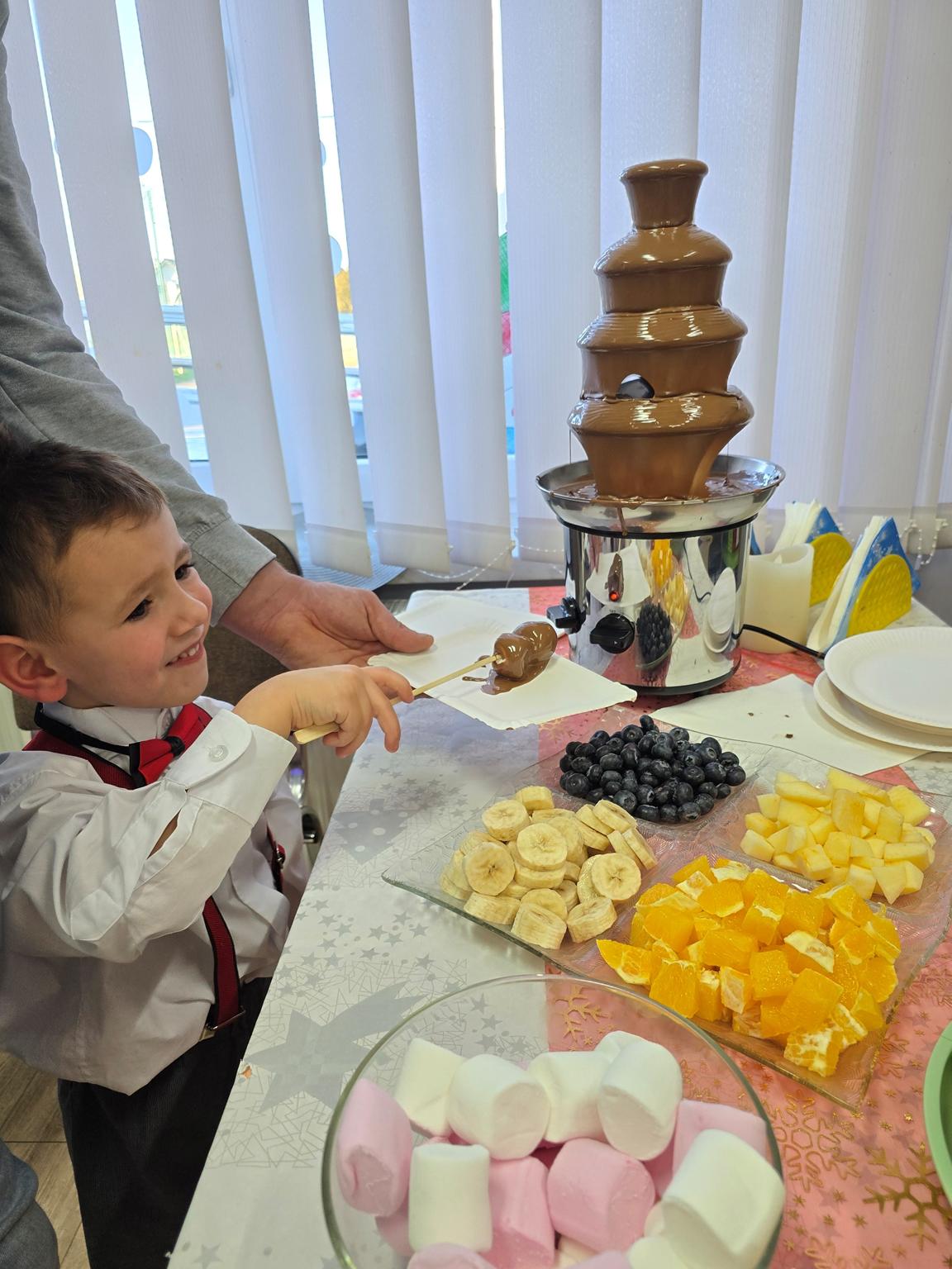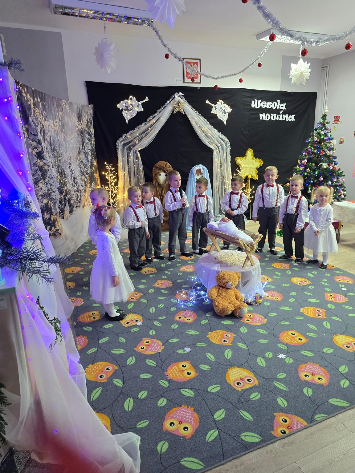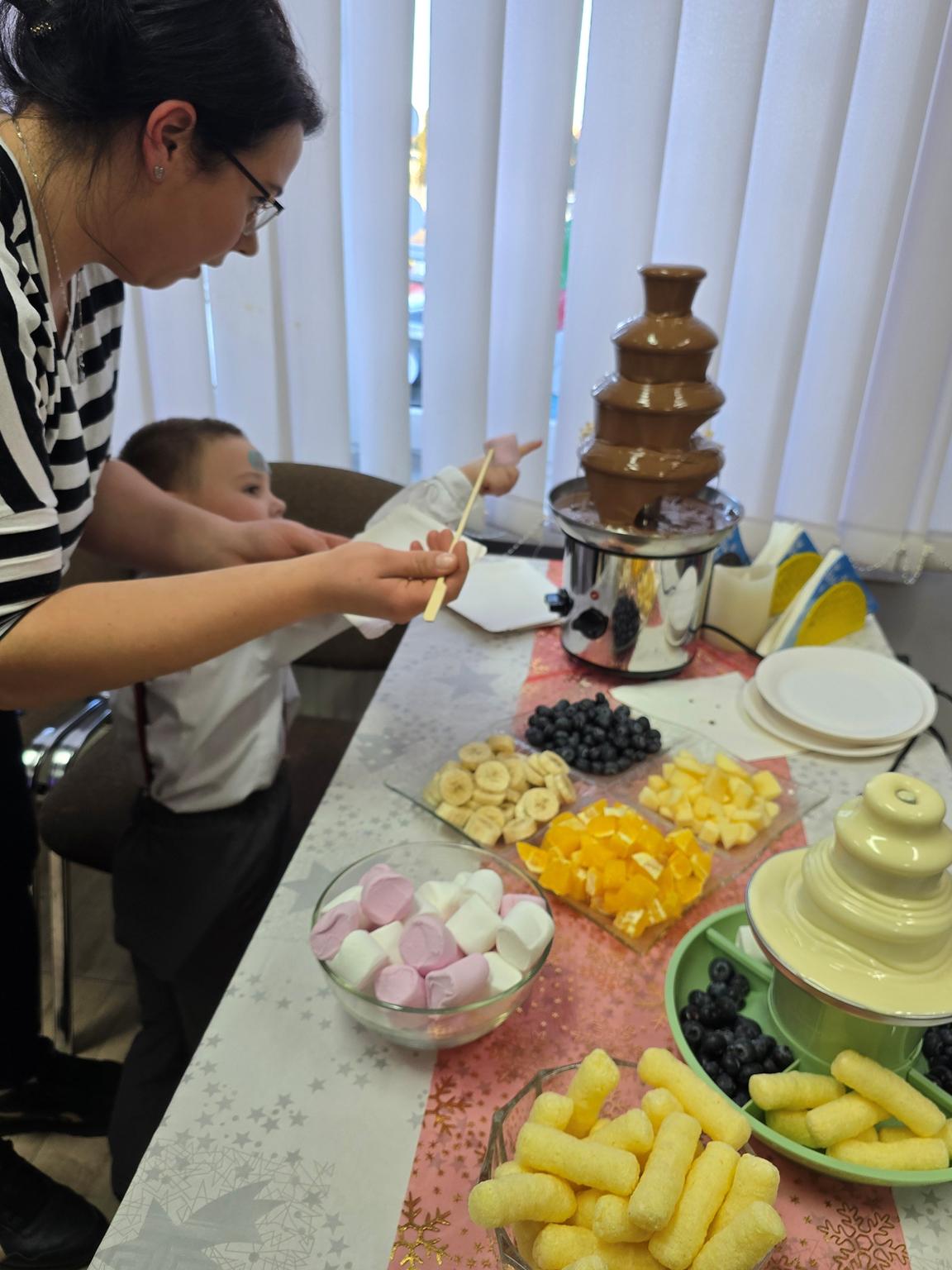Święta Bożego Narodzenia to wyjątkowy czas pełen radości, ciepła i wspólnego przeżywania pięknych chwil. Dzieci z oddziału „Krasnoludki” zaprezentowały świąteczny występ wprowadzając wszystkich w bożonarodzeniowy nastrój. Następnie, wspólnie z rodzicami tworzyły piękne choineczki, wykazując się kreatywnością i zaangażowaniem. Zwieńczeniem warsztatów była słodka atrakcja- owoce polane czekoladą z fontanny czekolady, która sprawiła dzieciom wiele radości.