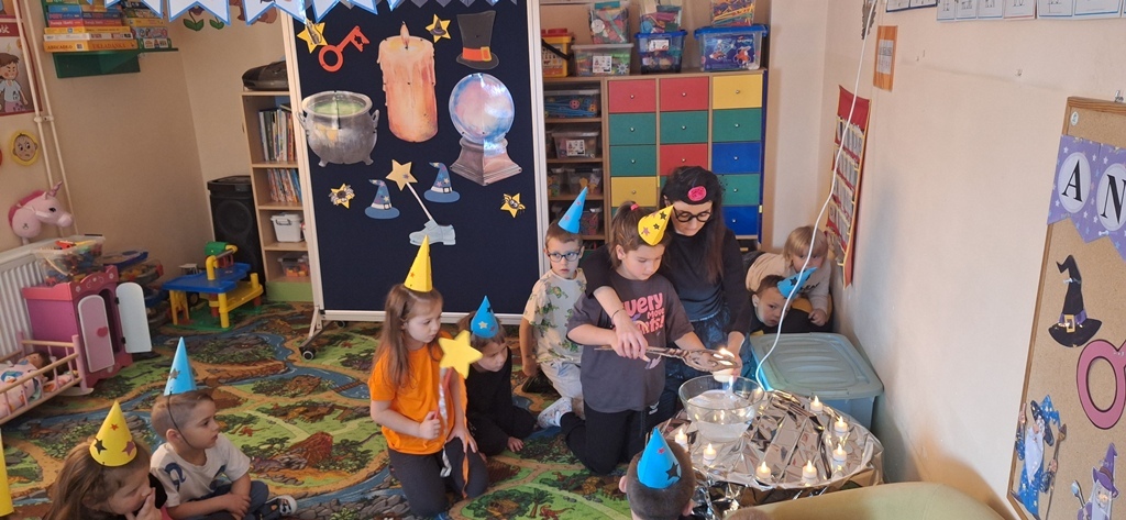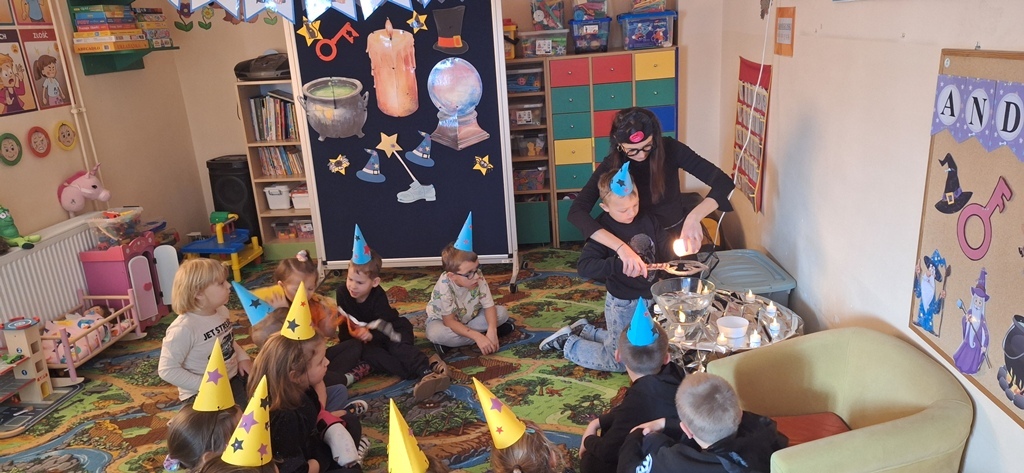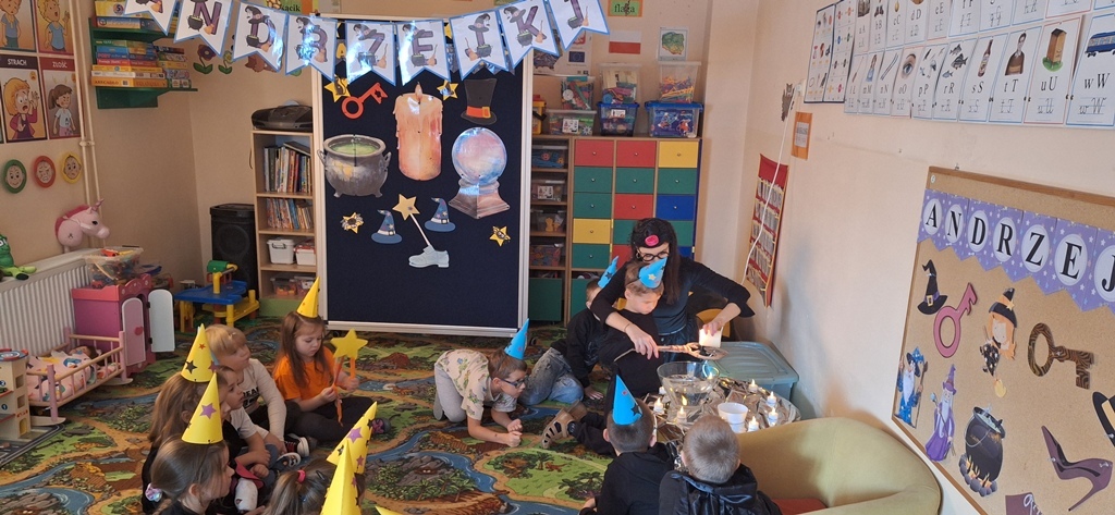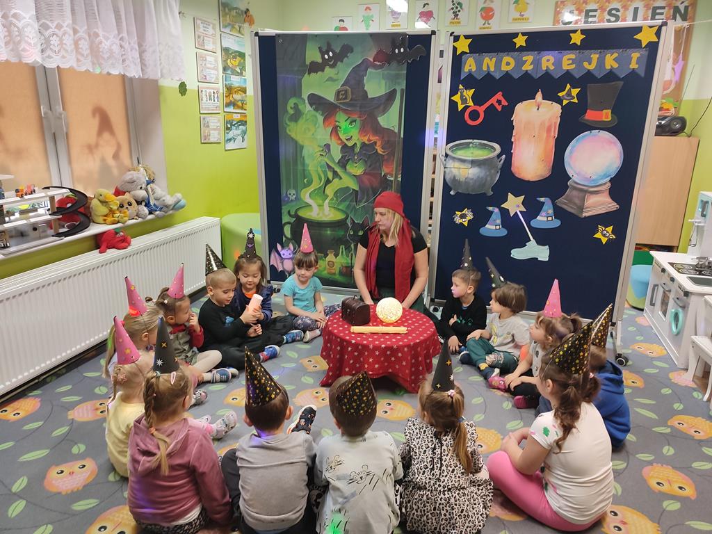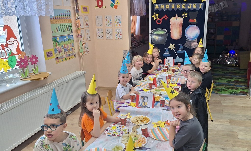Dnia 27 listopada w naszym przedszkolu odbyły się Andrzejki, które stanowią ważny element polskiej kultury i są okazją do poznawania dawnych zwyczajów. Celem wydarzenia było przybliżenie przedszkolakom tradycji ludowych, integracja grupy oraz rozwijanie kreatywności poprzez udział w symbolicznych zabawach i wróżbach. Zajęcia przebiegały w radosnej, przyjaznej atmosferze, a dzieci chętnie angażowały się w proponowane aktywności. Wróżby, traktowane z przymrużeniem oka, dostarczyły wielu pozytywnych emocji oraz okazji do wspólnych rozmów i rozwijania wyobraźni.