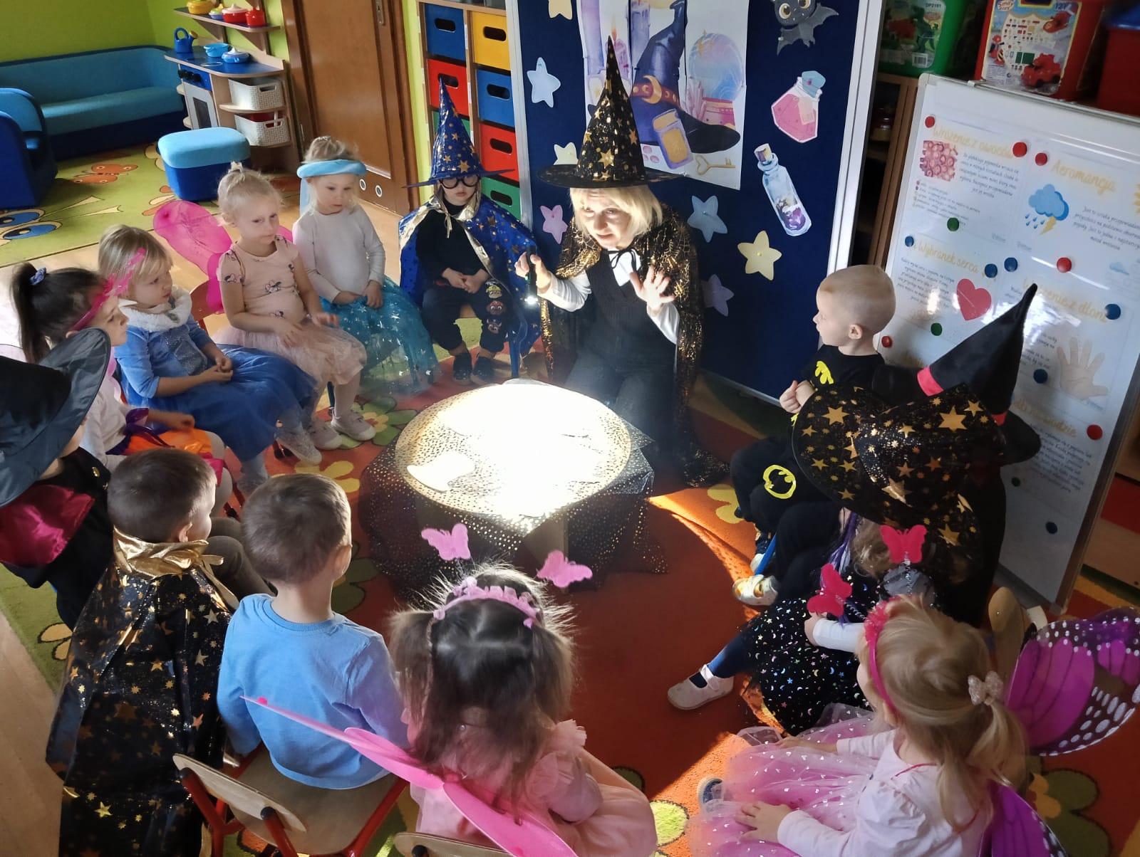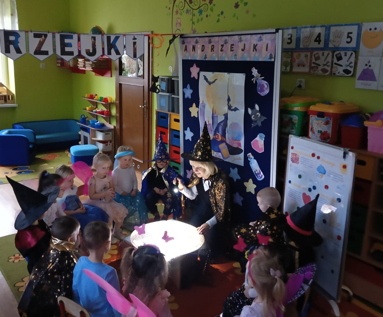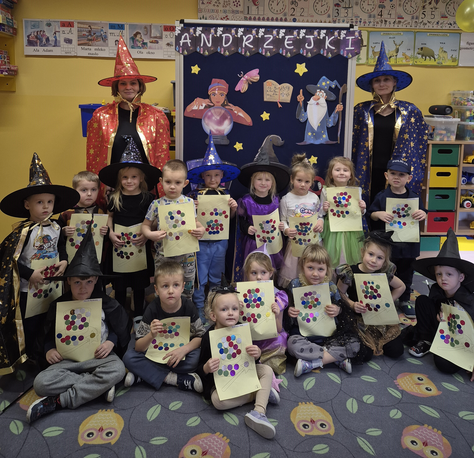 Dnia 27 listopada w naszym przedszkolu odbyły się Andrzejki, które stanowią ważny element polskiej kultury i są okazją do poznawania dawnych zwyczajów. Celem wydarzenia było przybliżenie przedszkolakom tradycji ludowych, integracja grupy oraz rozwijanie kreatywności poprzez udział w symbolicznych zabawach i wróżbach. Zajęcia przebiegały w radosnej, przyjaznej atmosferze, a dzieci chętnie angażowały się w proponowane aktywności. Wróżby, traktowane z przymrużeniem oka, dostarczyły wielu pozytywnych emocji oraz okazji do wspólnych rozmów i rozwijania wyobraźni.