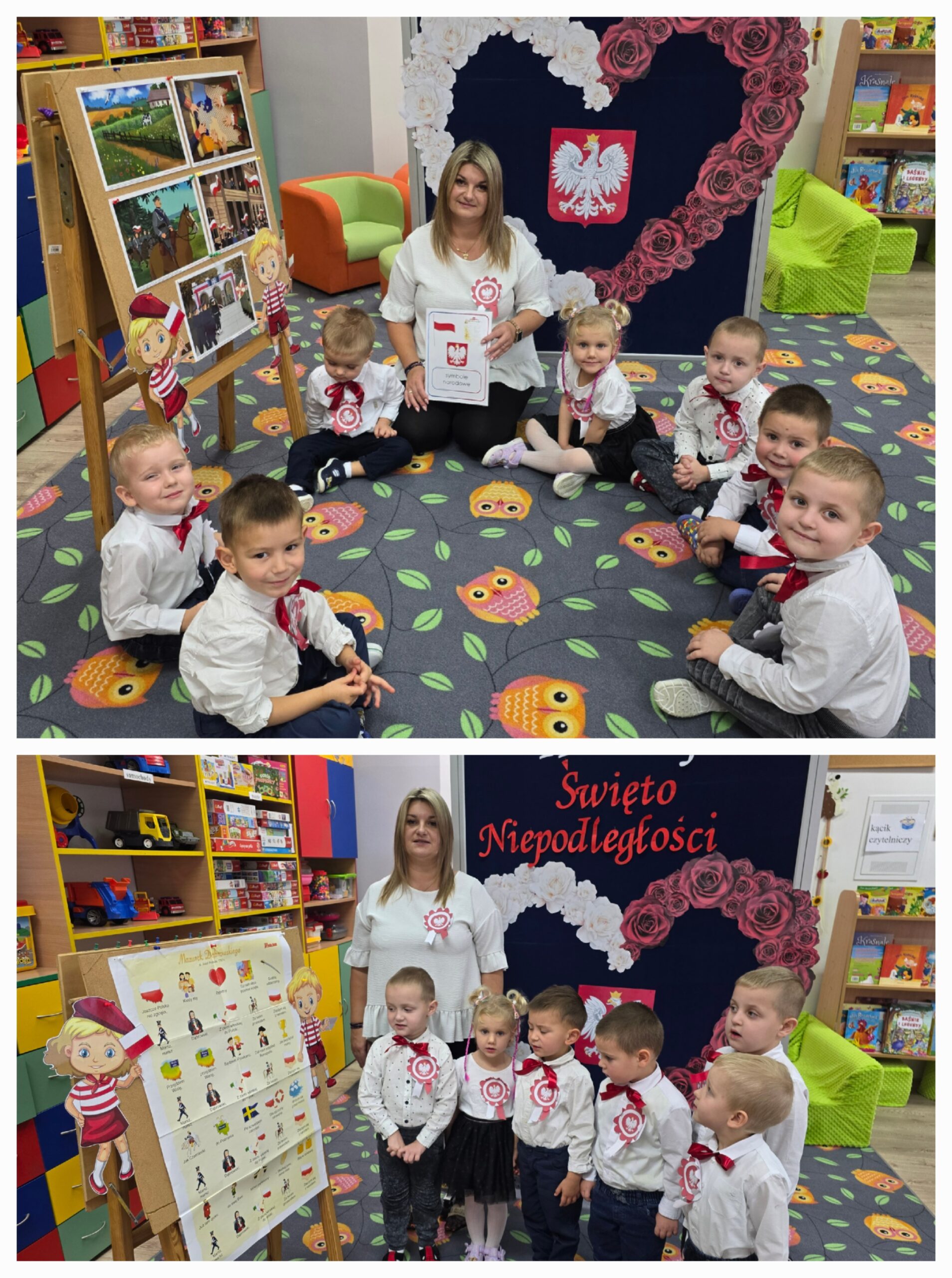 11 listopada to szczególny dzień dla wszystkich Polaków. Z tej okazji 7 listopada w Przedszkolu Publicznym im. Jana Brzechwy w Grębocicach i jego Oddziałach: Rzeczycy i Krzydłowicach odbyły się uroczyste obchody Święta Niepodległości. Dzieci przyszły ubrane do przedszkola w stroje galowe. Podczas zajęć przedszkolaki rozmawiały o historii naszego kraju oraz o symbolach narodowych: fladze, godle i hymnie. Wspólnie zaśpiewały o godzinie 11:11 „Mazurek Dąbrowskiego”, włączając się w akcję „Szkoła do hymnu”. Nie zabrakło również piosenek patriotycznych i wierszy o Polsce. Cała uroczystość przebiegła w podniosłej, a zarazem radosnej atmosferze, pełnej dumy i miłości do ojczyzny.