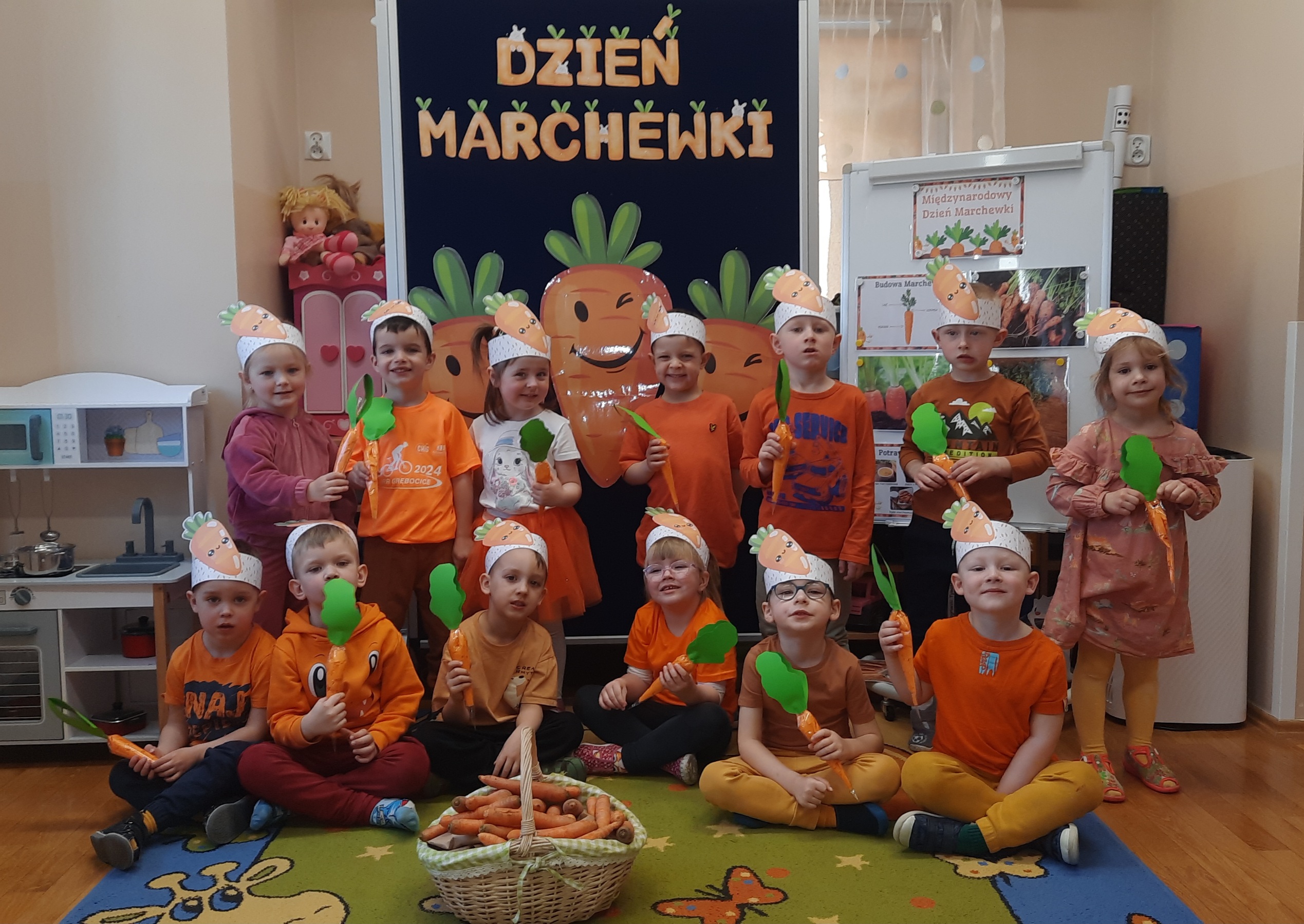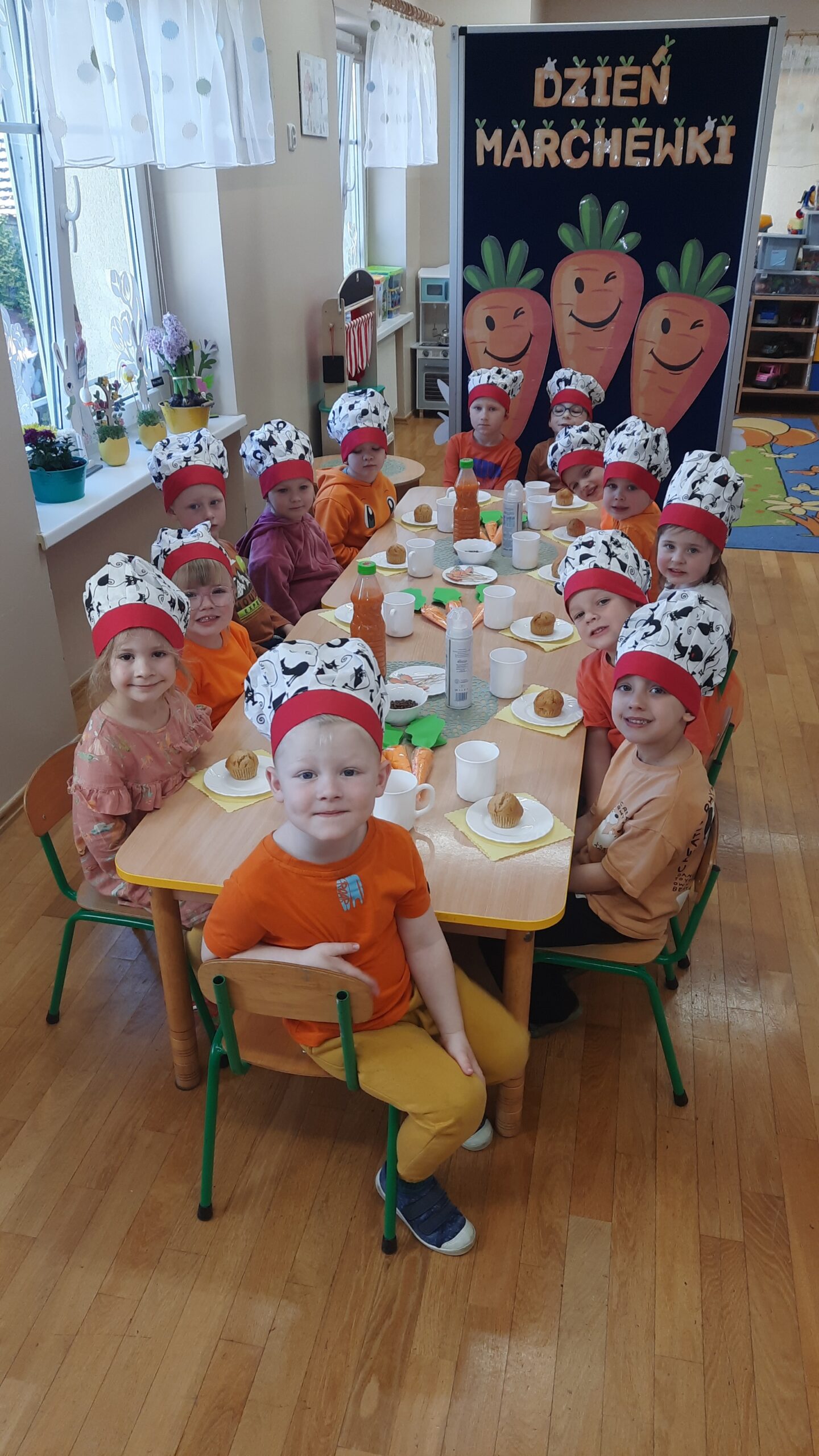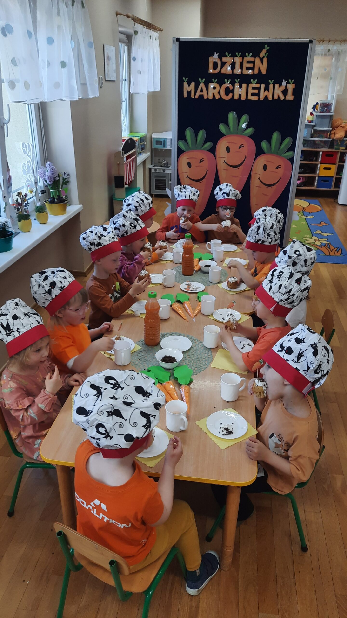 „Dzień Marchewki” był dniem zdrowym i witaminowym w oddziale „Mrówek”, w którym wszyscy dobrze się bawili i marchewkę polubili. Celem tego dnia było przedstawienie i promowanie spożywania warzyw i owoców jako darów natury na przykładzie marchewki, poznanie jej właściwości oraz rozwijanie umiejętności współdziałania w zespole. Ale także realizacja kolejnego etapu projektu „Klubu Małego Zucha” pt. „Przygotowujemy zdrowe desery”, którego celem było przypomnienie zasad zdrowego odżywiania, rozwijania pasji cukierniczych, nauka przygotowania zdrowych i pożywnych deserów – „muffinek marchewkowych”, za które dzieci otrzymały kolejną odznakę „Sprawność Cukiernika”.