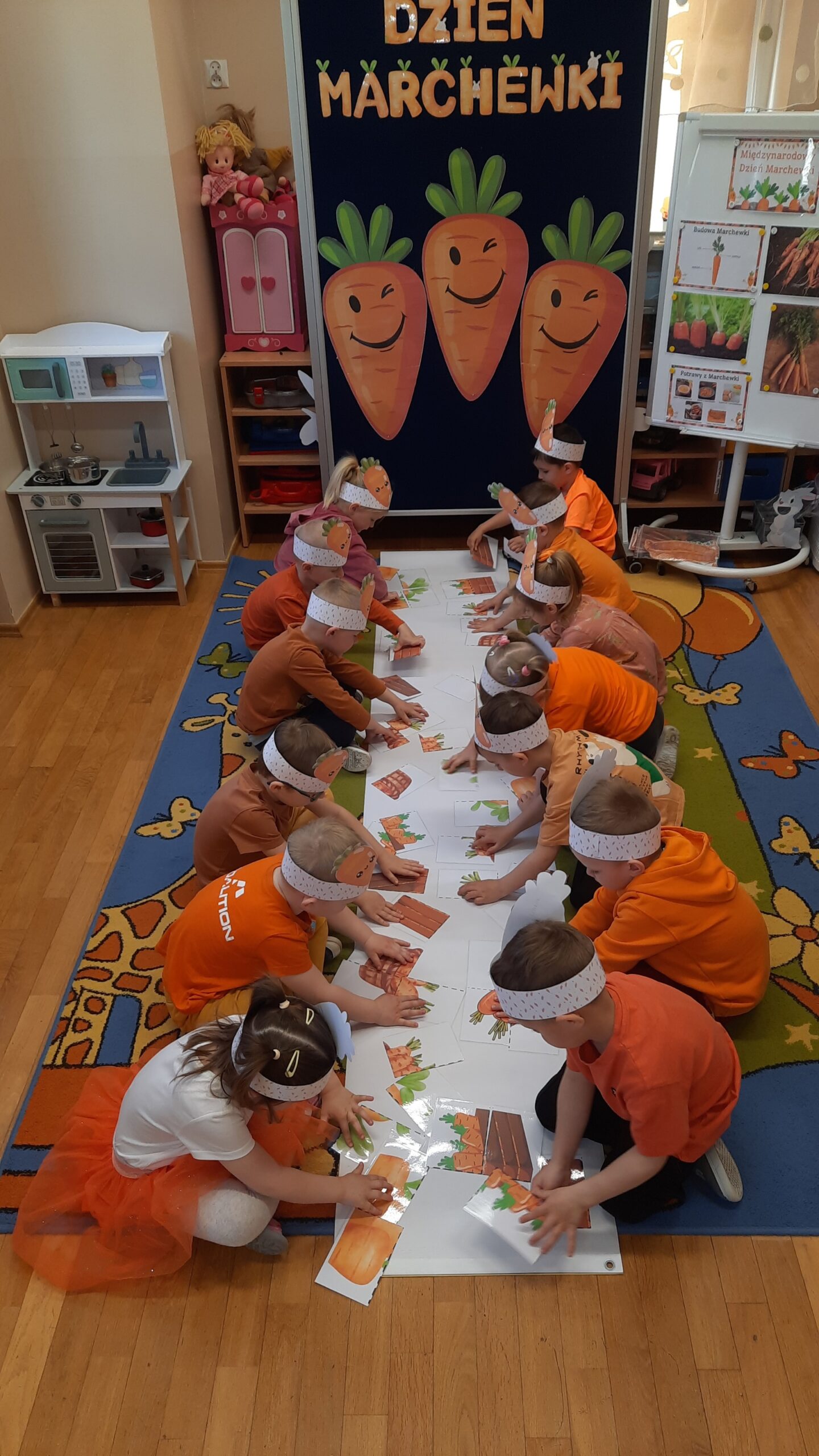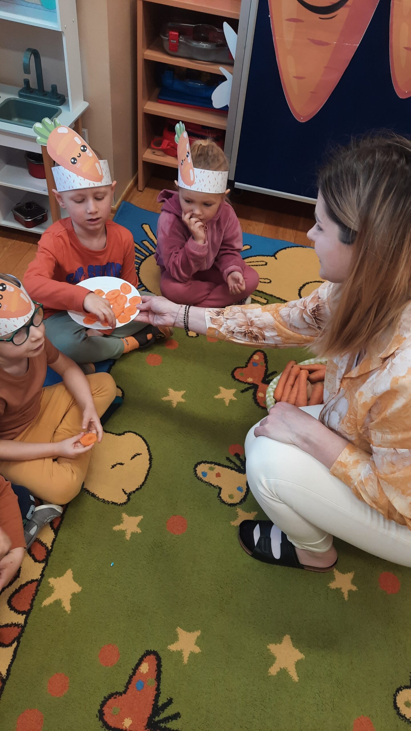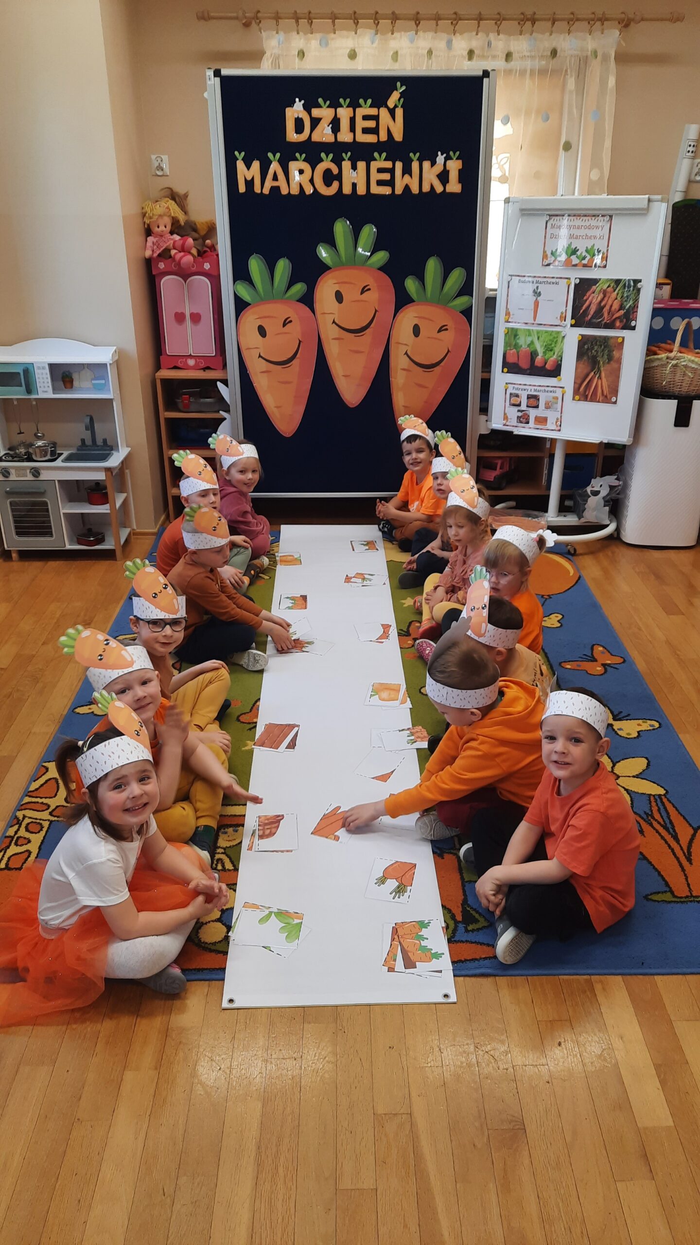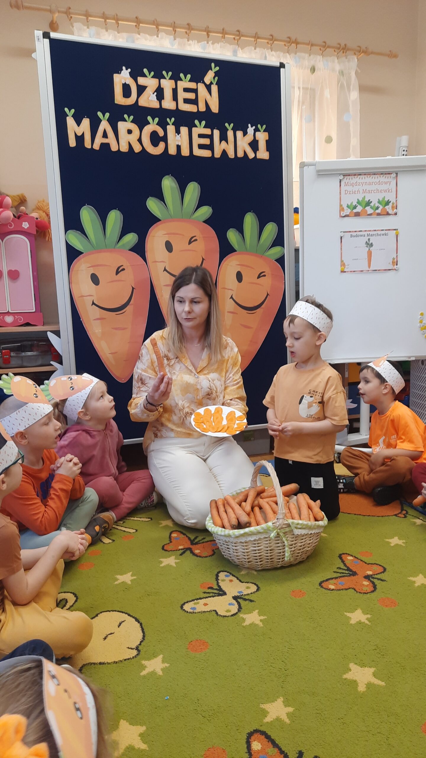 „Dzień Marchewki” był dniem zdrowym i witaminowym w oddziale „Mrówek”, w którym wszyscy dobrze się bawili i marchewkę polubili. Celem tego dnia było przedstawienie i promowanie spożywania warzyw i owoców jako darów natury na przykładzie marchewki, poznanie jej właściwości oraz rozwijanie umiejętności współdziałania w zespole. Ale także realizacja kolejnego etapu projektu „Klubu Małego Zucha” pt. „Przygotowujemy zdrowe desery”, którego celem było przypomnienie zasad zdrowego odżywiania, rozwijania pasji cukierniczych, nauka przygotowania zdrowych i pożywnych deserów – „muffinek marchewkowych”, za które dzieci otrzymały kolejną odznakę „Sprawność Cukiernika”.