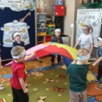 Drugiego marca przedszkolaki z oddziału „Mrówki”, realizując kolejny etap programu edukacyjnego „Twórczy Maluch”, wcieliły się w rolę prezenterów marcowej pogody. Dzieci z ogromnym zaangażowaniem odkrywały tajemnice miesiąca, w którym zima powoli ustępuje miejsca wiośnie, a aura potrafi zmieniać się jak w kalejdoskopie.Podczas zajęć rozmawialiśmy o przysłowiu „W marcu jak w garncu” oraz o charakterystycznych zjawiskach atmosferycznych. Przedszkolaki tworzyły własne prognozy pogody, łącząc elementy zimy i wiosny w twórczych działaniach plastycznych i ruchowych. Nie zabrakło zabaw matematycznych z wykorzystaniem wiatraka, ćwiczeń z chustą animacyjną Klanza oraz aktywności logorytmicznych wspierających rozwój mowy i poczucia rytmu. Zajęcia przebiegły w atmosferze radości, współpracy i dziecięcej ciekawości świata, a zdobyta wiedza i nowe doświadczenia z pewnością na długo pozostaną w pamięci naszych małych odkrywców.