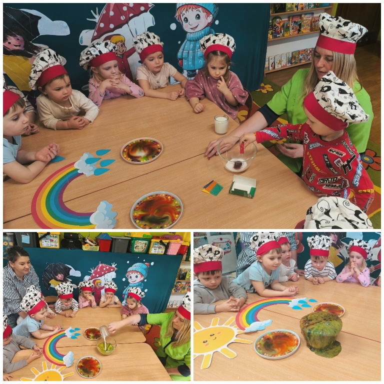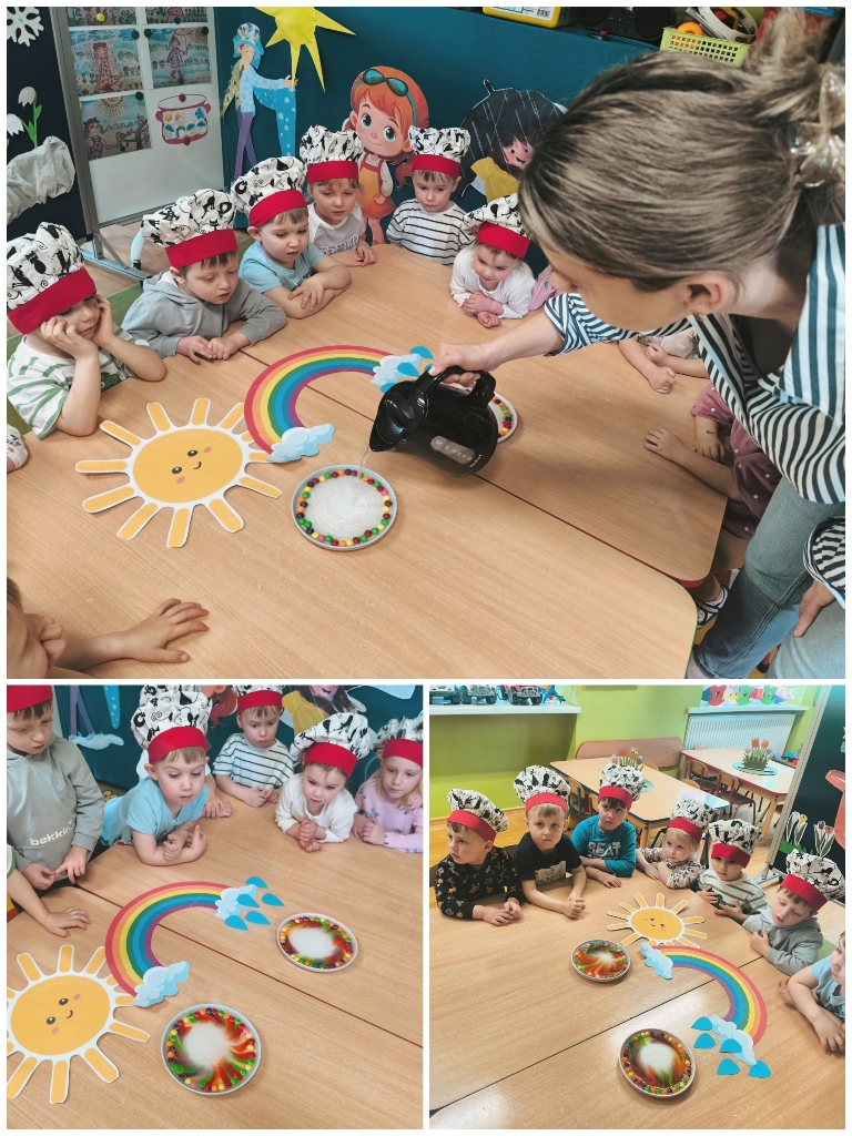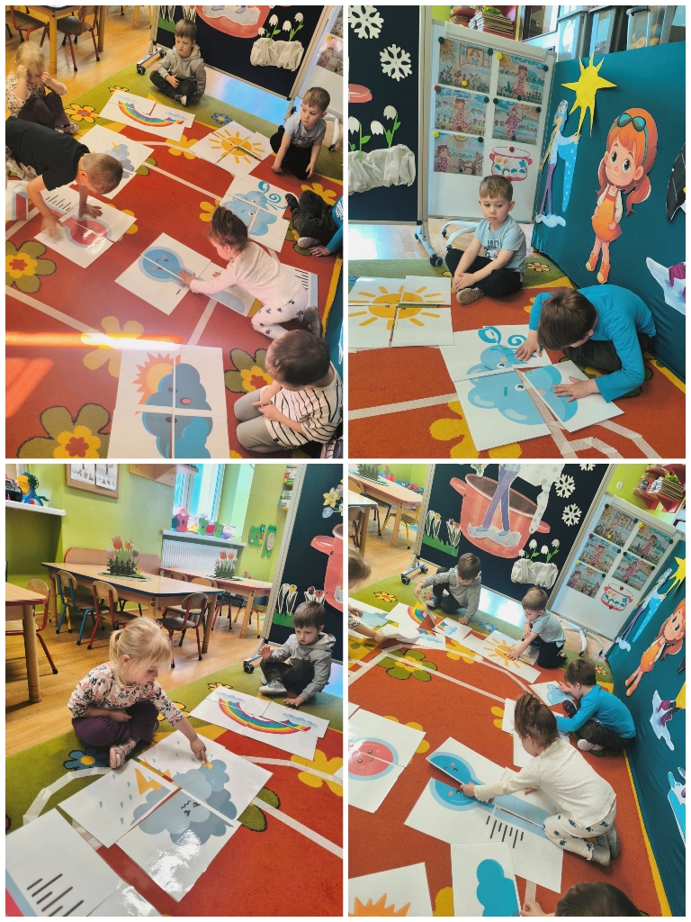 Marzec to prawdziwy żartowniś -raz świeci słońce, raz pada deszcz, a czasem nawet śnieg. W ubiegłym tygodniu, w oddziałach „Żuczki” i „Krasnoludki”, również nie brakowało niespodzianek! Przedszkolaki miały okazję uczestniczyć w kreatywnych zajęciach pogodowych, które połączyły zabawę z nauką o zmianach zachodzących w przyrodzie. Celem zajęć było poznanie dzieci z wiosennym przysłowiem „W marcu jak w garncu” oraz rozbudzenie zainteresowań różnymi zjawiskami atmosferycznymi. I tak niezależnie od marcowych kaprysów- każda pogoda sprzyja radosnej zabawie i twórczym odkryciom!