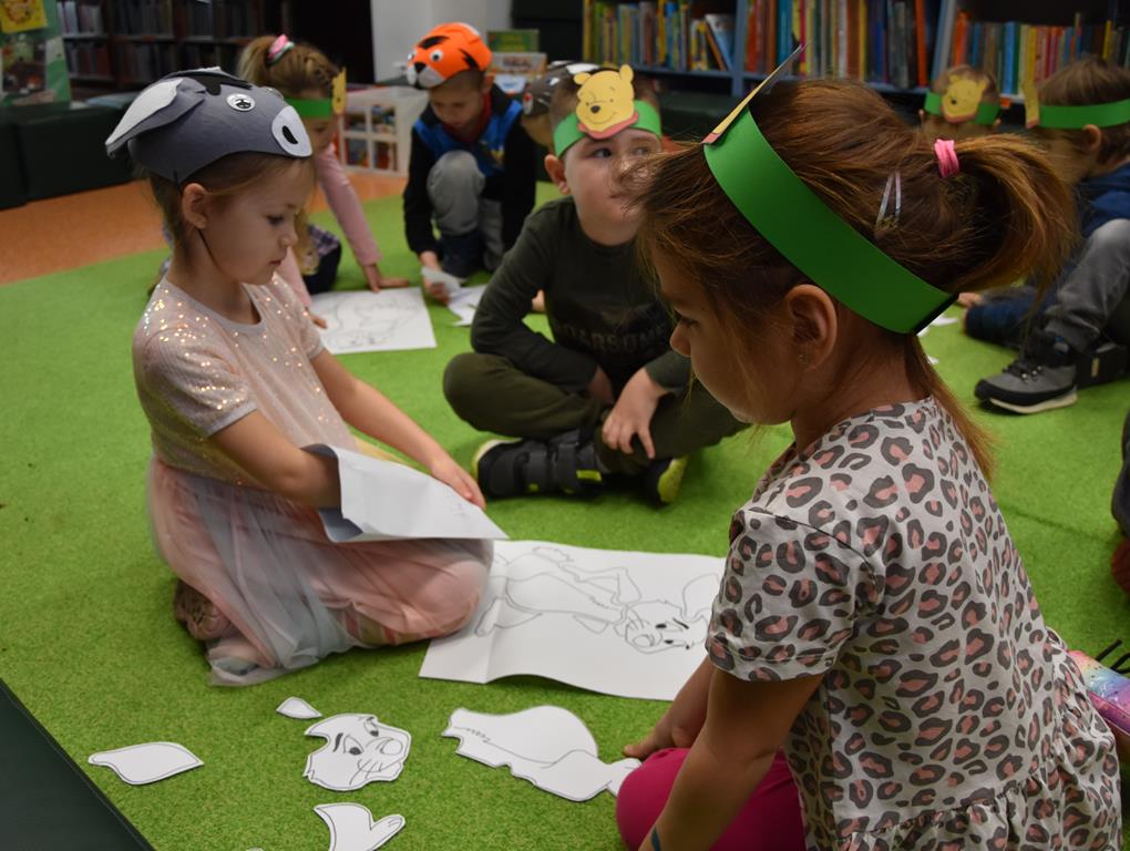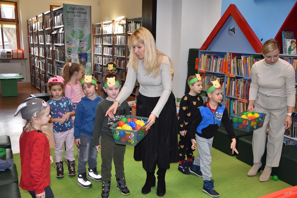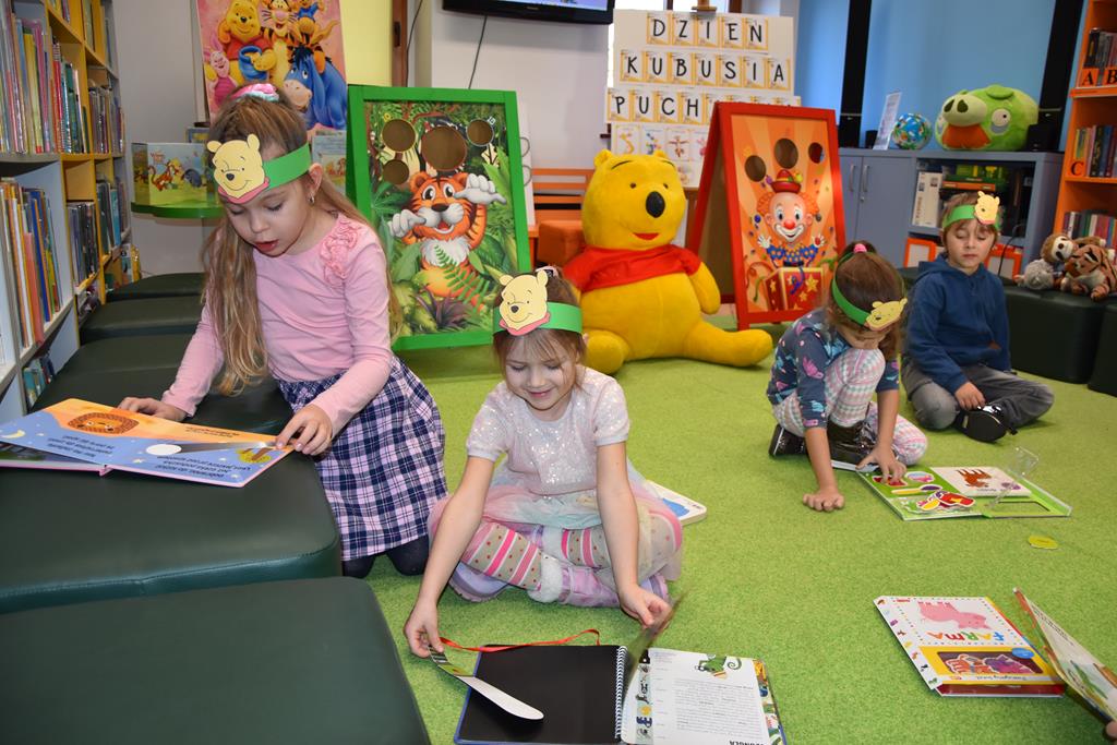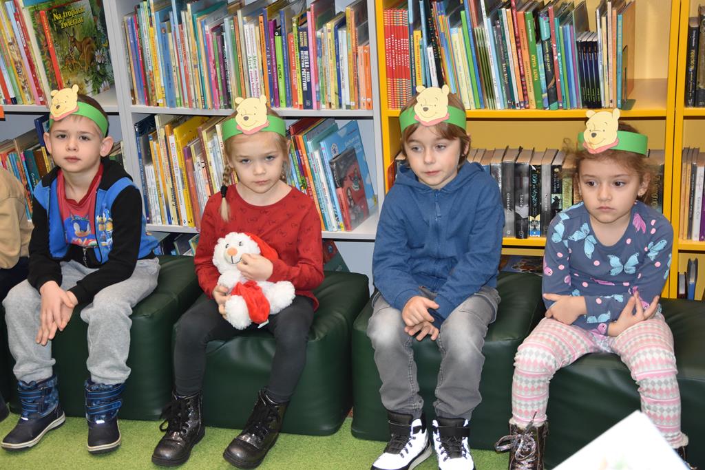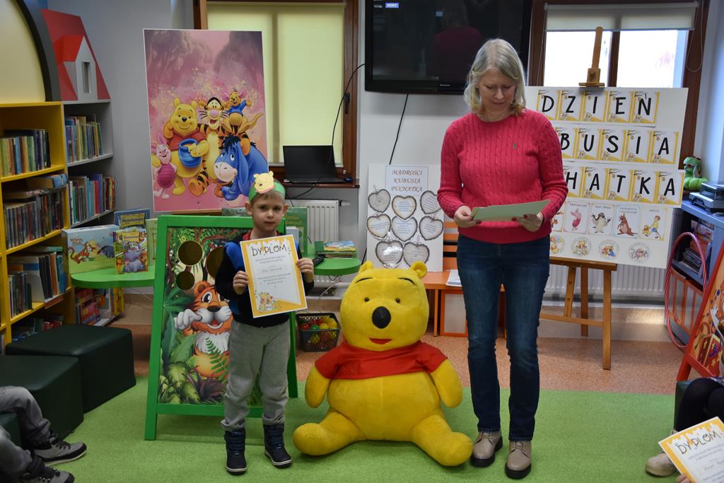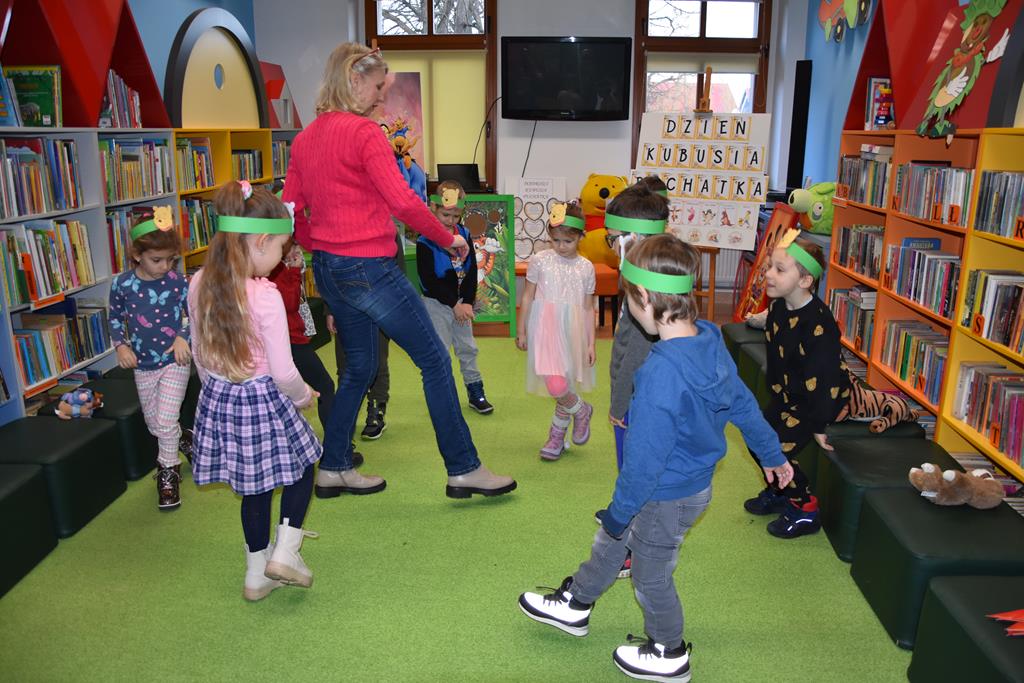 Dnia 17 stycznia 2025 r. dzieci z oddziału ,,Motylki” świętowały Międzynarodowy Dzień Kubusia Puchatka. W tym szczególnym dniu dzieci z maskotkami przedstawiającymi przyjaciół ze Stumilowego Lasu udały się do miejscowej biblioteki. Tam na nasze przedszkolaki czekała pani Agnieszka, która już na wstępie przeczytała przestrzennie ilustrowaną książeczkę o przygodach Kubusia Puchatka, a potem zaprosiła dzieci do udziału w różnych zabawach integracyjnych oraz konkurencjach sprawnościowych. Przedszkolaki m.in. rozpoznawały postacie z bajek, układały w parach puzzle, rozwiązywały zagadki oraz oglądały różne ciekawe książeczki ze zbiorów bibliotecznych. Mamy nadzieję, że urodziny Misia o małym rozumku wszyscy będziemy wspominać z uśmiechem na twarzy i z niecierpliwością oczekiwać kolejnych.