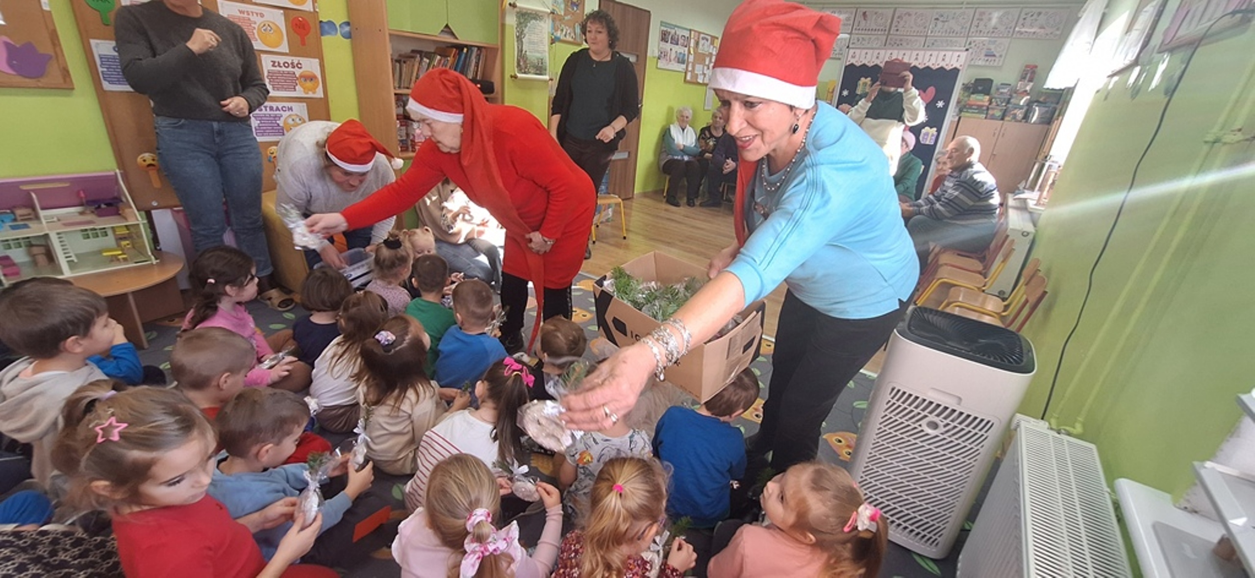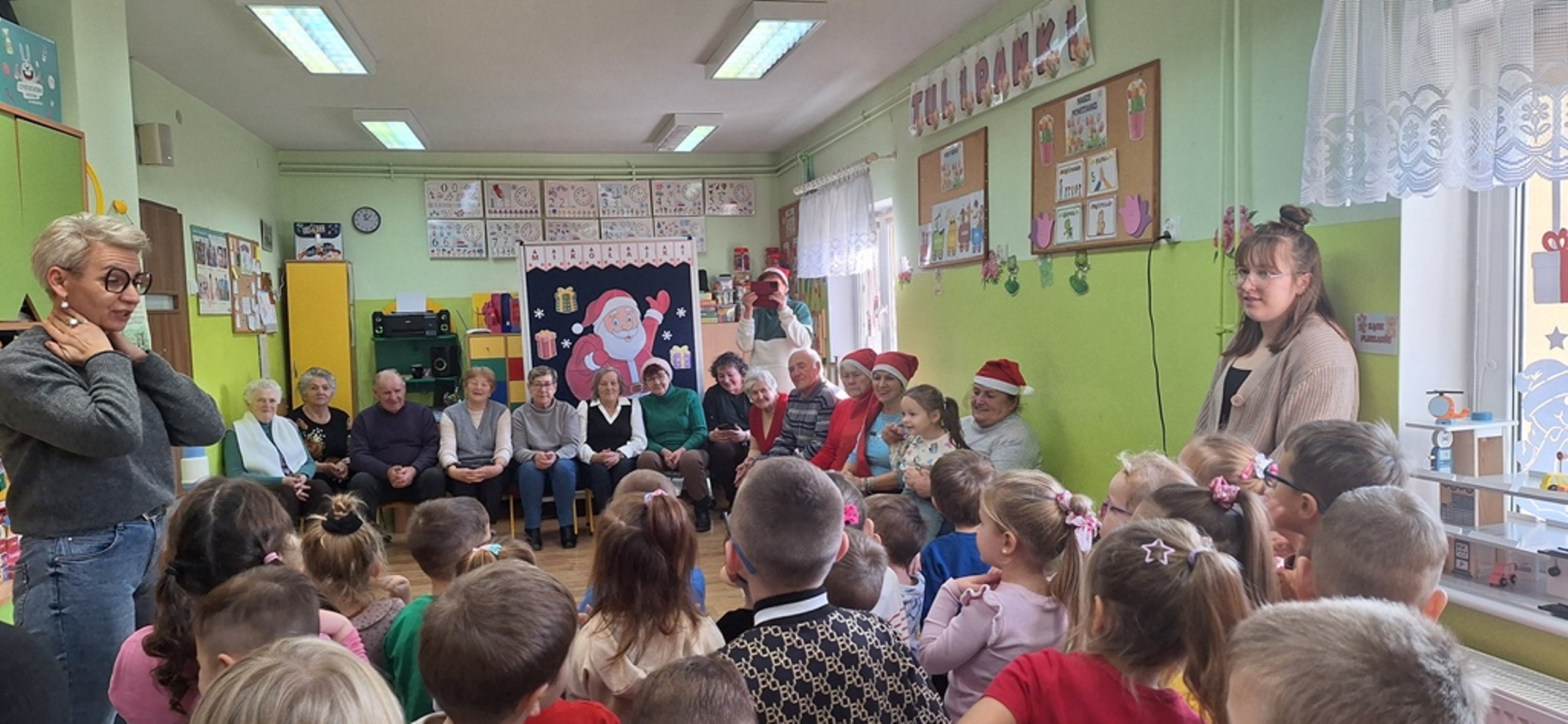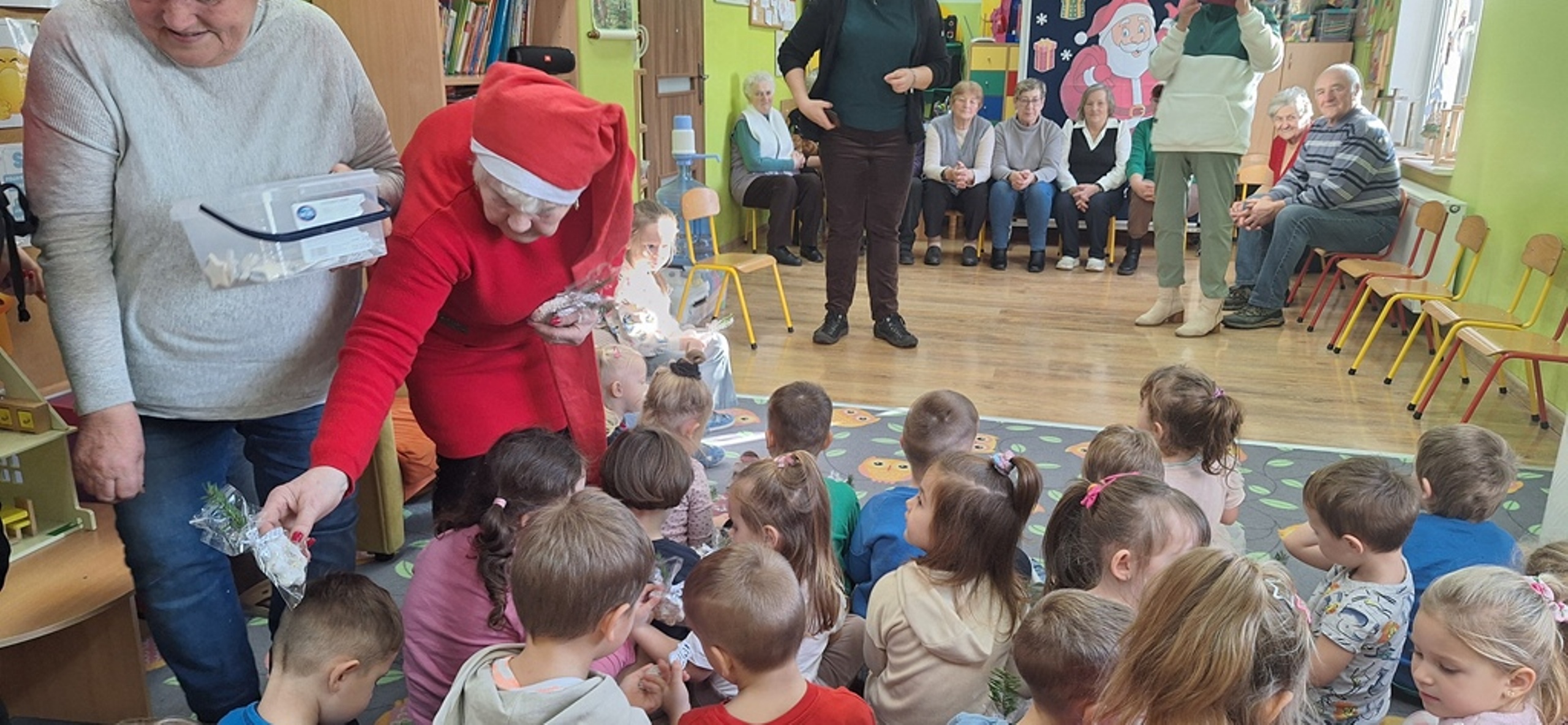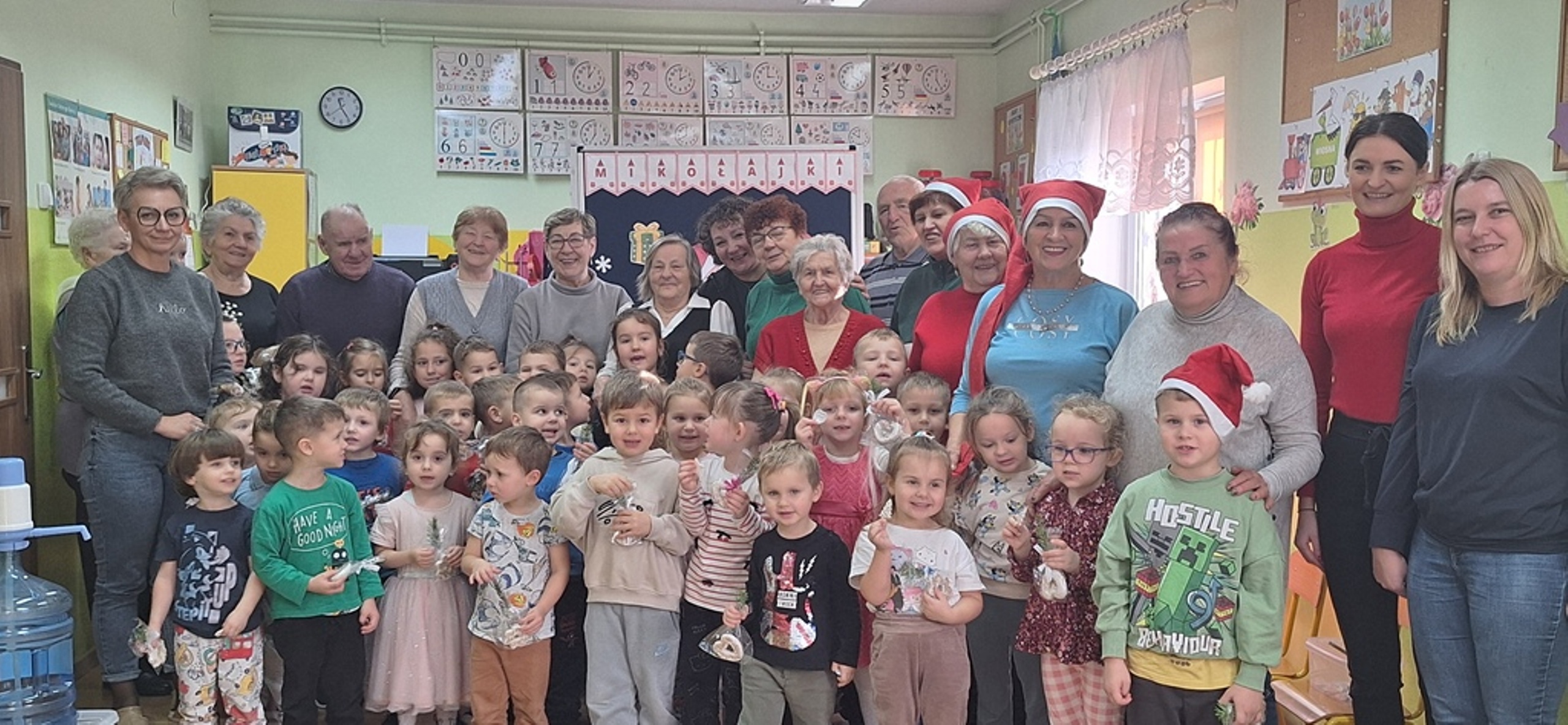 Dnia 11.12.2025r. w Oddziałe Przedszkolnym w Rzeczycy odbyło się uroczyste spotkanie mikołajkowe z udziałem seniorów. Wydarzenie miało charakter integracyjny i zostało zorganizowane w ramach działań wspierających budowanie i wzmacnianie więzi międzypokoleniowych, integrację społeczności lokalnej, wzmacnianie poczucia wartości u seniorów, rozwijanie wrażliwości społecznej u dzieci oraz tworzenie pozytywnych doświadczeń świątecznych.