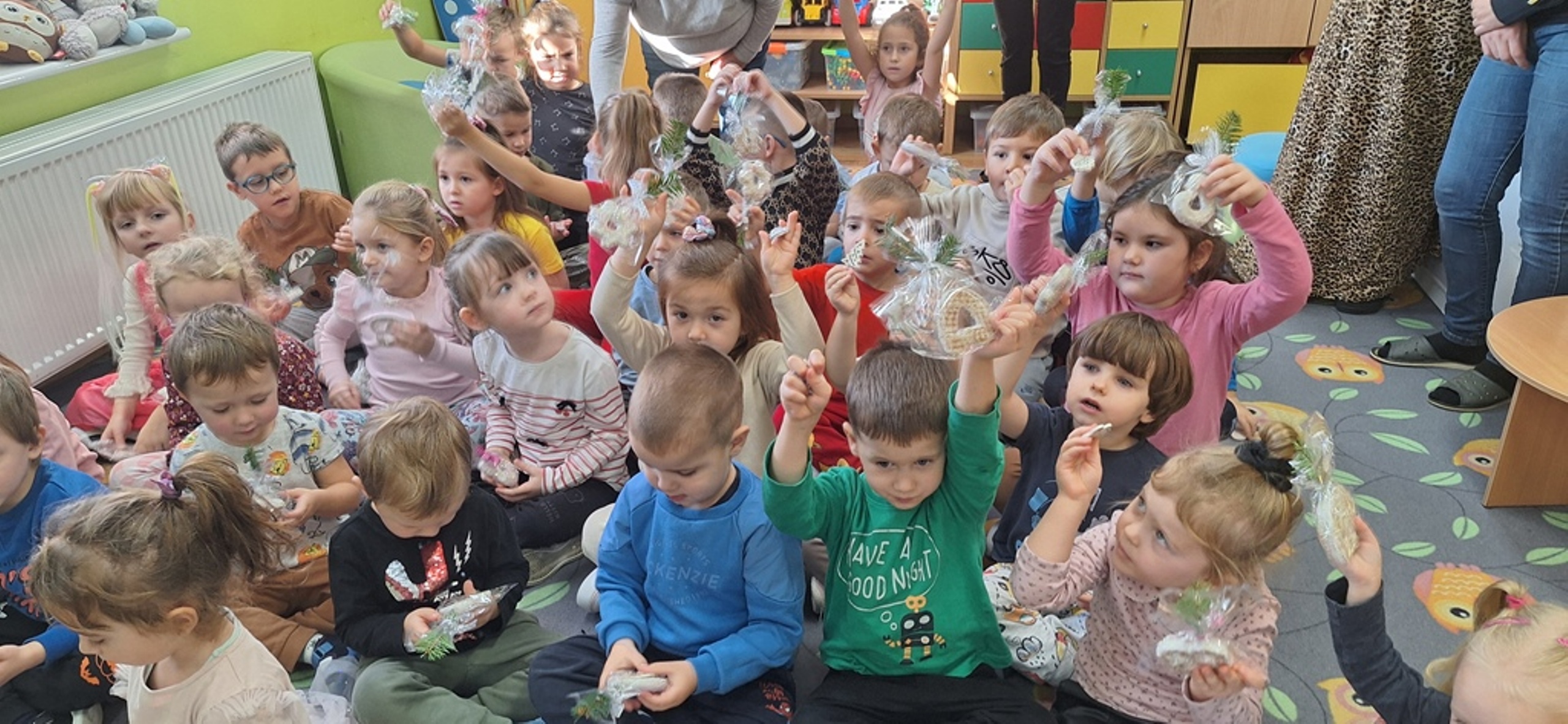 Spotkanie rozpoczęła uroczysta część artystyczna przygotowana przez dzieci, po której Seniorzy obdarowali dzieci prezencikami