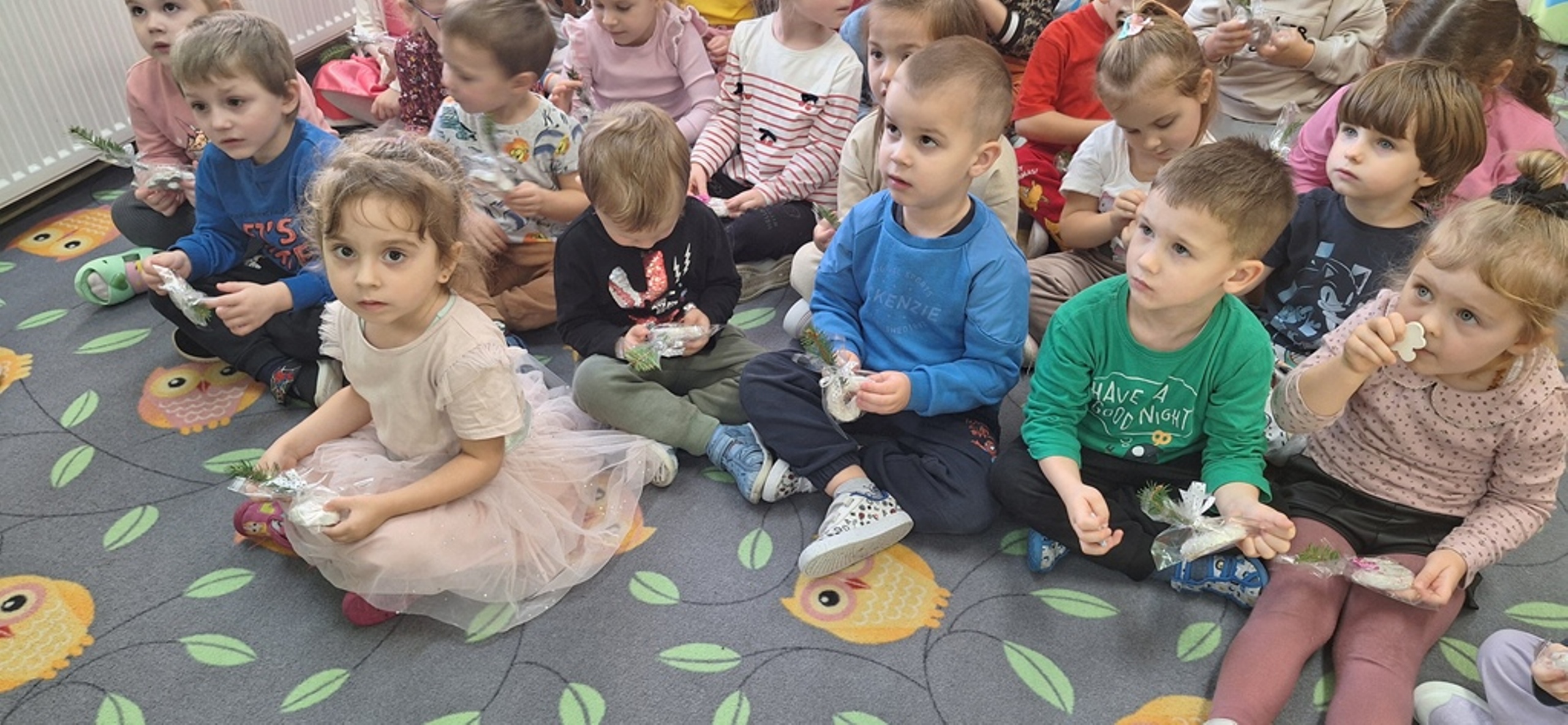, następnie odbyło się wspólne śpiewanie kolęd. Zarówno dzieci, jak i seniorzy chętnie włączyli się do muzykowania. Wspólne wykonywanie tradycyjnych pieśni bożonarodzeniowych okazało się nie tylko okazją do integracji, ale także do pielęgnowania polskich zwyczajów świątecznych.