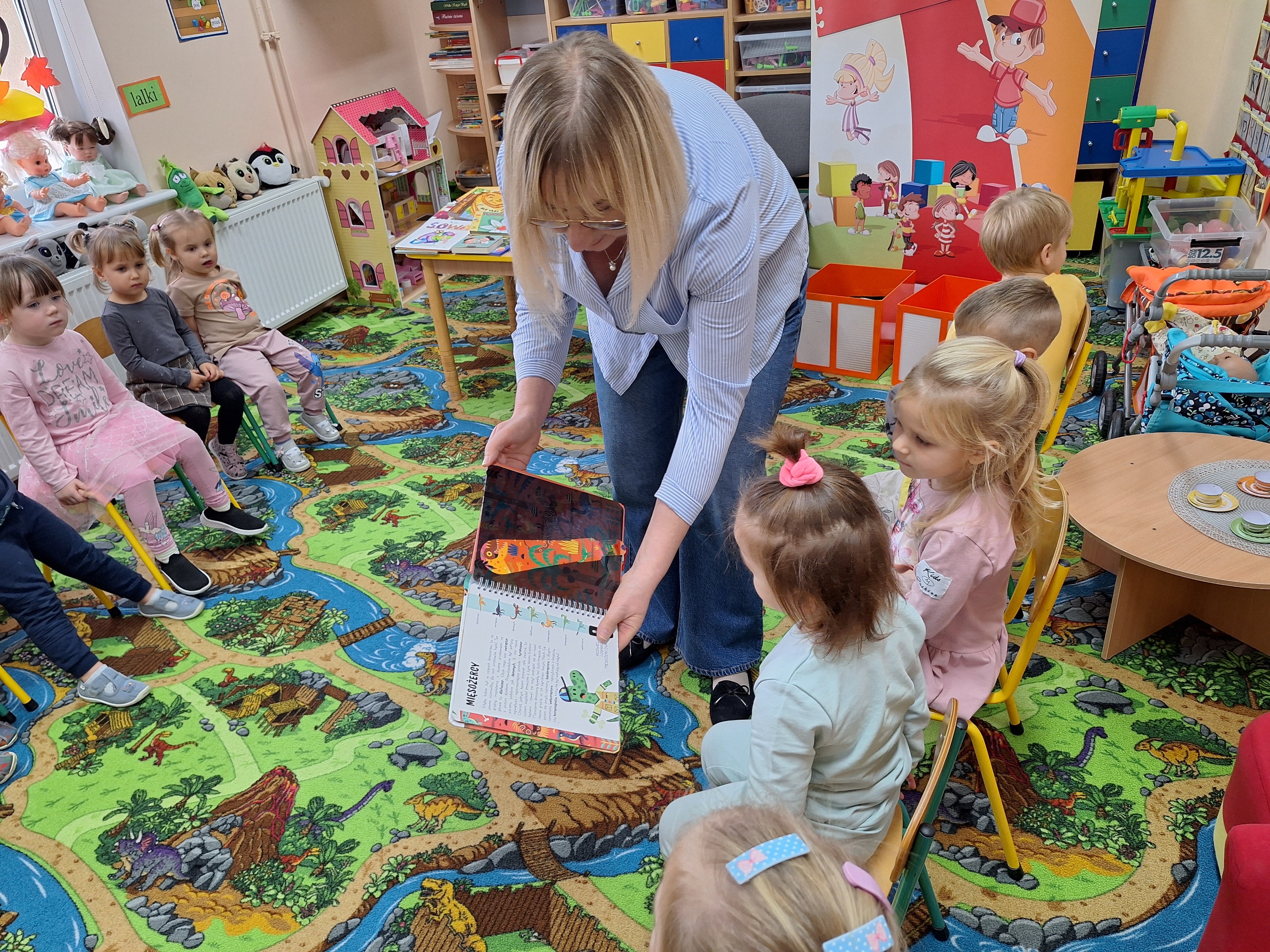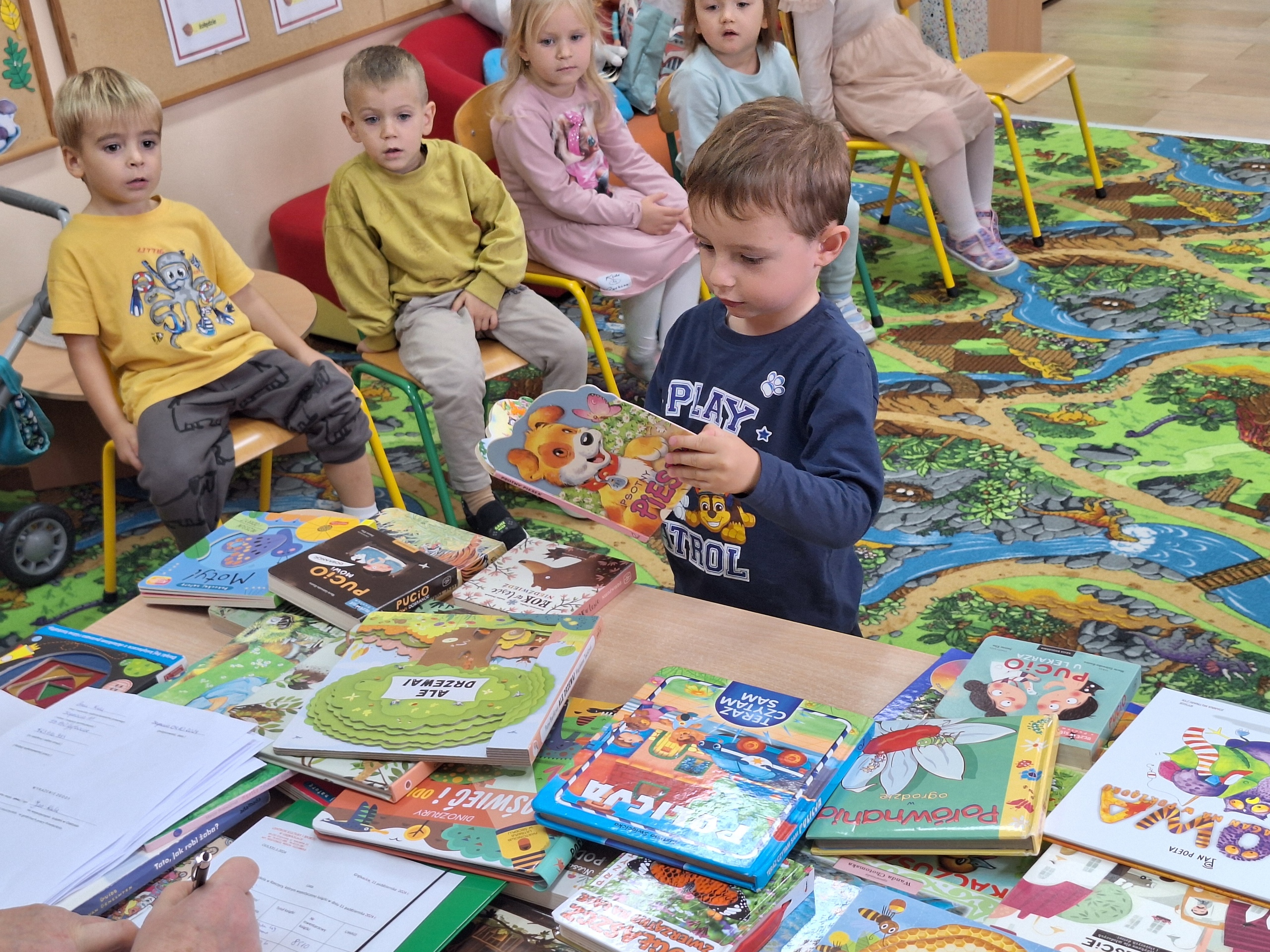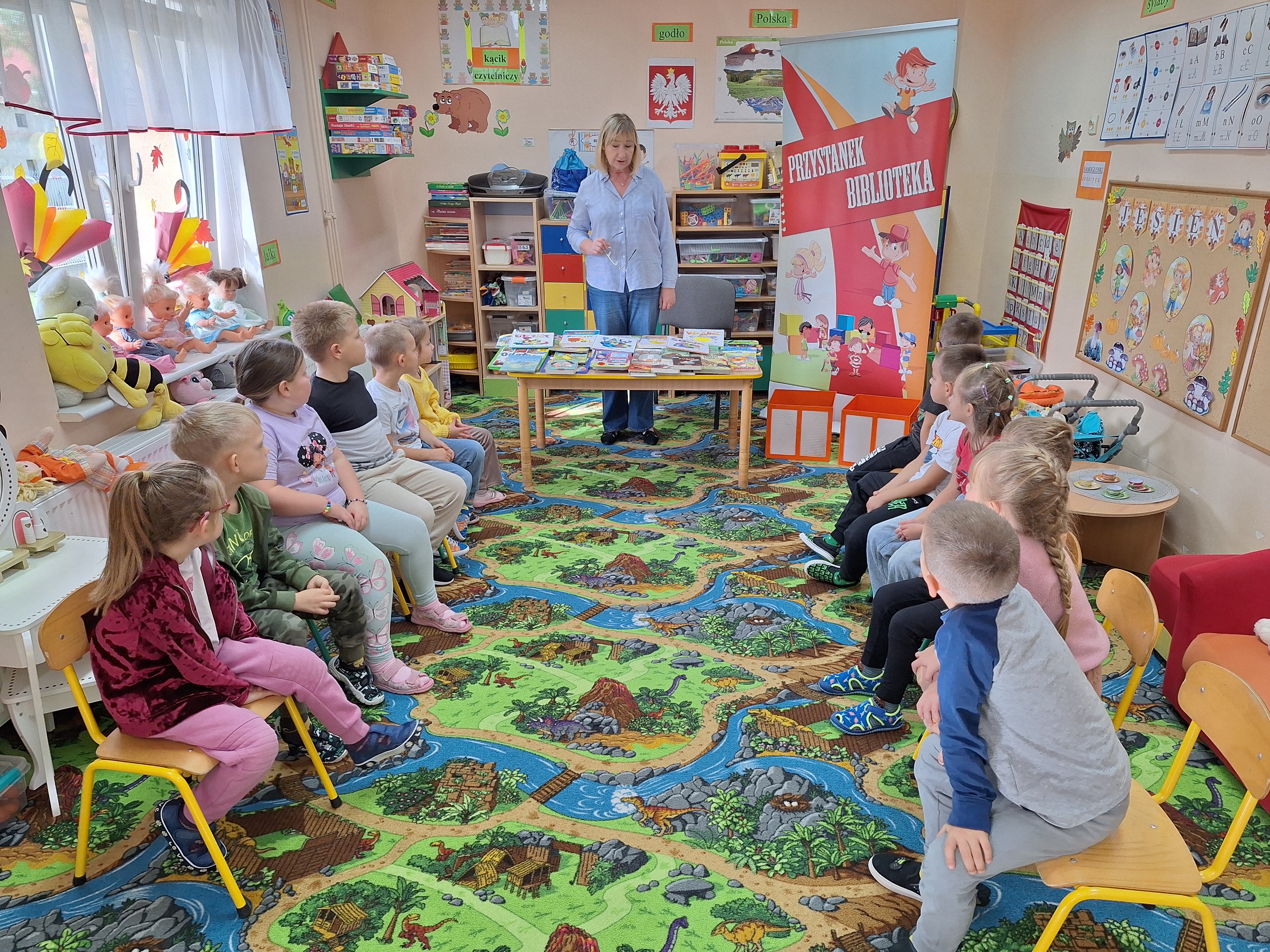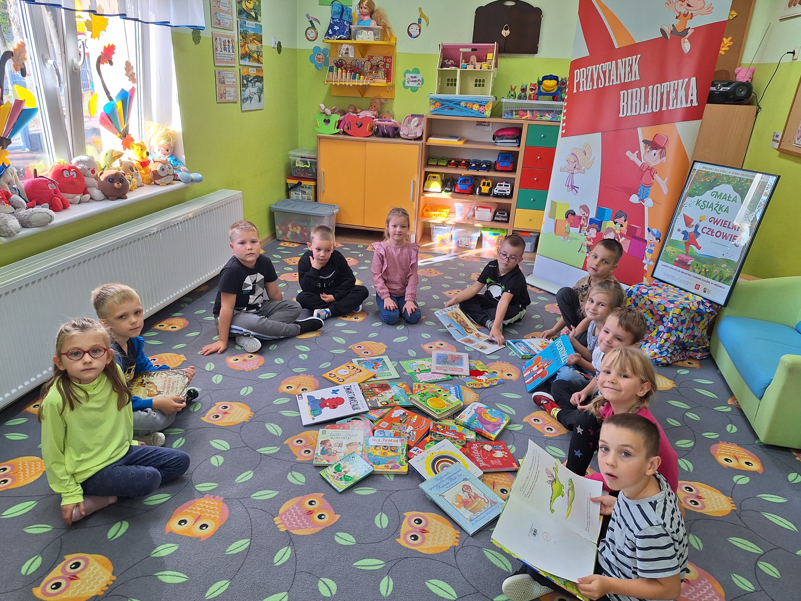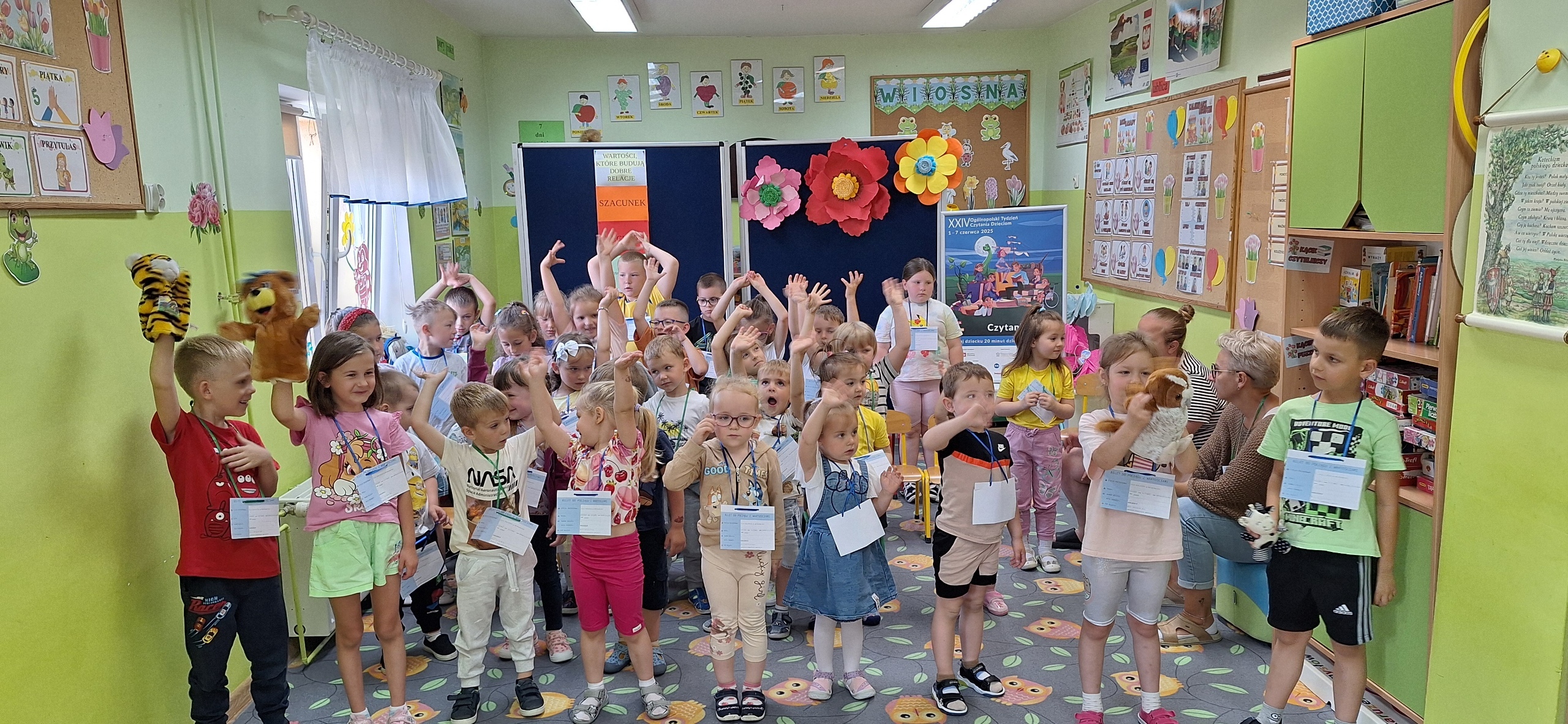 Celem spotkania było rozbudzenie zainteresowania książkami, wzbogacanie słownictwa i pobudzanie wyobraźni. Działaniami edukacyjnymi objęte były dzieci w wieku od 3 do 6 lat. Bibliotekarz zwracał uwagę dzieci na poznawcze walory książek, sytuacje humorystyczne oraz kolorowe ilustracje zachęcając przedszkolaków do czytania książek. Dzieci w trakcie spotkań odpowiadały na zadawane pytania, dotyczące w jaki sposób trzeba szanować książki oraz jakich zachowań należy się wystrzegać podczas czytania. Dzięki tym spotkaniom przedszkolaki miały łatwiejszy dostęp do książek, które rozweselały, uczyły i inspirowały do odkrywania nowych światów. Dziękujemy Pani Barbarze Tasarz za owocną współpracę.