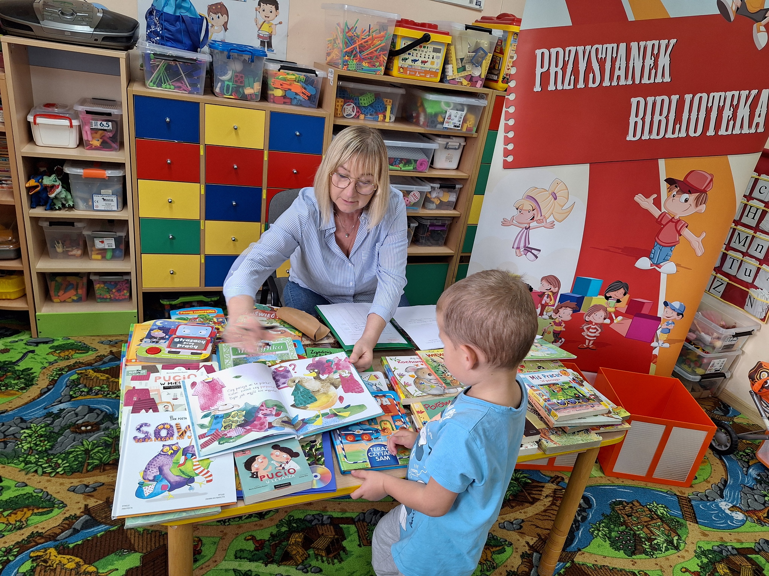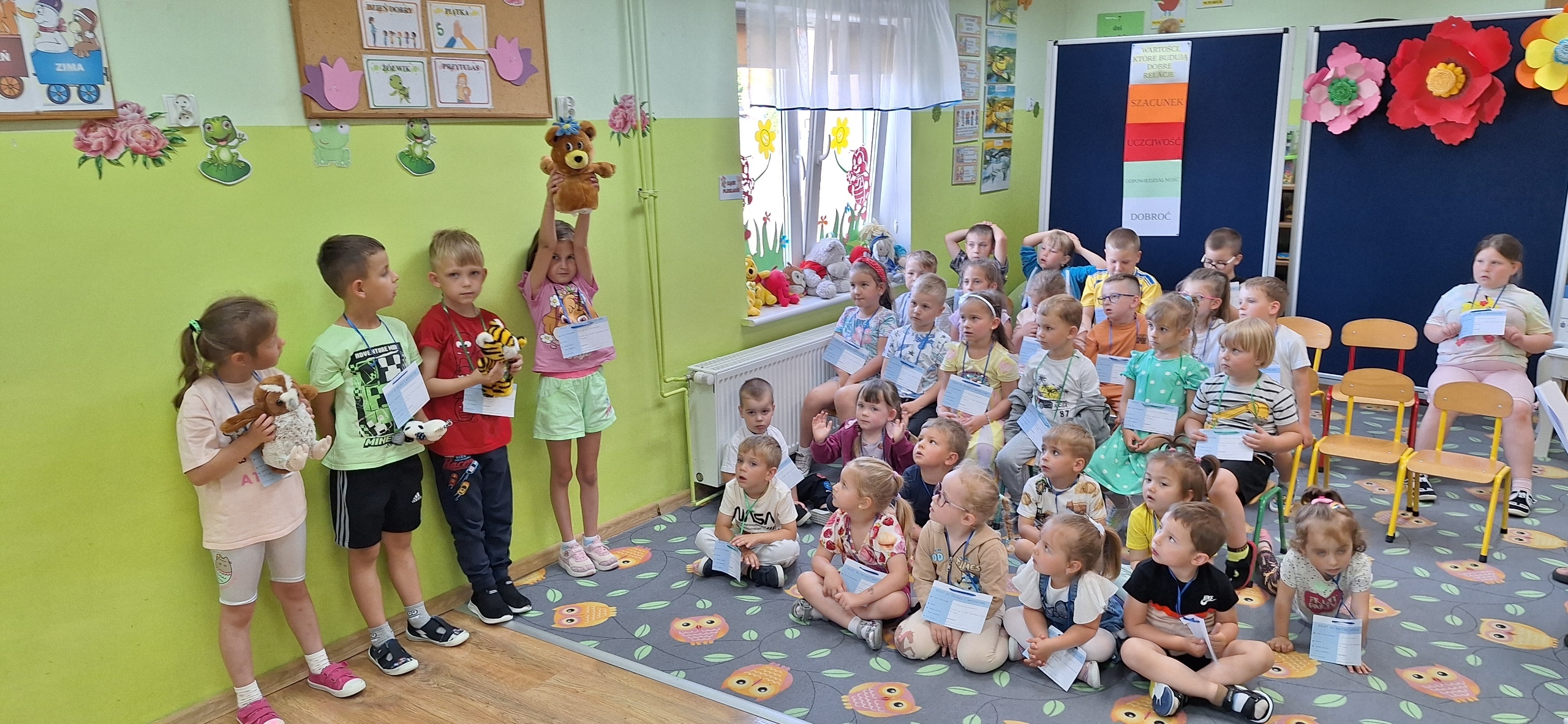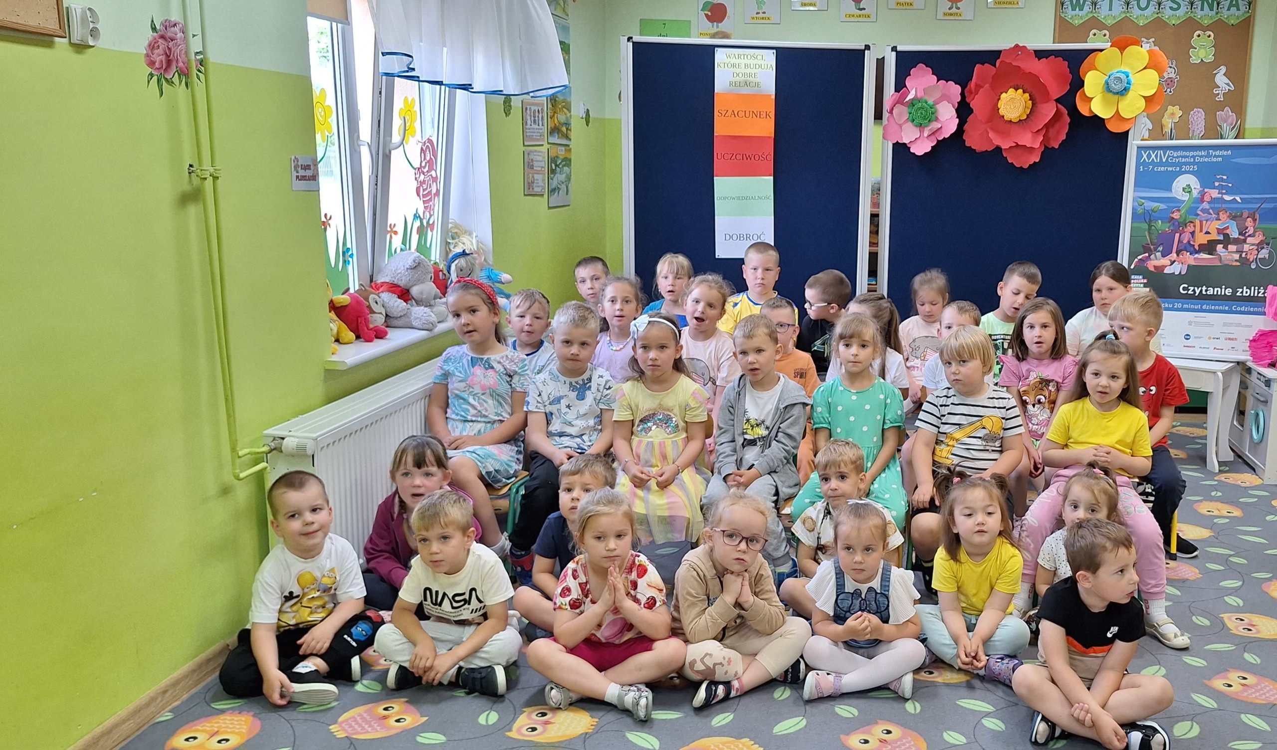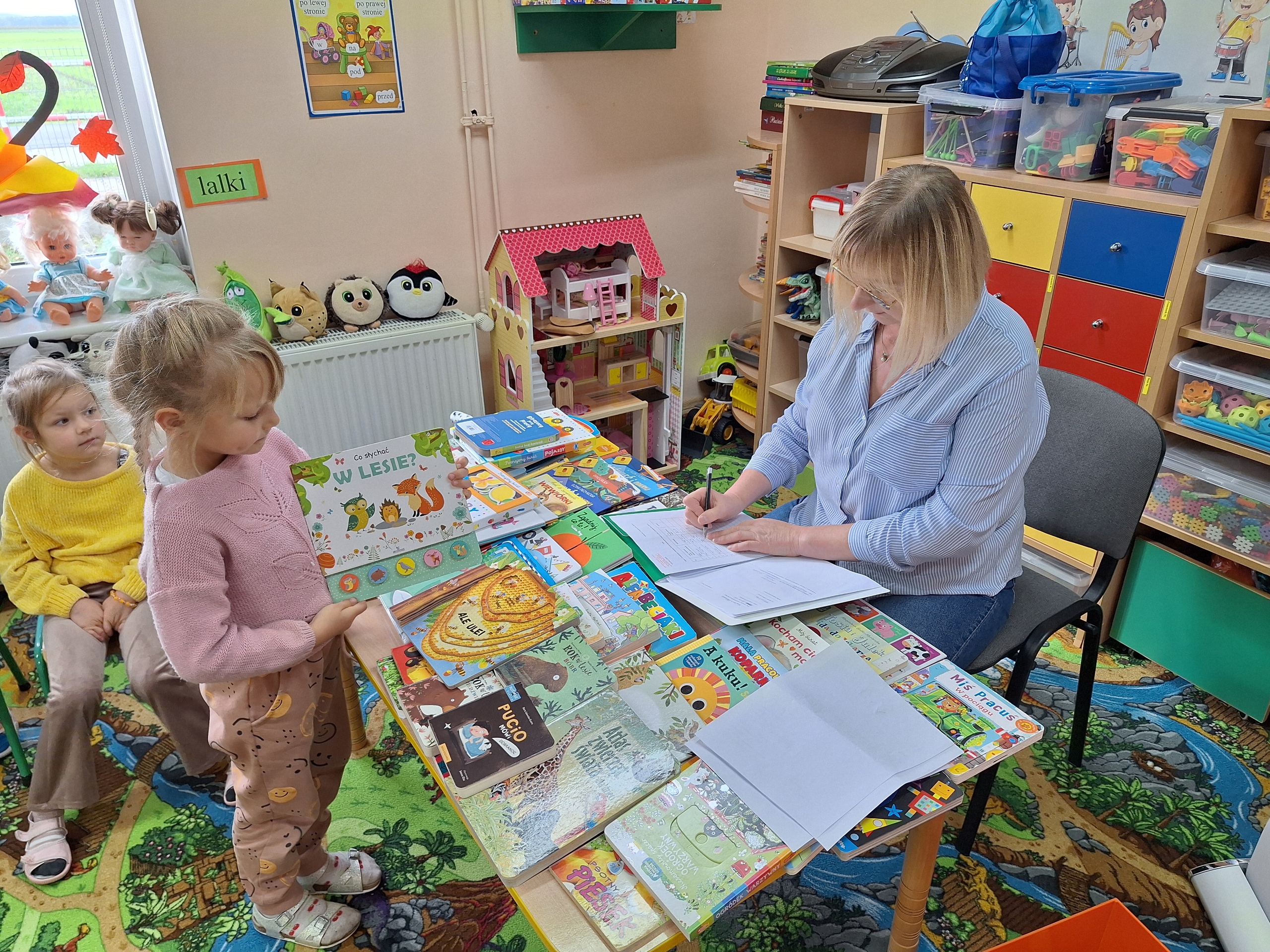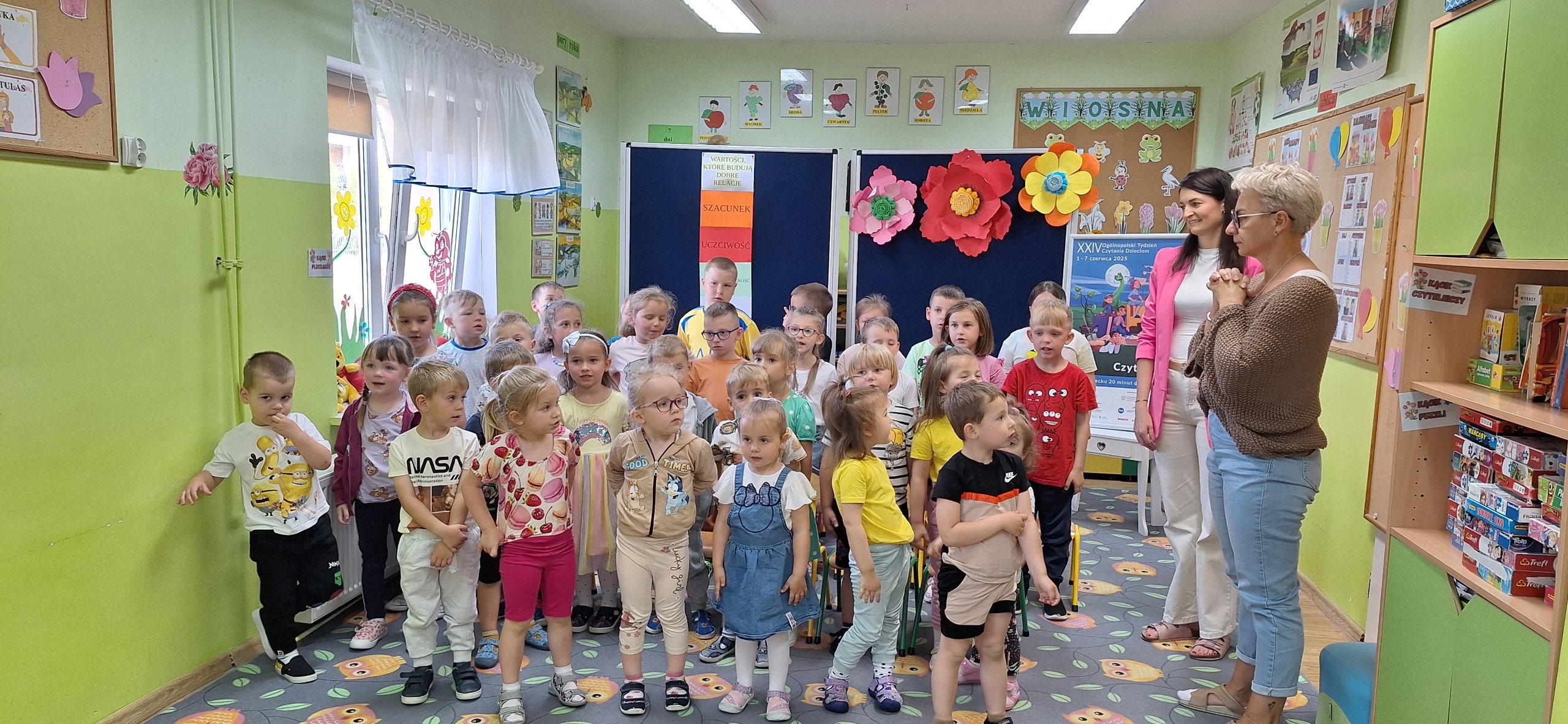 Celem spotkania było rozbudzenie zainteresowania książkami, wzbogacanie słownictwa i pobudzanie wyobraźni. Działaniami edukacyjnymi objęte były dzieci w wieku od 3 do 6 lat. Bibliotekarz zwracał uwagę dzieci na poznawcze walory książek, sytuacje humorystyczne oraz kolorowe ilustracje zachęcając przedszkolaków do czytania książek. Dzieci w trakcie spotkań odpowiadały na zadawane pytania, dotyczące w jaki sposób trzeba szanować książki oraz jakich zachowań należy się wystrzegać podczas czytania. Dzięki tym spotkaniom przedszkolaki miały łatwiejszy dostęp do książek, które rozweselały, uczyły i inspirowały do odkrywania nowych światów. Dziękujemy Pani Barbarze Tasarz za owocną współpracę.