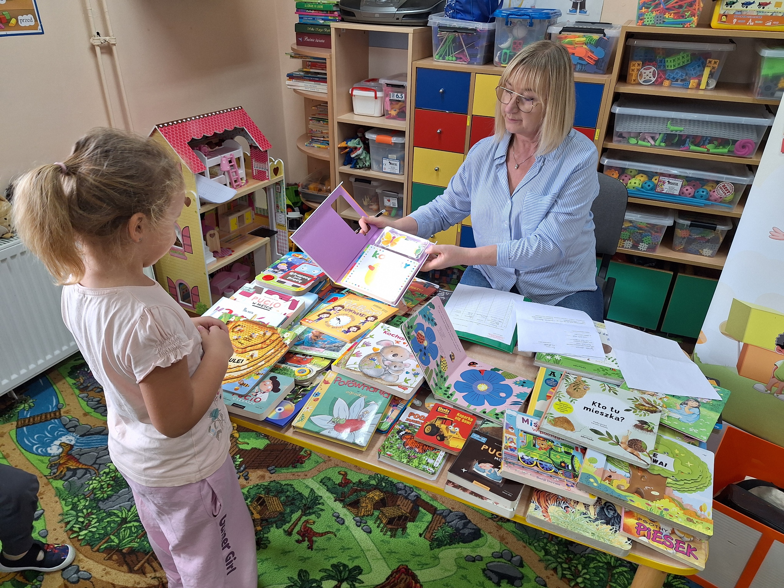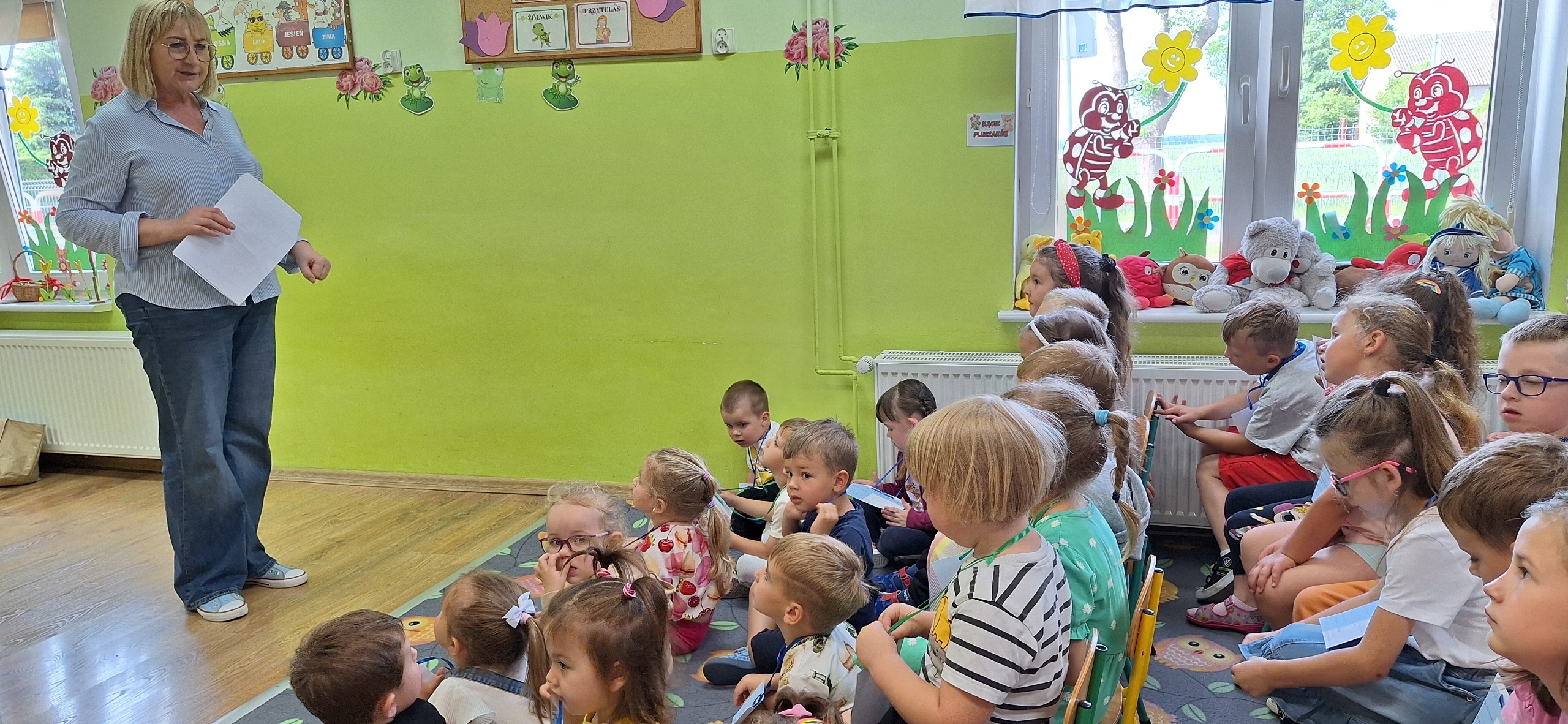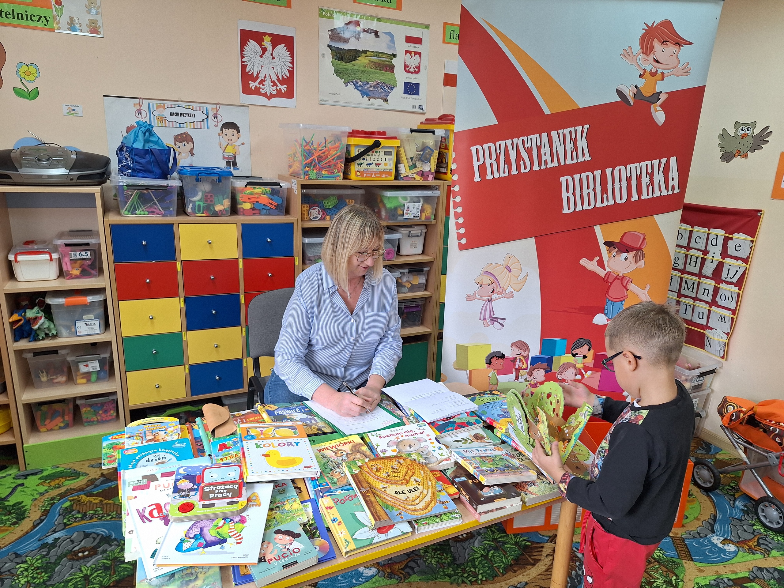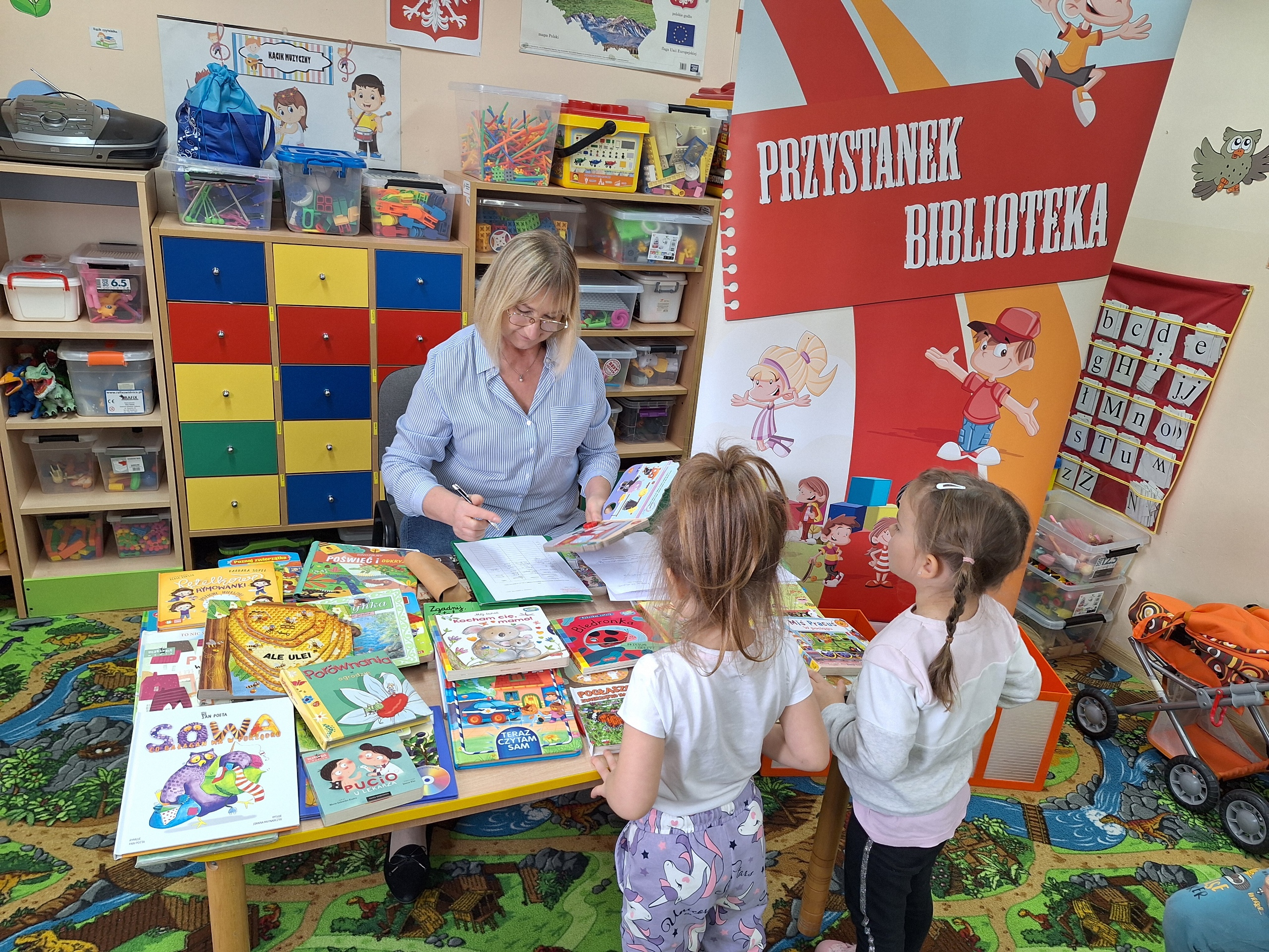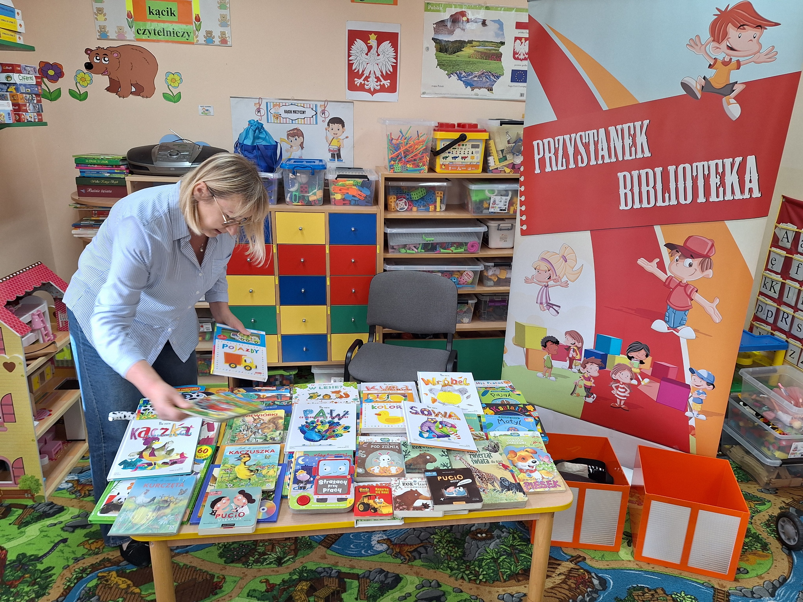 Celem spotkania było rozbudzenie zainteresowania książkami, wzbogacanie słownictwa i pobudzanie wyobraźni. Działaniami edukacyjnymi objęte były dzieci w wieku od 3 do 6 lat. Bibliotekarz zwracał uwagę dzieci na poznawcze walory książek, sytuacje humorystyczne oraz kolorowe ilustracje zachęcając przedszkolaków do czytania książek. Dzieci w trakcie spotkań odpowiadały na zadawane pytania, dotyczące w jaki sposób trzeba szanować książki oraz jakich zachowań należy się wystrzegać podczas czytania. Dzięki tym spotkaniom przedszkolaki miały łatwiejszy dostęp do książek, które rozweselały, uczyły i inspirowały do odkrywania nowych światów. Dziękujemy Pani Barbarze Tasarz za owocną współpracę.