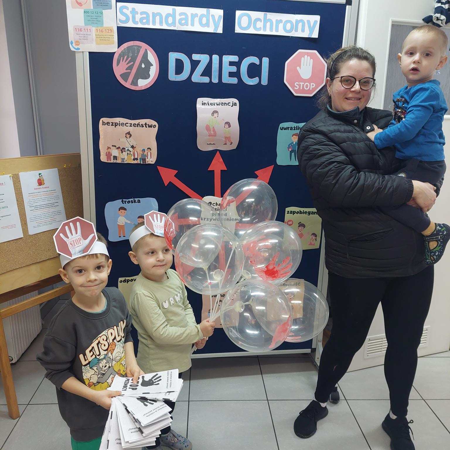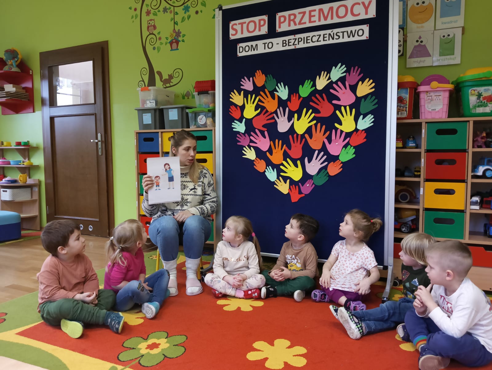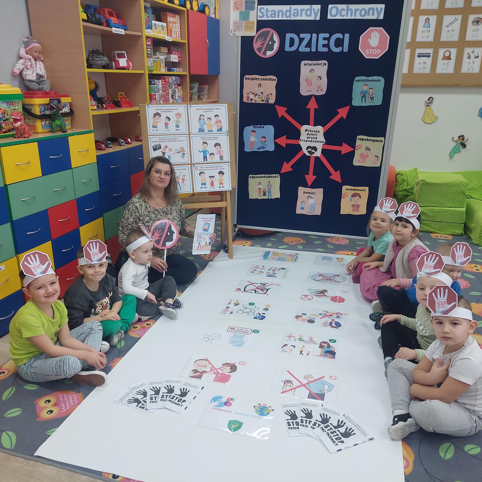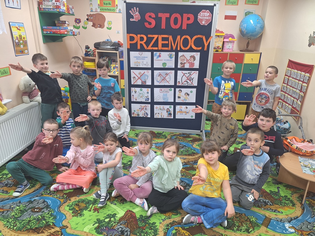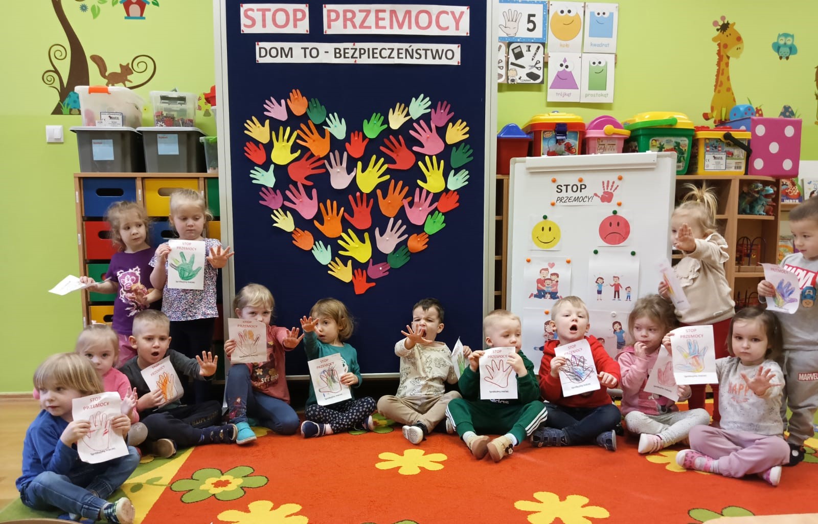Skłonności do rozwiązywania problemów za pomocą przemocy pojawiają się znacznie wcześniej, niż sądzi większość społeczeństwa. Dlatego niezbędne jest dostarczenie dzieciom i rodzicom konkretnej wiedzy, która wyznaczy granice pomiędzy dopuszczalnym i niedopuszczalnym zachowaniem. Realizowane Standardy Ochrony Dzieci w naszym przedszkolu zostały omówione i przeprowadzone określając główne cele, m.in. budowanie systemu wartości, w tym wychowywanie dzieci tak, żeby lepiej orientowały się, w tym, co jest dobre, a co złe, ponadto rozwijanie umiejętności społecznych dzieci, które są niezbędne w poprawnych relacjach z dziećmi i dorosłymi. Zostały omówione zagadnienia dotyczące znaczenia rodziny, pełnienia określonych ról w rodzinie, wzajemnego szacunku i miłości, życia w zgodzie ze sobą i innymi, jak i prawa do godności oraz sposobów przeciwdziałania przemocy w rodzinie. Powyższe zagadnienia zostały uwzględnione odpowiednio do wieku, wrażliwości, doświadczeń i możliwości poznawczych przedszkolaków, a rodzicom zostały przekazane broszury informacyjne.