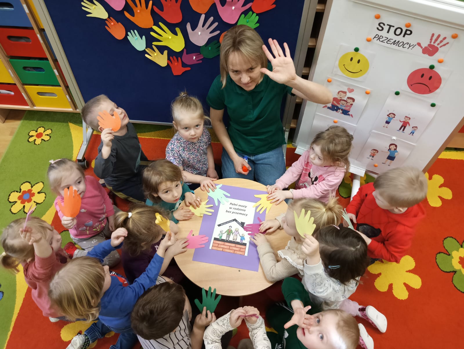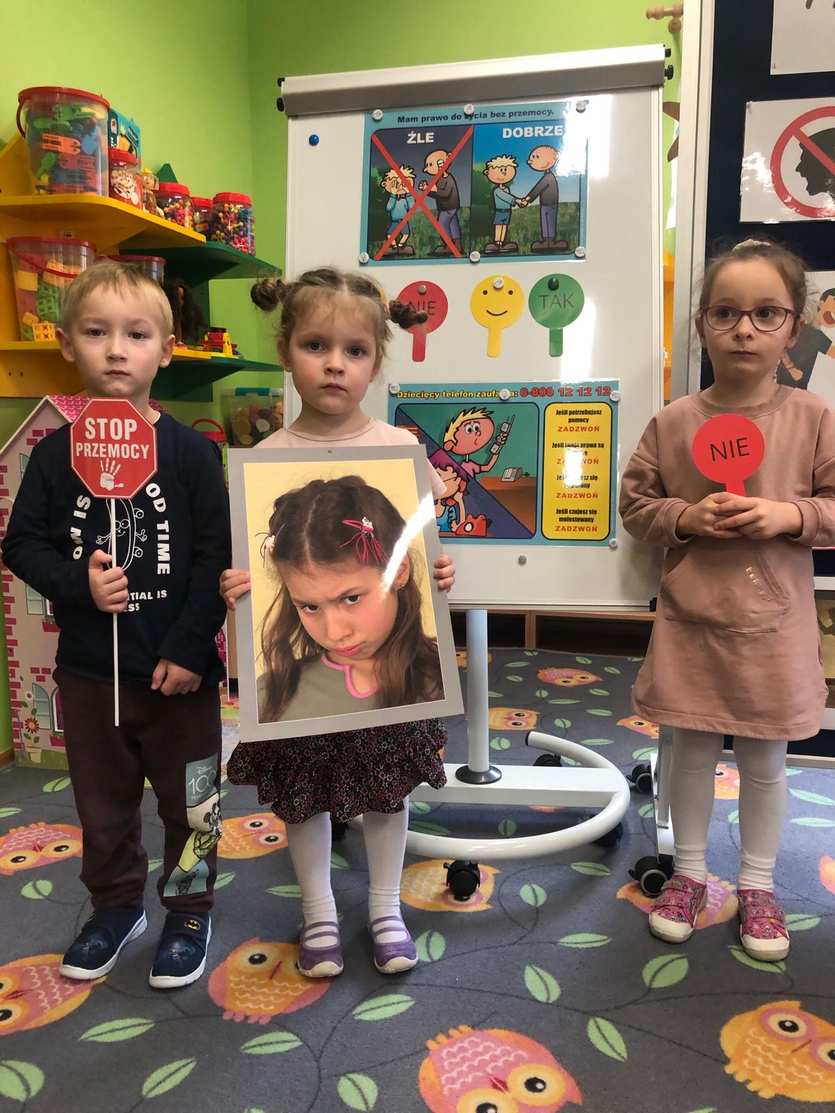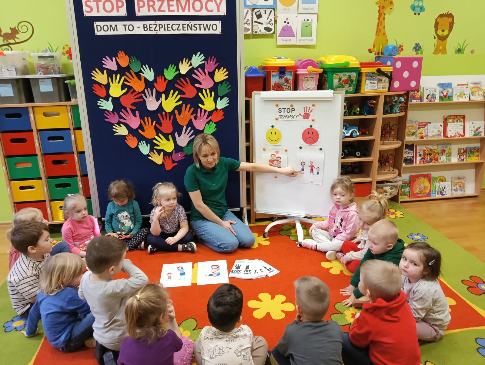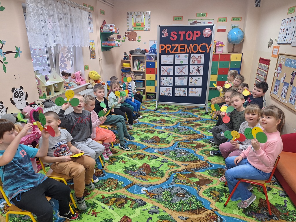 Skłonności do rozwiązywania problemów za pomocą przemocy pojawiają się znacznie wcześniej, niż sądzi większość społeczeństwa. Dlatego niezbędne jest dostarczenie dzieciom i rodzicom konkretnej wiedzy, która wyznaczy granice pomiędzy dopuszczalnym i niedopuszczalnym zachowaniem. Realizowane Standardy Ochrony Dzieci w naszym przedszkolu zostały omówione i przeprowadzone określając główne cele, m.in. budowanie systemu wartości, w tym wychowywanie dzieci tak, żeby lepiej orientowały się, w tym, co jest dobre, a co złe, ponadto rozwijanie umiejętności społecznych dzieci, które są niezbędne w poprawnych relacjach z dziećmi i dorosłymi. Zostały omówione zagadnienia dotyczące znaczenia rodziny, pełnienia określonych ról w rodzinie, wzajemnego szacunku i miłości, życia w zgodzie ze sobą i innymi, jak i prawa do godności oraz sposobów przeciwdziałania przemocy w rodzinie. Powyższe zagadnienia zostały uwzględnione odpowiednio do wieku, wrażliwości, doświadczeń i możliwości poznawczych przedszkolaków, a rodzicom zostały przekazane broszury informacyjne.