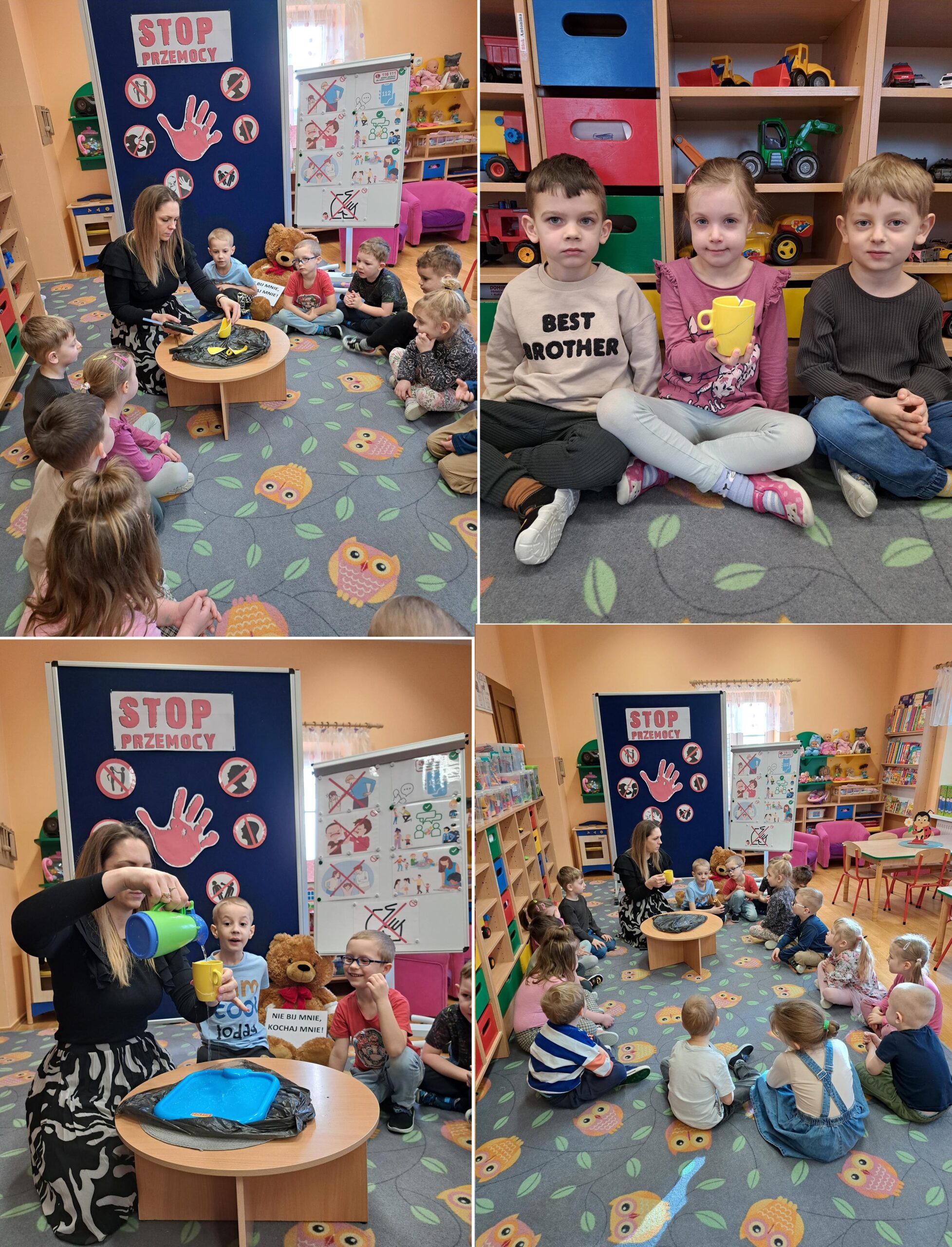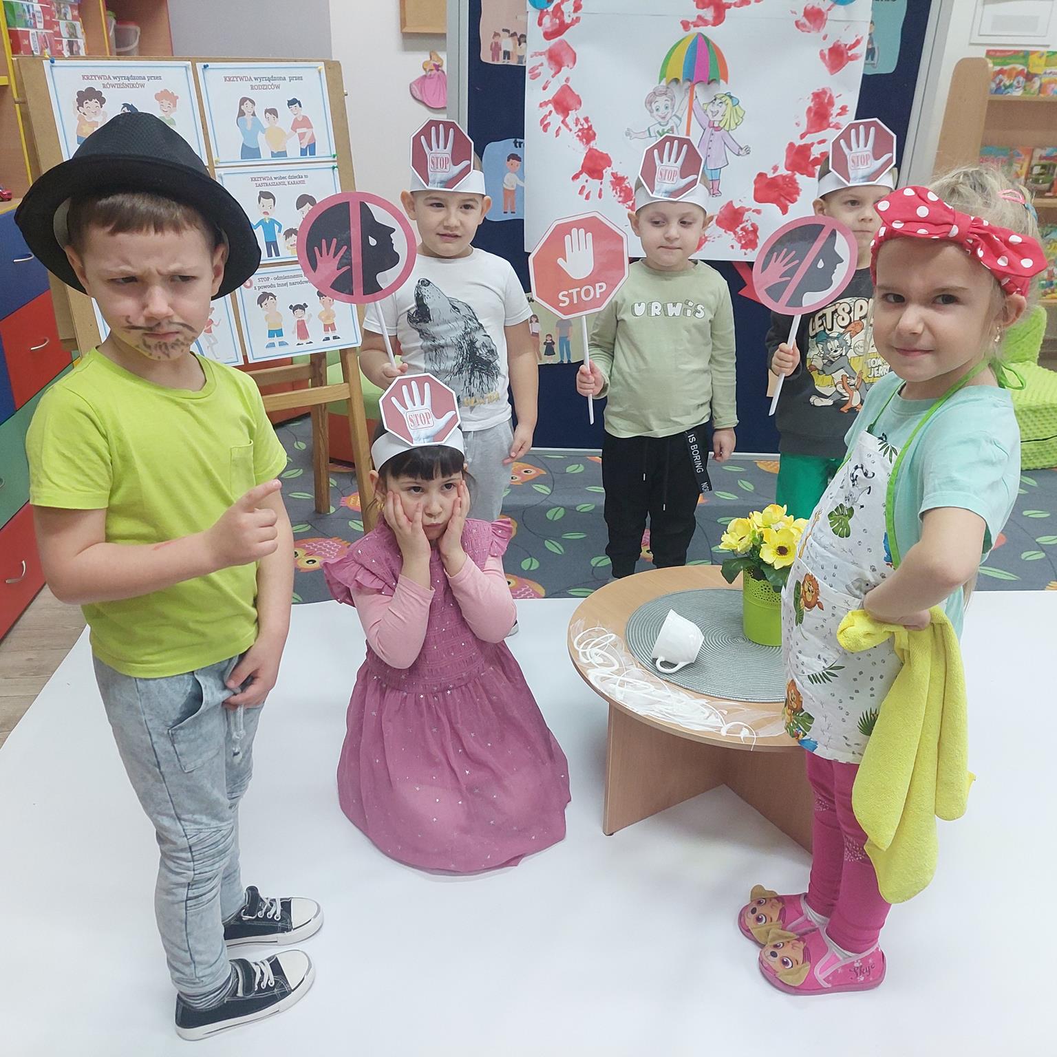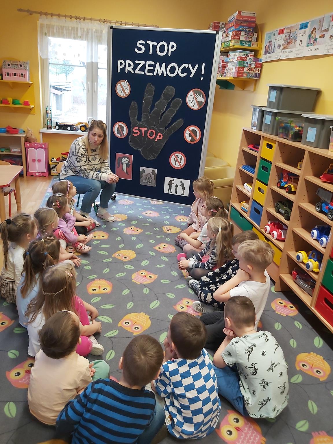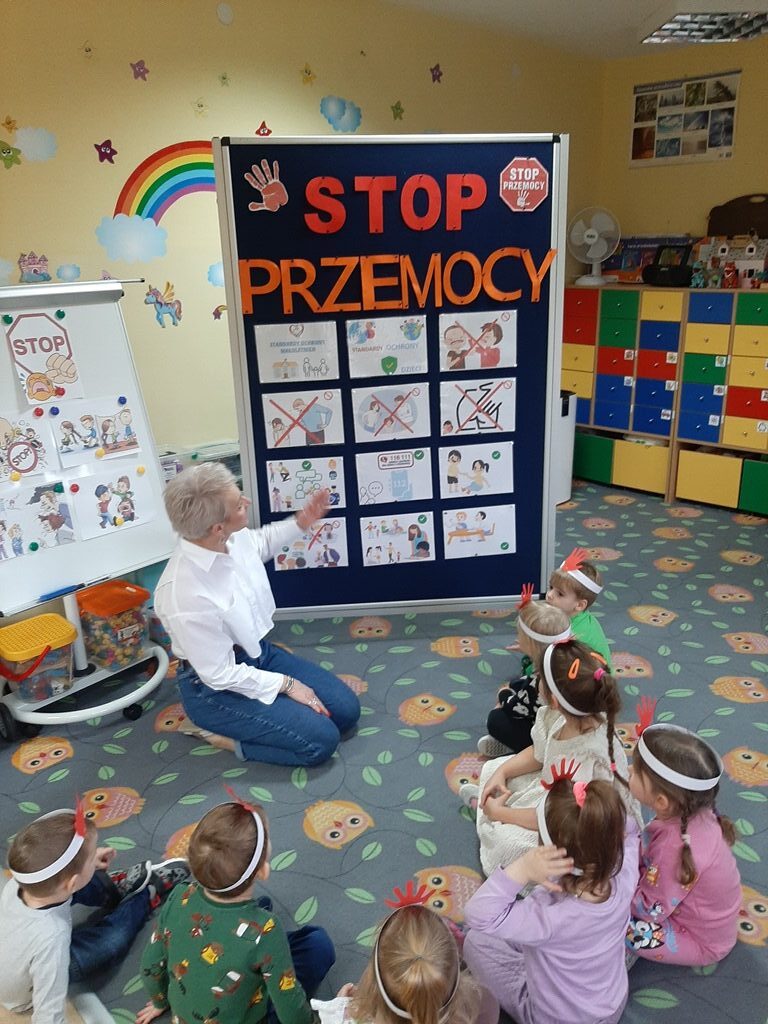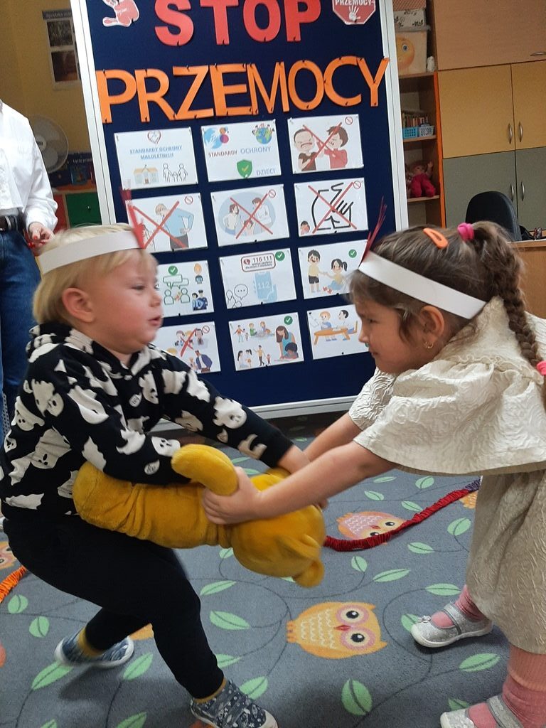 Skłonności do rozwiązywania problemów za pomocą przemocy pojawiają się znacznie wcześniej, niż sądzi większość społeczeństwa. Dlatego niezbędne jest dostarczenie dzieciom i rodzicom konkretnej wiedzy, która wyznaczy granice pomiędzy dopuszczalnym i niedopuszczalnym zachowaniem. Realizowane Standardy Ochrony Dzieci w naszym przedszkolu zostały omówione i przeprowadzone określając główne cele, m.in. budowanie systemu wartości, w tym wychowywanie dzieci tak, żeby lepiej orientowały się, w tym, co jest dobre, a co złe, ponadto rozwijanie umiejętności społecznych dzieci, które są niezbędne w poprawnych relacjach z dziećmi i dorosłymi. Zostały omówione zagadnienia dotyczące znaczenia rodziny, pełnienia określonych ról w rodzinie, wzajemnego szacunku i miłości, życia w zgodzie ze sobą i innymi, jak i prawa do godności oraz sposobów przeciwdziałania przemocy w rodzinie. Powyższe zagadnienia zostały uwzględnione odpowiednio do wieku, wrażliwości, doświadczeń i możliwości poznawczych przedszkolaków, a rodzicom zostały przekazane broszury informacyjne.